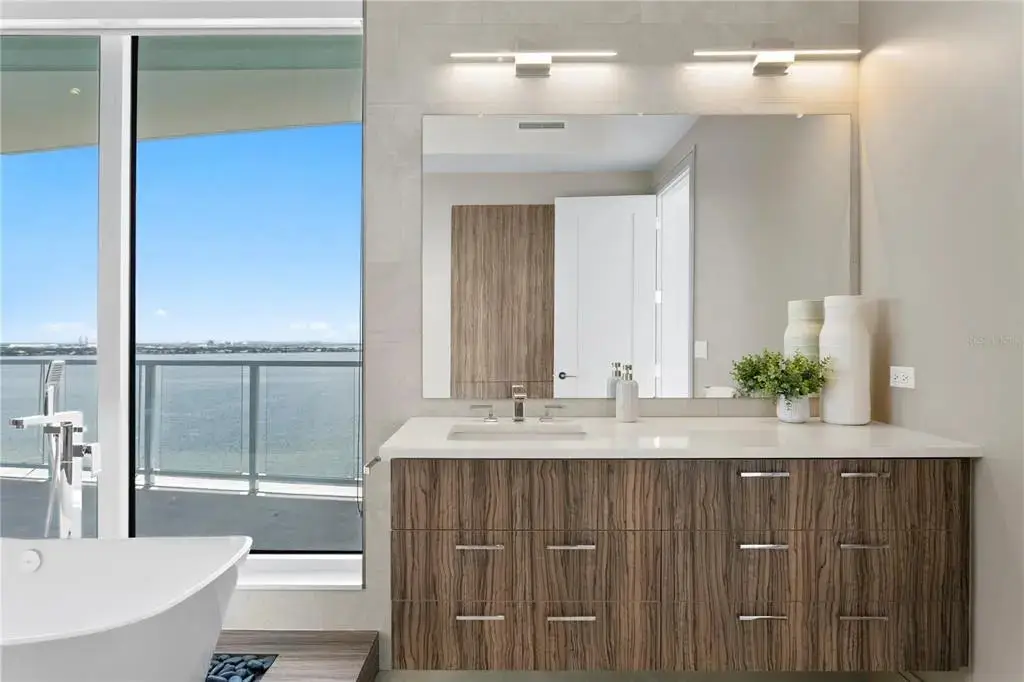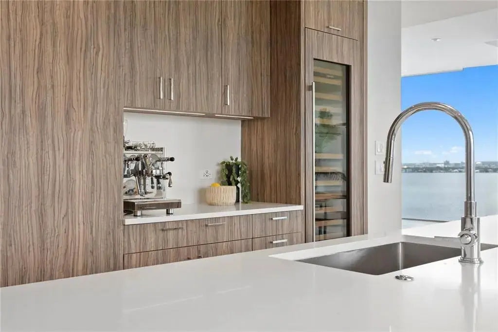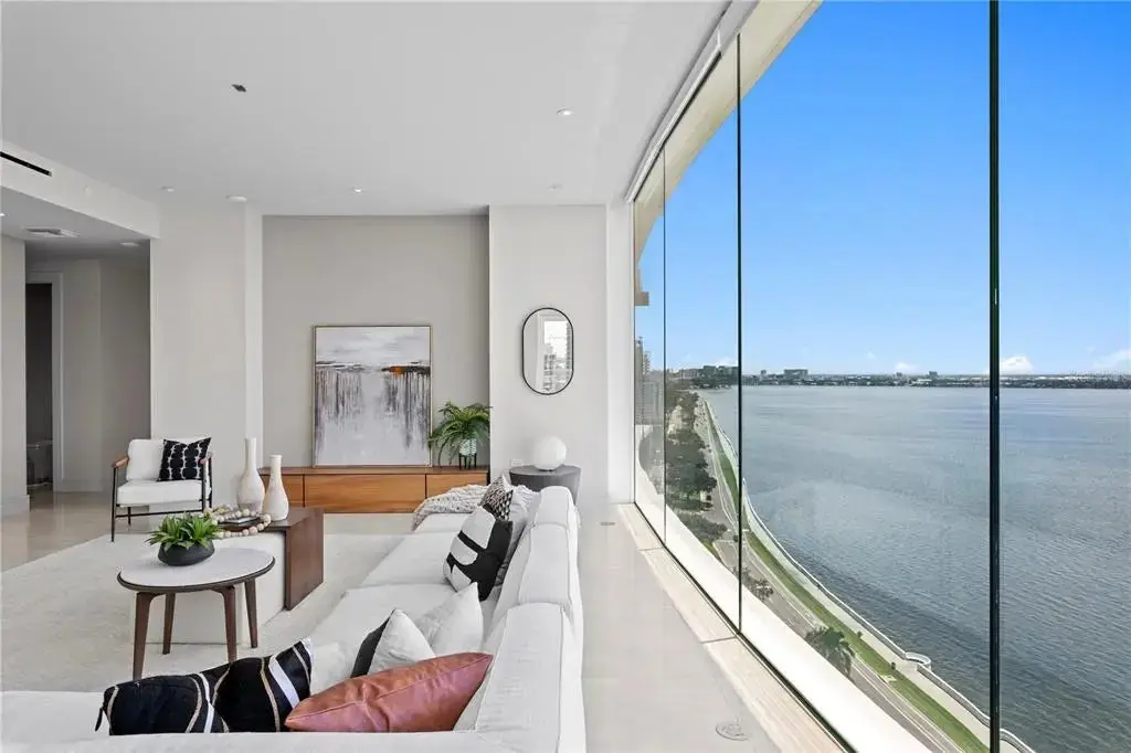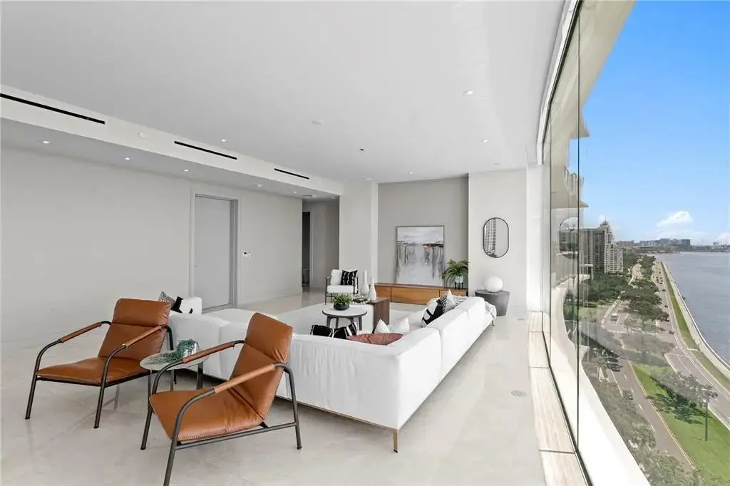 Welcome to The Sanctuary on Bayshore, South Tampa’s most exclusive residential address — where timeless architecture meets modern luxury, and offerings are as rare as they are exceptional. Perched high above Bayshore Boulevard on the 14th floor of this coveted 17-story tower — with only one residence per floor — Unit 1400 delivers a truly private, sky-high living experience that is as breathtaking as it is serene. Step directly from your private elevator into a dramatic double-door foyer that opens to 3,884 square feet of sweeping elegance. Spanning an impressive 48 feet across the front of Bayshore, this one-of-a-kind residence is framed by floor-to-ceiling glass walls and two expansive terraces, capturing unobstructed, panoramic views from sunrise to sunset — of Tampa Bay, downtown, and beyond. Designed with intentionality and flair, the home features 10-foot ceilings, a gracious open floor plan, and sophisticated finishes throughout. With three bedrooms, three and a half baths, and a versatile den, the layout seamlessly balances effortless entertaining with relaxed everyday living. The chef’s kitchen is a work of art — outfitted with a quartz waterfall island, Sub-Zero refrigerator and freezer, dual Gaggenau ovens, a Sub-Zero wine fridge, two dishwashers, and a gas cooktop — all while offering front-row views of the bay. Retreat to your primary suite, a true sanctuary within The Sanctuary, complete with a spa-inspired bath featuring an oversized soaking tub, a glass-enclosed shower, and bayfront views that soothe the soul. The custom California Closets-designed wardrobe is an unexpected luxury — nearly the size of the bedroom itself and expertly appointed. For peace of mind, the residence includes a full-home generator, offering true “lock and leave” confidence. Amenities include a resort-style pool and spa, state-of-the-art gym, and the security and discretion only a building like this can provide. Homes in The Sanctuary rarely come to market —This is a lifestyle for those who expect excellence, on Tampa’s most iconic avenue.