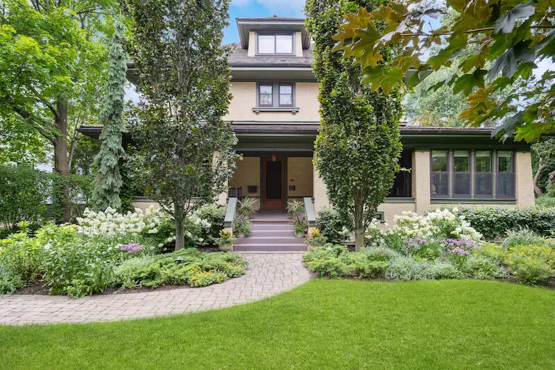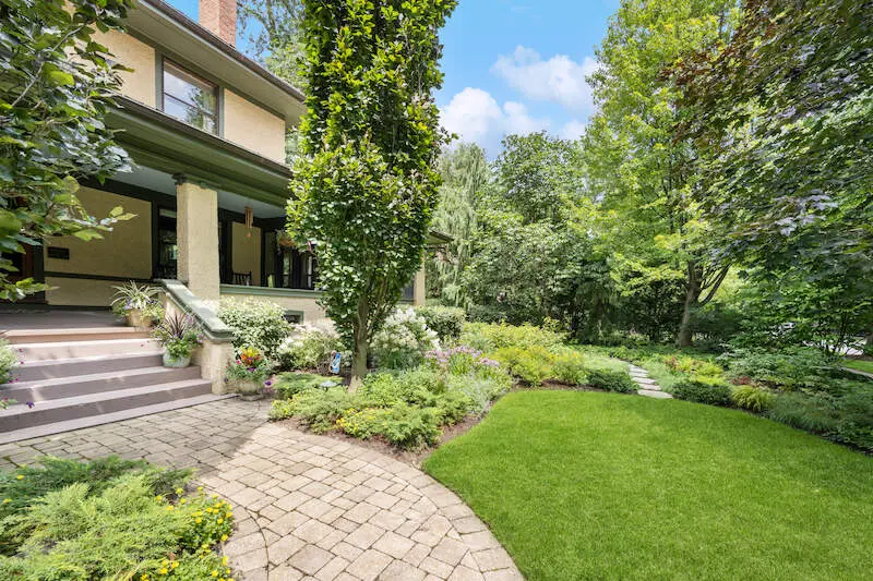 This spacious 6 bedroom, 3.1 bath home has a fabulous Kenilworth Avenue location and close to the Kenilworth Beach and Lake Michigan. Professionally landscaped by a master gardener, you are greeted by beautiful and seasonal foliage. The front porch welcomes you to the home that is situated on a 85 x 182 lot with a detached 3 car garage. The gracious foyer leads you into the home opens into the formal living room and office/den. The formal living room has beautiful built in original bookshelves that flank the original fireplace. Your favorite place in the home may be the enclosed porch that is off the formal living room and welcomes the beautiful outdoor landscaping into the home. The formal dining room with paneling has a built-in bench area and hardwood floors throughout and leads into the family room & kitchen eat-in-area. The eat-in-area opens to the kitchen with Granite Countertops, Subzero and Viking Stove. Hardwood floors throughout the first floor and a great floor plan throughout. The second floor boasts 4 bedrooms and 2 full bathrooms. The walk-up third floor has two additional bedrooms and a full bathroom with great ceiling height and storage galore. The lower level has two wonderful recreation areas, laundry, a bathroom and a nice storage closet area. The backyard patio is your private oasis. The mature and private landscaping guarantees that you can lounge on your back patio with utmost privacy for maximum enjoyment. The pavered driveway leads to a detached three card garage with a nice turn around area to easily park your vehicles. This is an A+ location and near train, schools, and Lake Michigan.