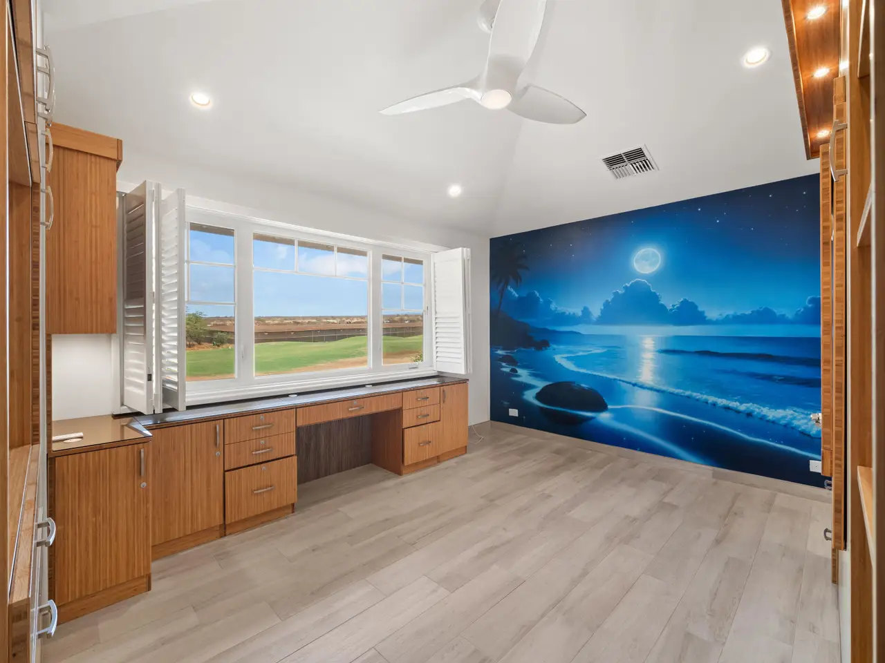A Home That Defines “Custom” First time offered, this Hokulani Golf Villas residence is custom in every sense of the word — designed and built as the owner’s forever home, with no expense spared. From the moment you enter, you’re greeted by a bright, white, and contemporary aesthetic — a clean palette that reflects light and amplifies the home’s open concept design. An abundance of built-in cabinetry provides both function and elegance, complementing the expansive great room that flows seamlessly from kitchen to living to lanai. The home features two master suites and a third ensuite bedroom, providing flexibility for guests or multigenerational living. Every detail has been considered — from the layout to the materials to the feeling of effortless space. A 58-panel photovoltaic system powers the home, a reflection of the thoughtful investment in both sustainability and efficiency. Set gracefully along the par-5 fairway of the Maui Nui Golf Course, this home enjoys a backdrop of lush green views and the serenity unique to the Hokulani Golf Villas community. Seeing is believing — this is a rare opportunity to own one of Hokulani’s most refined, privately crafted homes.