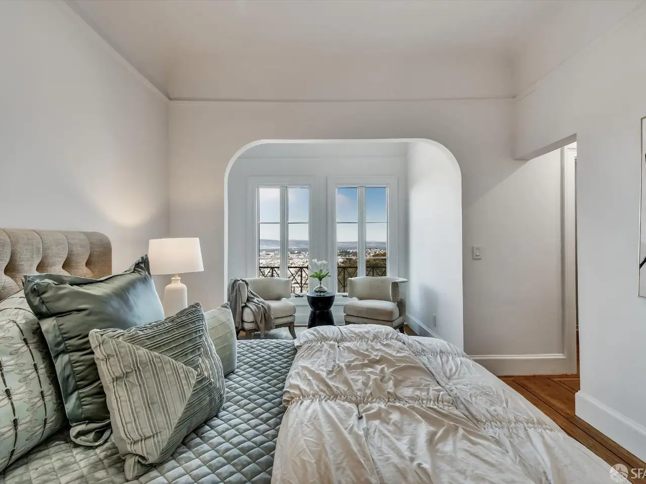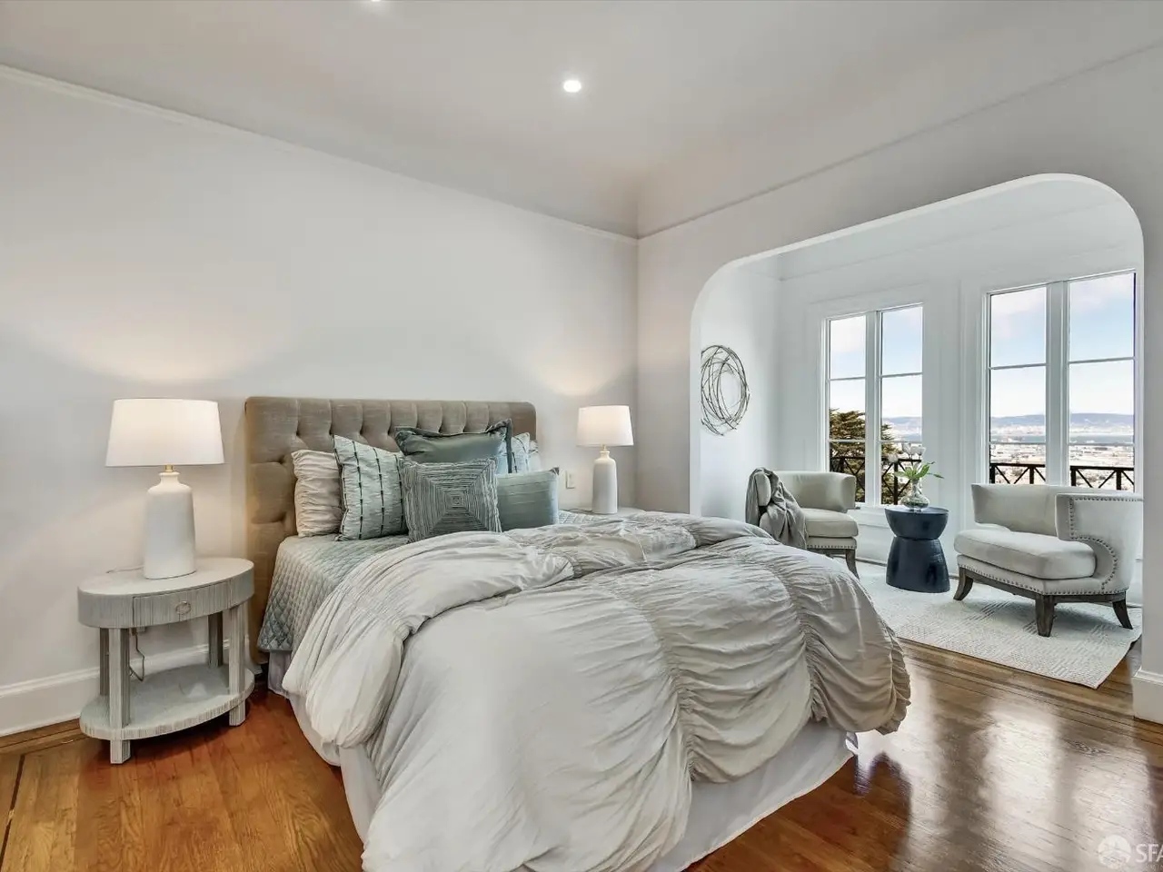 Past the rose-lined entrance and enclosed front garden patio lies a beautifully updated single-family home in the prestigious and highly sought-after Clarendon Heights. Boasting sweeping, dramatic vistas from the Bay to Downtown San Francisco, Mount Diablo, and beyond, this elegant residence blends classic Neo-Edwardian architecture with sophisticated, modern finishes. Step inside to an open floor plan that combines contemporary flair with refined details. The main level features coved ceilings, a guest powder room, spacious dining and entertainment areas, and a gourmet kitchen that opens seamlessly to a terraced backyard with brick and natural wood accents, perfect for outdoor entertaining or enjoying a morning cappuccino. The sunlit living room showcases breathtaking Bay views and a cozy, wood-burning fireplace that enhances the inviting ambiance. Upstairs, two guest bedrooms overlook the serene, colorful rear garden, while the primary suite offers postcard-worthy vistas, a walk-in closet, and a luxuriously appointed en suite bathroom. Additional highlights include a large, two-car garage and convenient proximity to nearby shopping, dining, and city amenities.