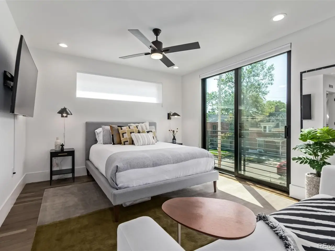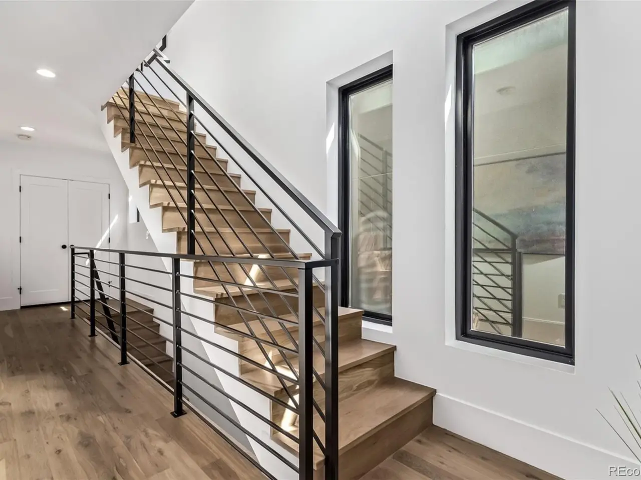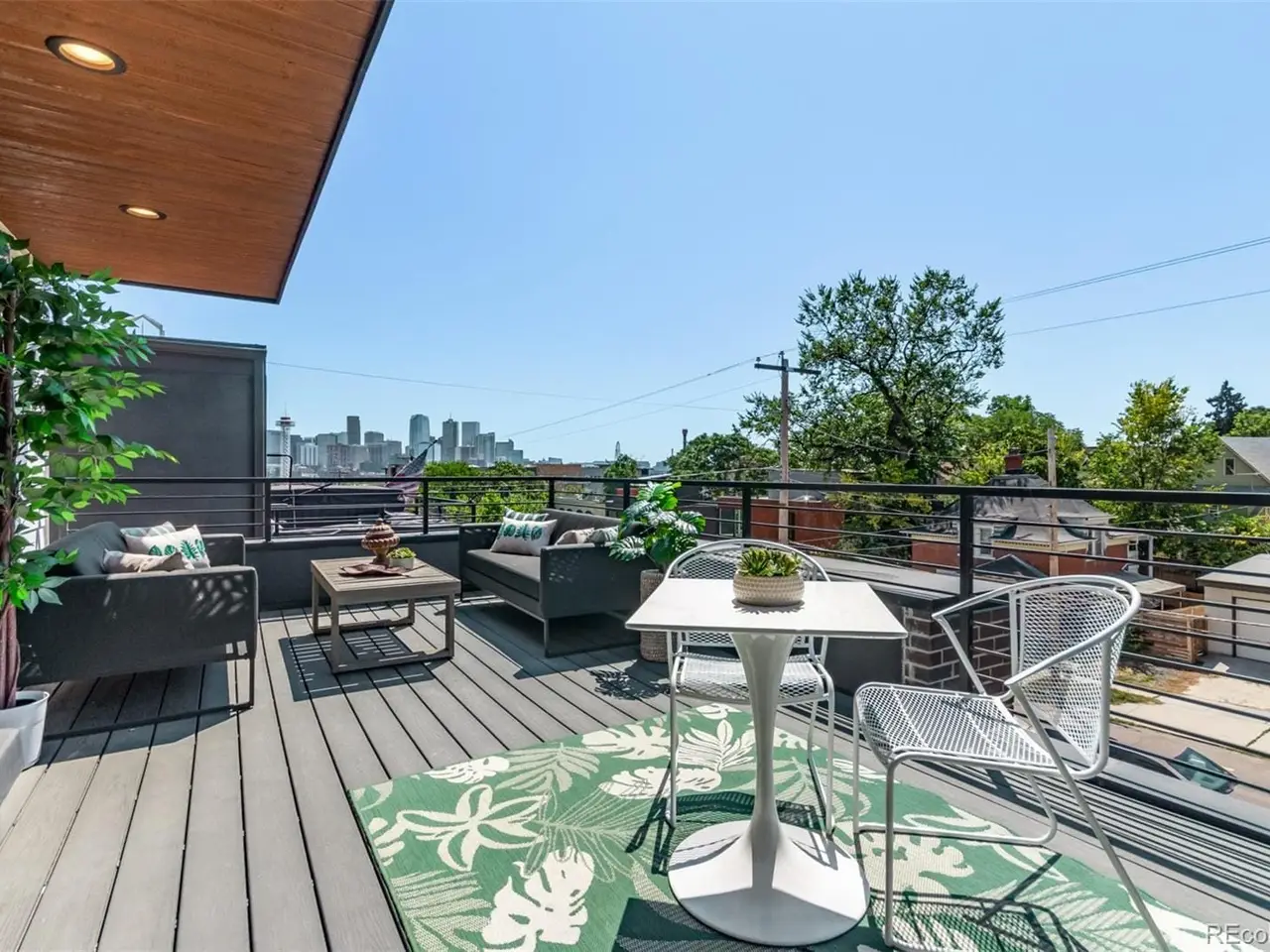 Stunning contemporary detached single-family home with a detached ADU/Carriage one bedroom apartment in highly sought-after Jefferson Park! Designed for both style and functionality, this residence has an abundance of natural light and features soaring ceilings, hardwood floors, and elegant finishes throughout. The main level includes a dedicated office, powder room, inviting living room with electric fireplace, dining area, and a chef-inspired eat-in kitchen complete with a farmhouse sink, stainless steel appliances, 6-burner gas range, French door refrigerator, full marble backsplash, under-cabinet lighting, and sleek hard-surface countertops. A built-in cubby entryway and separate mudroom add convenience and charm. Upstairs, the luxurious primary suite boasts a walk-in closet, spa-like 5-piece bath with a freestanding tub, floating double vanity, walk-in shower, and a Juliet balcony. A second ensuite bedroom and full laundry room with utility sink round out the second floor. The third level offers a spacious family room with a wet bar and beverage fridge, additional guest bedroom, full bath, and direct access to a private rooftop terrace with stunning city views. The detached two-car garage includes a fully equipped carriage house with its own living room, kitchen, bedroom, bathroom, and separate entranceperfect for guests, short-term rental, or extended stays. Enjoy a low-maintenance patio with privacy fencing, across from Briar Commons Eatery & Brewery, with easy access to downtown and I-25. This is city living at its finest!