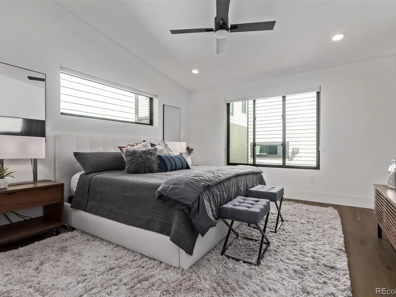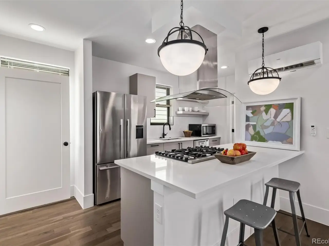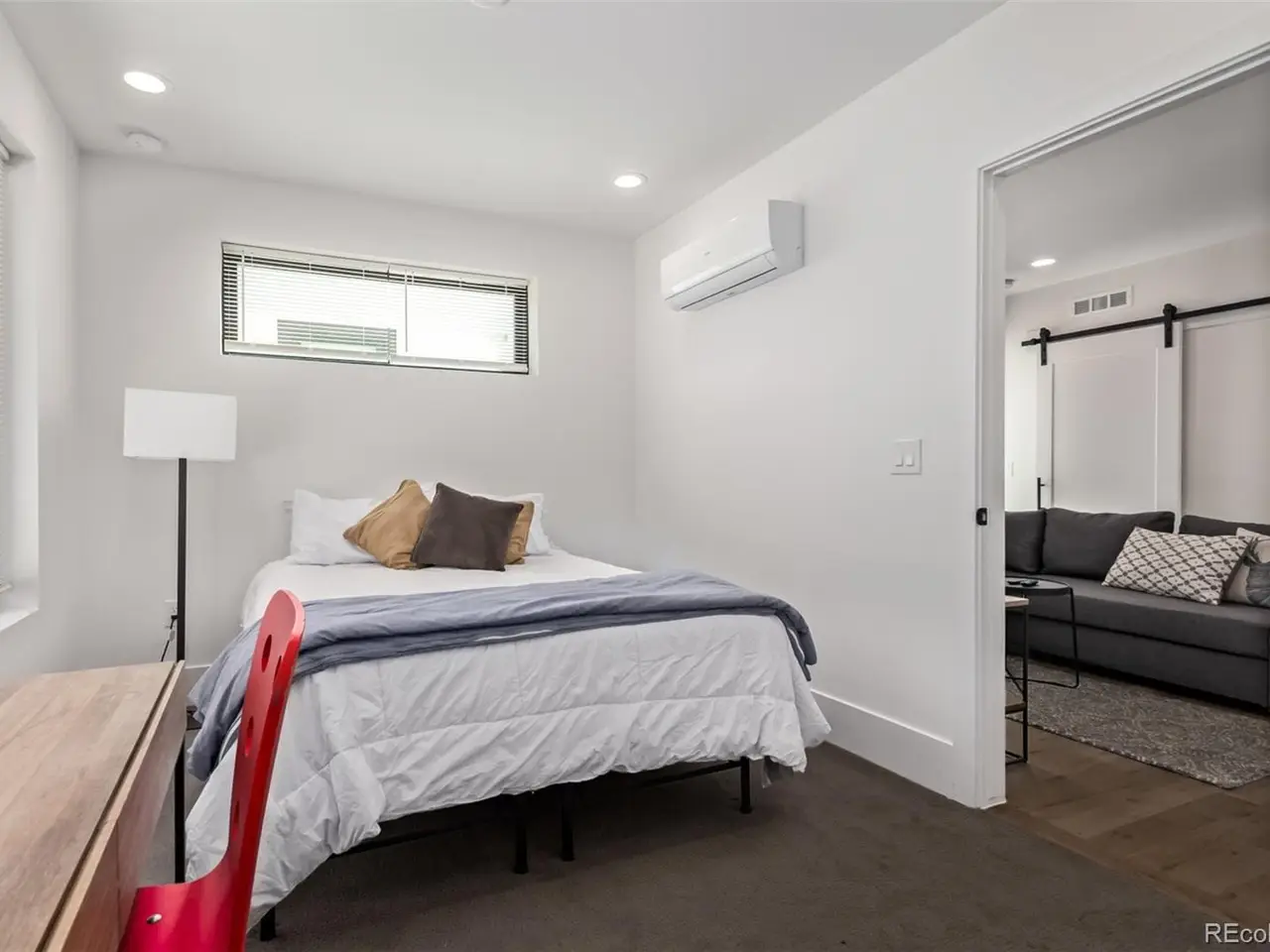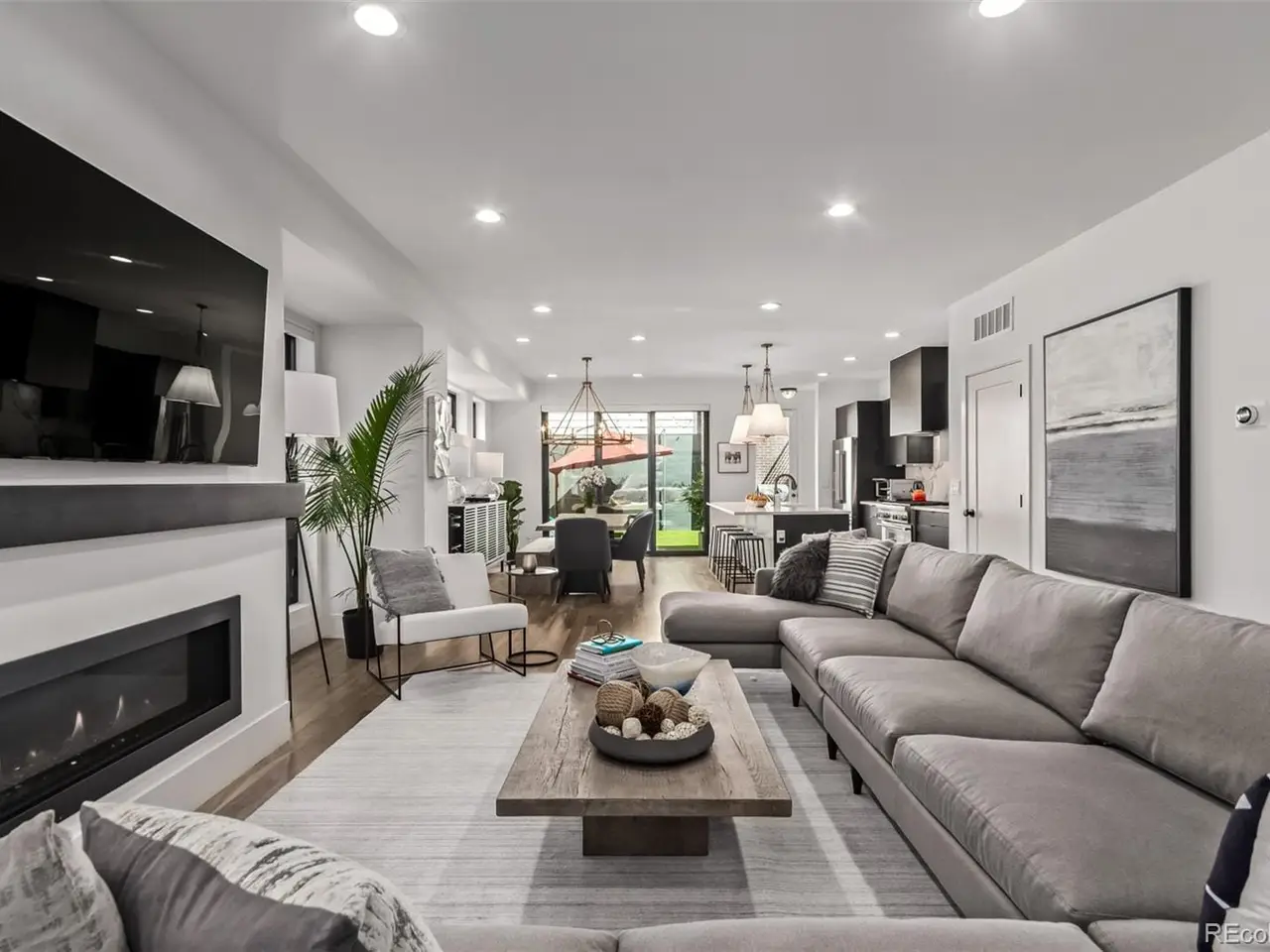 Stunning contemporary detached single-family home with a detached ADU/Carriage one bedroom apartment in highly sought-after Jefferson Park! Designed for both style and functionality, this residence has an abundance of natural light and features soaring ceilings, hardwood floors, and elegant finishes throughout. The main level includes a dedicated office, powder room, inviting living room with electric fireplace, dining area, and a chef-inspired eat-in kitchen complete with a farmhouse sink, stainless steel appliances, 6-burner gas range, French door refrigerator, full marble backsplash, under-cabinet lighting, and sleek hard-surface countertops. A built-in cubby entryway and separate mudroom add convenience and charm. Upstairs, the luxurious primary suite boasts a walk-in closet, spa-like 5-piece bath with a freestanding tub, floating double vanity, walk-in shower, and a Juliet balcony. A second ensuite bedroom and full laundry room with utility sink round out the second floor. The third level offers a spacious family room with a wet bar and beverage fridge, additional guest bedroom, full bath, and direct access to a private rooftop terrace with stunning city views. The detached two-car garage includes a fully equipped carriage house with its own living room, kitchen, bedroom, bathroom, and separate entranceperfect for guests, short-term rental, or extended stays. Enjoy a low-maintenance patio with privacy fencing, across from Briar Commons Eatery & Brewery, with easy access to downtown and I-25. This is city living at its finest!