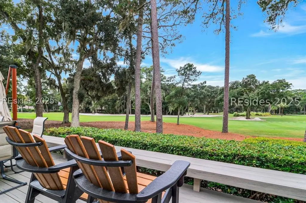 This exceptional 3-bedroom, 3-bath coastal retreat offers panoramic golf views of Harbour Town's famed #6 and #7 fairways and the #2 and #3 greens. Filled with natural light, the open floor plan features soaring ceilings, rich hardwood floors, and a seamless flow between living, dining, and kitchen areas. The newly renovated (2024) kitchen is stunning-complete with quartz countertops, soft-close cabinetry, decorative ceiling beams, and Wolf & Bosch appliances. The inviting great room includes a gas fireplace, while the flexible den can serve as a 4th bedroom or home office, both enjoying incredible golf vistas. The spacious owner's suite offers privacy, beautiful views, and a spa-like bath. Two guest suites provide comfort for family and friends. A new Trex deck overlooks the course, offering the perfect setting for outdoor relaxation and a front-row seat to the RBC Heritage Golf Tournament. Located in the heart of Sea Pines between Harbour Town and the Atlantic Ocean, residents enjoy community amenities including pool, tennis, playground, and basketball-plus easy access to beaches, shopping, and dining. Whether a primary residence, vacation home, or investment property, 13 Fern Court perfectly captures the best of coastal Lowcountry living.