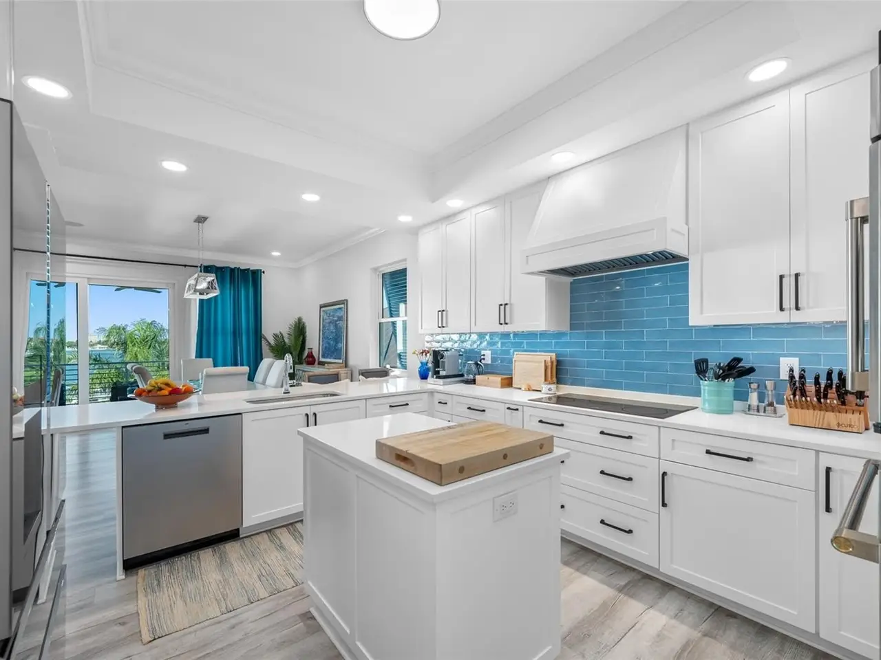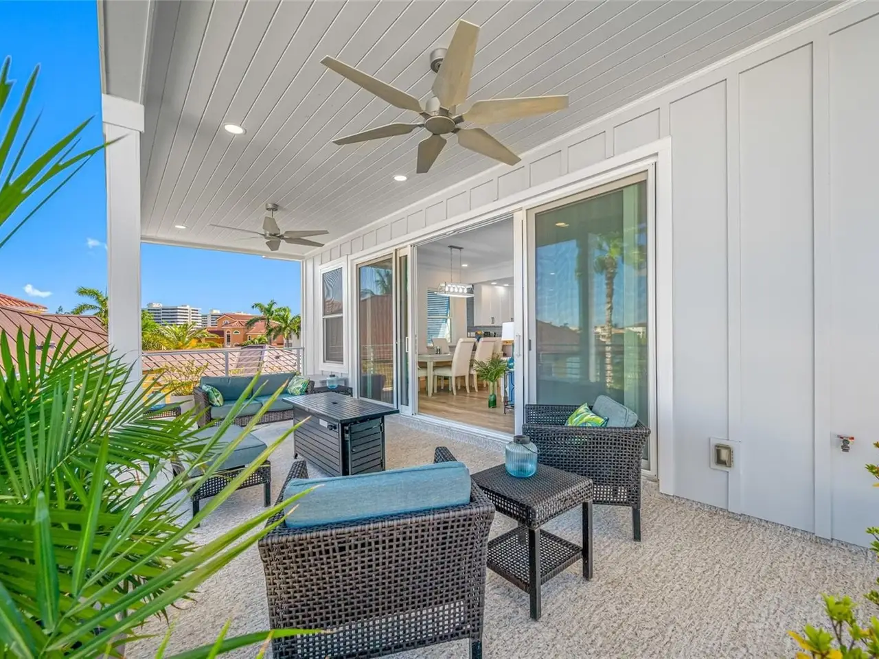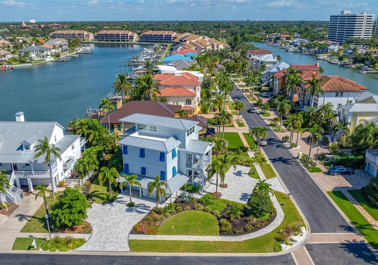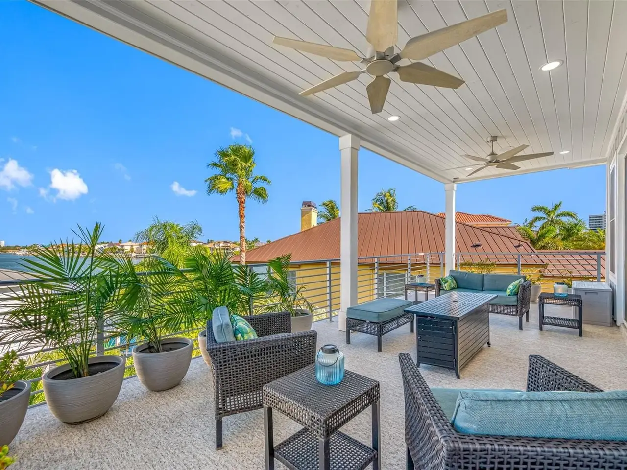 Welcome to this exceptional elevated Key West style 4-bedroom, plus rooftop bonus room, 4-bathroom, 4 car garage custom-built residence with breathtaking views of Boca Ciega Bay, in the prestigious gated Pasadena Yacht & Country Club. The home was completed December 30th 2021 to the highest coastal construction standards and thoughtfully designed to capture the panoramic and coastal views, while offering luxurious living across four levels, which are all serviced by a residential elevator. The grand staircase leads to the main entry with double front doors, setting the tone for the elegance and craftsmanship found throughout. On the first living level, you'll find three spacious bedrooms, including one with its own ensuite, a shared bathroom, a family room or study, and a laundry room. The 2nd living level features a large master suite with ensuite, an open-concept great room with surround sound, dining area, chef’s kitchen with pantry, and a guest bath. Crowning the home is a versatile Cupola on the 3rd level, perfect as an office, guest room, or entertainment area to soak in coastal views, spectacular sunsets, and holiday firework displays. This top-floor retreat is cooled by a dedicated mini-split AC unit. All floors have large balconies. The epoxy-coated garage level accommodates 4 cars plus a golf cart, includes a workshop area, hanging storage shelves, and is pre-wired for EV charging (3 vehicles). This home is packed with high-end features, including but not limited to: York high efficiency, low decibel cooling and heating pump, Lorex security cameras system, all house generator 22kw Generac (propane), 4 level residential elevator, all custom build wood cabinetry with Quartz countertops, automatic rainbird irrigation system via inground well, smart appliances, 250 gl inground propane tank and so much more. The home sustained NO flood damage during the 2024 hurricanes, underscoring its superior construction and resilience. Located within the serene, park-like Pasadena Yacht & Country Club, residents enjoy exclusive access to a world-class golf course, junior Olympic-sized pool, poolside bar/cafe, clubhouse restaurant, fitness center, tennis & pickleball courts, and private marina with boat slips (membership required). The charming coastal town of Gulfport is just a 15-minute walk away, offering boutique shopping, dining, and a popular weekly market. The home also enjoys convenient access to I-275, connecting you quickly to Tampa or Sarasota airports, Fort De Soto National Park, and the pristine beaches of St. Pete, Madeira, and Clearwater. This is more than a home, it's a lifestyle of coastal luxury, comfort, and community, perfect for families, retirees, and anyone seeking the best of Florida living.