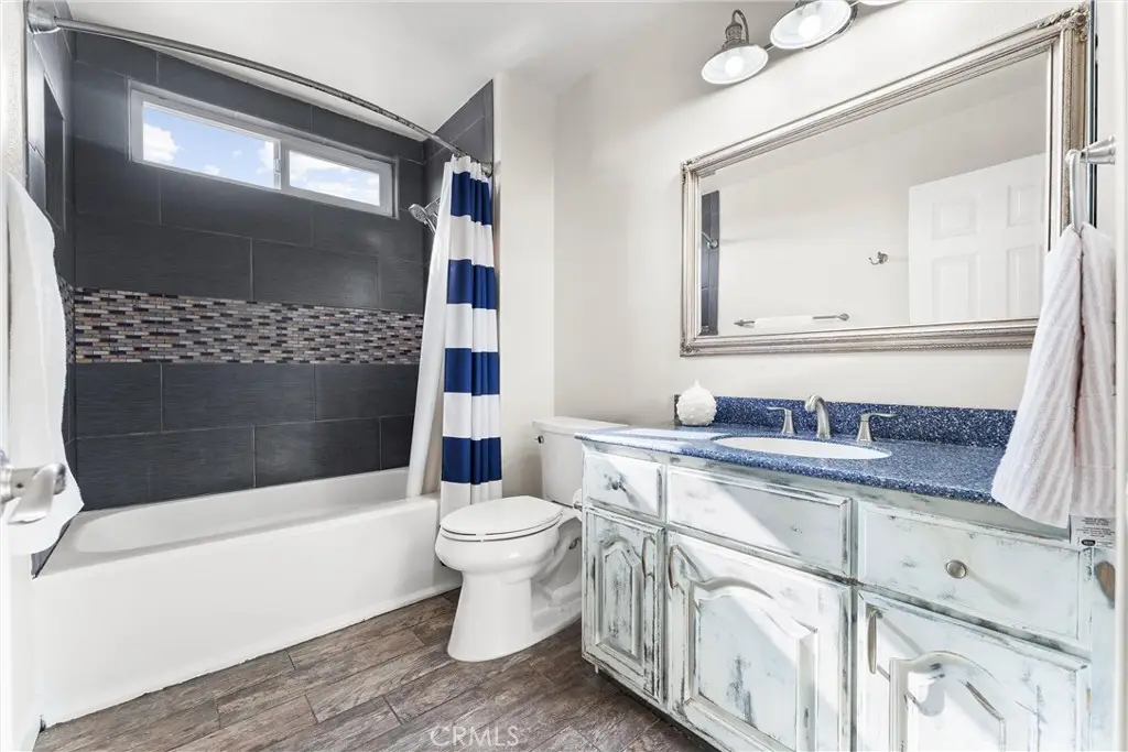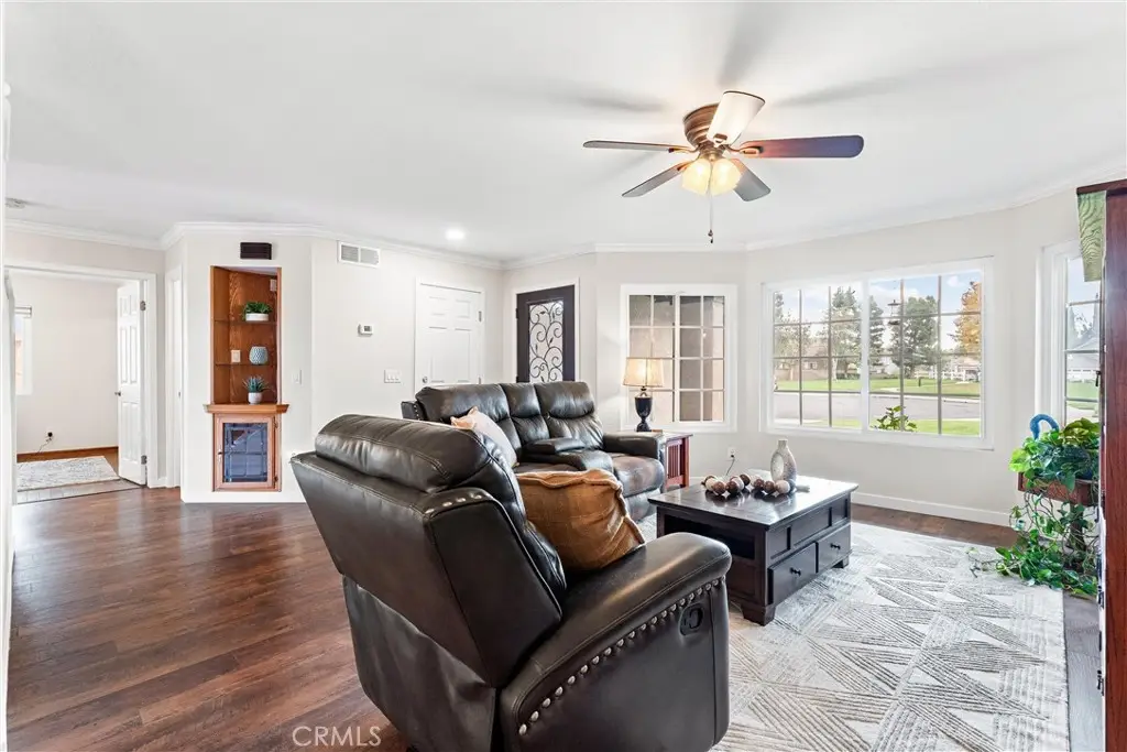 Beautifully Remodeled 4-Bedroom Home on a Spacious Cul-de-Sac Street Welcome to this stunning remodeled 4-bedroom, 3-bath home nestled at the end of a wide, quiet cul-de-sac. Thoughtfully updated throughout, this home combines modern comfort with timeless charm. Step inside to a bright living room featuring a large bay window and an adjacent dining area perfect for entertaining. The remodeled family kitchen boasts beautiful custom cabinetry with soft-close doors and drawers, quartz countertops, and clever space-saving features. It opens to a large family/eating area highlighted by soaring wood-beamed ceilings and a gorgeous fireplace--ideal for gatherings or cozy evenings in. A convenient downstairs bedroom and full bath offer flexibility for guests or multigenerational living. Upstairs, the spacious primary suite includes a walk-in closet and a luxurious remodeled bath with dual vanities, separate soaking tub and shower. Two additional upstairs bedrooms are generously sized and share a beautifully updated full bath. Additional upgrades include: Fresh interior paint, newer AC system, double-paned Milgard windows, water conditioner, newer water heater, crown molding, recessed lighting, ceiling fans, whole house fan and programable hot water recirculator. Enjoy outdoor living on the extra-large lot with a covered patio, lush garden areas, and a fruit-bearing pomegranate tree. The property also features a versatile permitted 15'x17' patio room with private access--perfect as a home office, gym, or guest space--plus a charming "She Shed" for hobbies or storage. Ideally located across from a park and playground, this home is close to excellent schools, shopping, dining, and the local sports park. A true must-see for those seeking space, style, and convenience in a prime neighborhood!