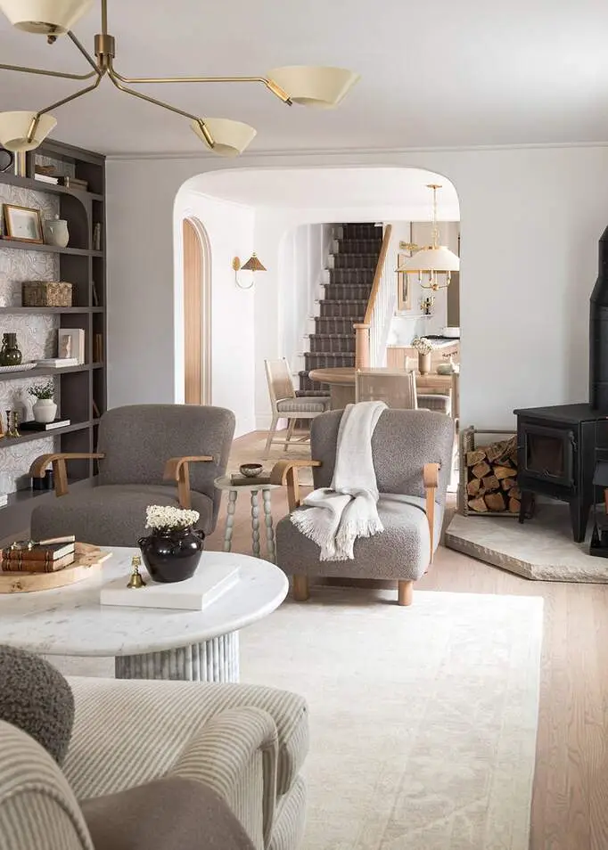 This beautifully refined home, located in the heart of the Village on historic Lake Street, was designed and reimagined by nationally recognized designer Kate Marker. With a thoughtfully executed addition and renovation, this four bedroom, 3.2-bath residence spans 4,500 square feet and includes a new heated two-car garage. From the moment you arrive, the home enchants with its curb appeal and welcoming vestibule, leading to a blend of original and signature design elements-arched windows and doors, vaulted ceilings, intricate millwork, built-ins, custom window treatments, and layered lighting. The main level features a sunlit living room with a wood-burning fireplace, a gourmet kitchen with handcrafted cabinetry, high-end appliances, pantry, and coffee bar, plus a vaulted family room with French doors opening to the gardens. A breathtaking first-floor primary suite, a second ensuite bedroom, and a mudroom with laundry complete the level. Upstairs, two additional bedrooms showcase shiplap and beams, joined by a lounge with dual built-in daybeds and a full bath. The lower level offers a built-in sauna, recreation lounge with bar, office, powder room, second laundry, and ample storage. Exterior highlights include professional landscaping, a herringbone brick walkway, reclaimed wood shutters, painted brick and cedar siding, dormered windows, a Dutch door to a covered porch, and an iron gas lantern. The private backyard, complete with fire pit, hot tub, sprinkler system, and outdoor speakers, provides a perfect retreat. The home is hardwired for Sonos, equipped with a complete security system, and the garage includes attic storage with EV-ready electrical. Just steps from coffee shops, restaurants, shopping, Metra, and award-winning District 220 schools, this Village location is unmatched. This residence is available fully furnished at an additional cost, offering a turn-key option with all of the professionally curated designer elements included.