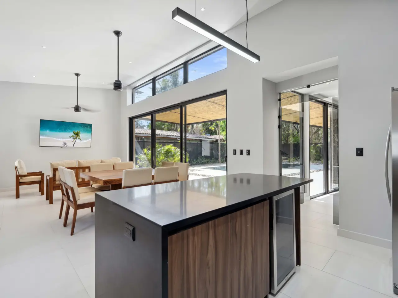 Casa Las Baulas, an upcoming luxury home that epitomizes coastal elegance, located just 100 meters from the pristine shores of Playa Grande. This under-construction masterpiece, set for completion in January 2025, offers a seamless blend of modern design and unparalleled beachside living. The property features four spacious bedrooms and 3 boasting ensuite bathrooms, providing the perfect retreat for family and guests. The master suite is a sanctuary with his and hers sinks for added convenience. The thoughtful design separates the living area and kitchen from the bedroom wing, ensuring privacy and functionality. Step outside, where a stunning pool invites you to relax, with ample space for sunbathing chairs and an adjacent fire pit for cozy evenings under the stars. The outdoor covered area is perfect for entertaining, whether hosting a casual barbecue or a lavish gathering. Every detail of this home reflects luxury, from the high ceilings that enhance the open, airy feel to the premium finishes and materials selected with care. The best part? You’ll hear the soothing sound of waves year-round, a constant reminder of the home’s enviable location, just a 2-minute walk from the beach. Casa Las Baulas comes fully furnished, offering a turnkey opportunity for those eager to enjoy the Costa Rican lifestyle from day one. Whether you seek a permanent residence or a tranquil retreat, this home is designed to meet your every need. Don’t miss the chance to own this slice of paradise, where luxury meets the ocean in perfect harmony.