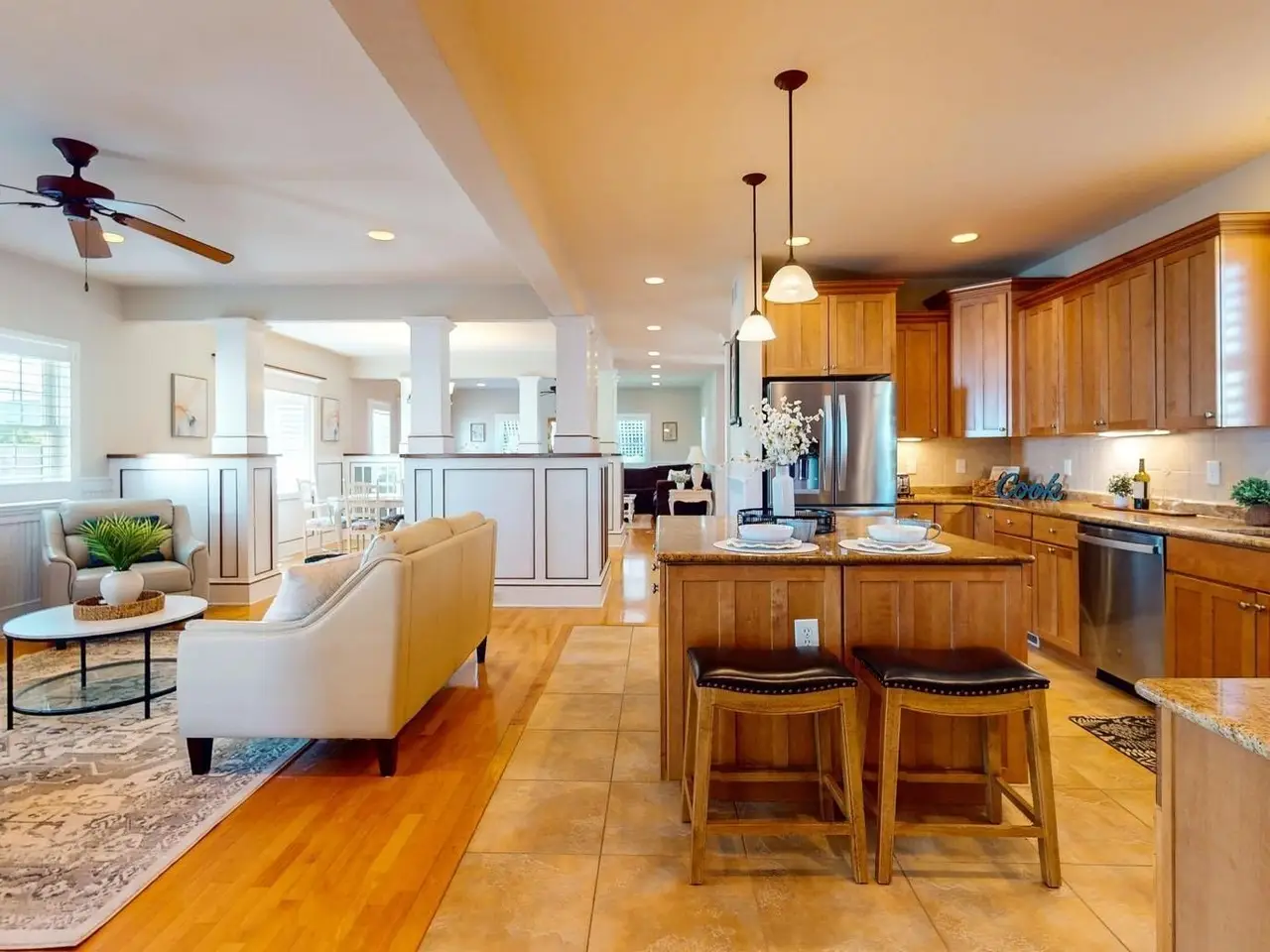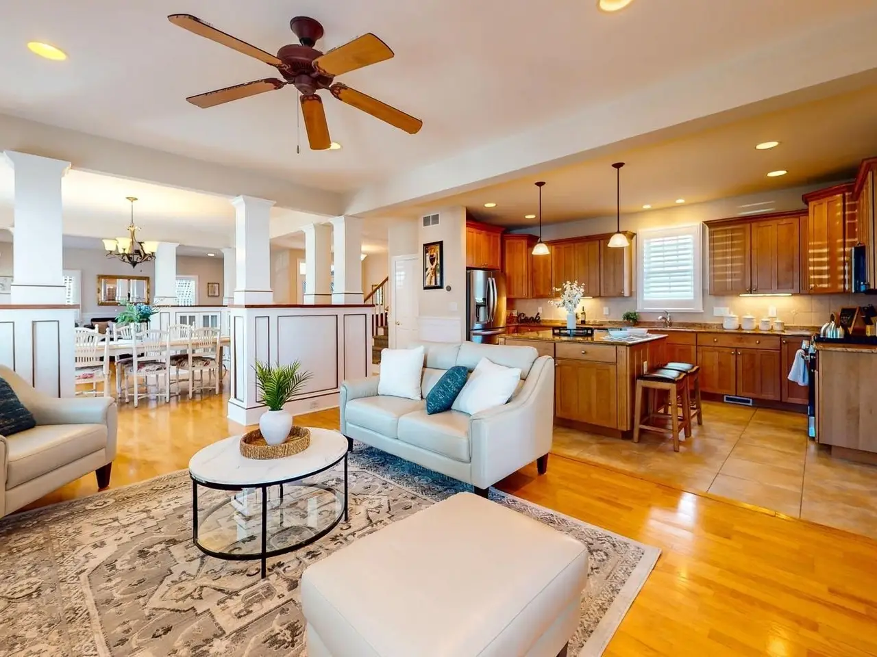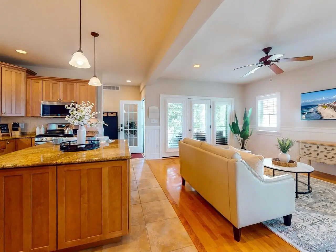 **PRICE REDUCED-BEST SINGLE FAMILY VALUE IN OCNJ** This classic Asher Single Family Masterpiece compliments this great North-end neighborhood with charm and elegance; capturing the Classic Design of years past on the outside with the modern amenities of today on the inside. This Six Bedroom, Four and a half Bath home features wainscotting, Plantation Shutters throughout first floor, hardwood floors, built-in cabinetry featuring cherry-wood inlays, cathedral ceilings in four of six bedrooms, tiled showers with glass doors and many more attributes throughout the house. The kitchen's granite counters and oversized center island compliment the tall cabinets for plenty of storage, with all new stainless steel appliances. The adjacent family room, half bath and rear porch make this area a focal point for entertaining. The over-sized primary bedroom features a cathedral ceiling, hardwood floors, a huge walk-in closet an ensuite private bath with tiled floors, a large walk-in tiled shower w/glass doors and marble double sink top along with high ceilings. A walk-in Laundry Room, Hall Bath and two other Bedrooms are down the hall leading to the Secondary Primary Bedroom, bigger than most Primary bedrooms and complete with cathedral ceilings, an ensuite bathroom, walk-in tiled shower w/glass doors and a slider going out to the rear deck. Up one more flight of stairs to the 3rd floor, featuring bedrooms five & six, w/ vaulted ceilings and full length windows. This top floor is complete with the fourth full bathroom also with tiled floors, tiled walk-in shower and glass shower doors. The attached, freshly painted garage with epoxy floors and a loft for additional storage is a plus. The southern side of the property is fenced-in with a front gate and open in the back (can be easily gated). The rear parking pad doubles as a rear patio, giving you great outside space and is used as a courtyard in the summer. This house and location has so much to offer; a quick walk to the beach or downtown shopping as well as a bike ride to almost anywhere! Easy to show. Call today for your private showing.