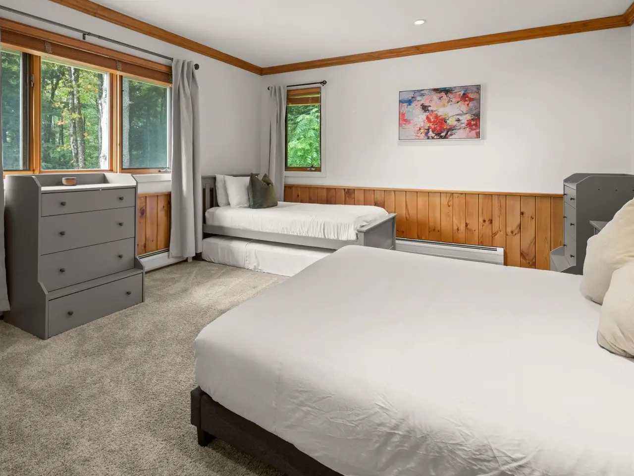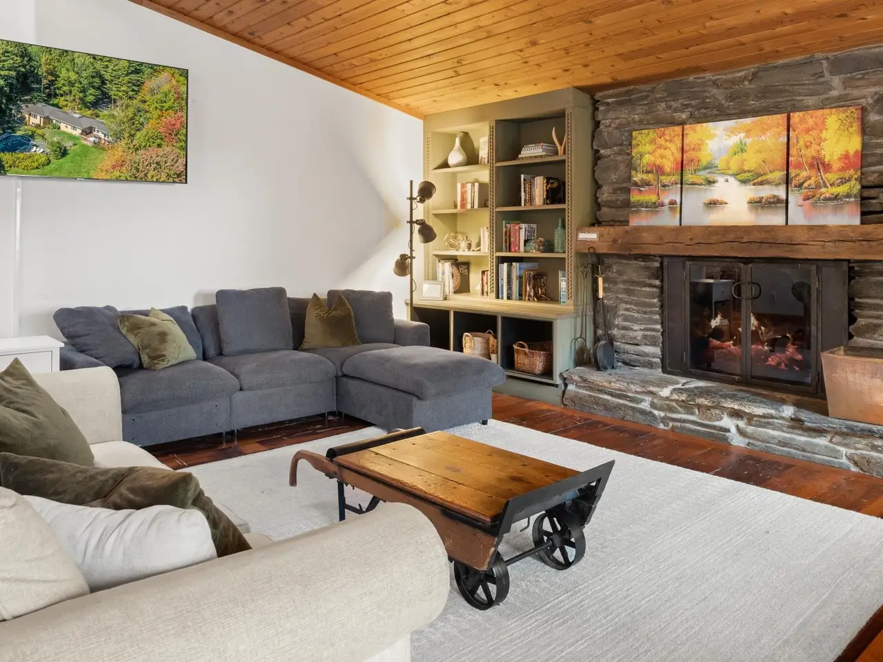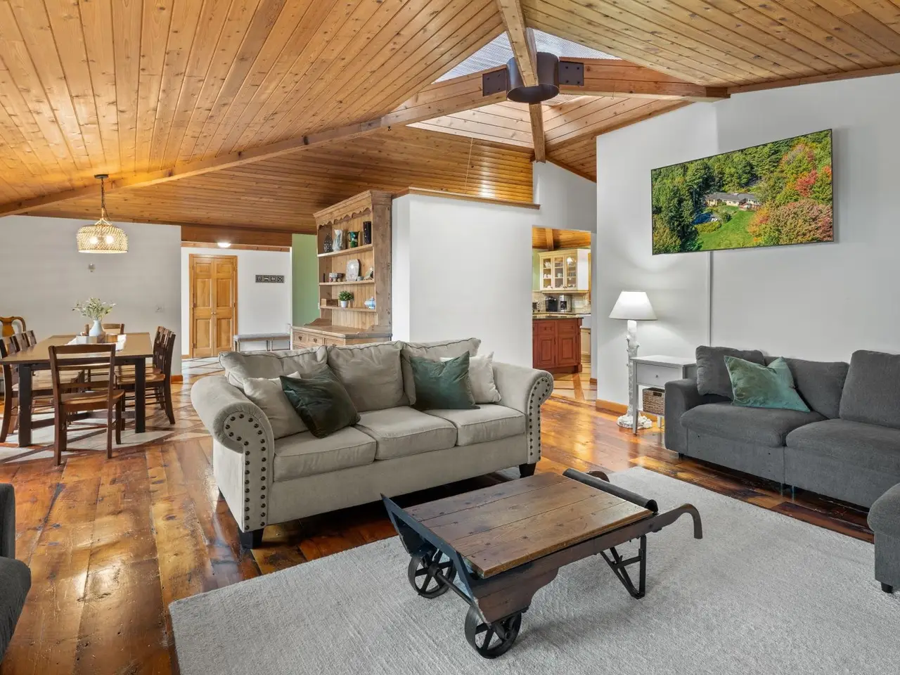 Set on over six acres of both wooded and open land, this exceptional property offers a rare combination of privacy, charm, and convenience—just minutes from all of Stowe’s world-class amenities. At its heart lies a spacious home anchored by a striking stone fireplace and rich wood floors, with French doors opening to an expansive deck with a new hot tub that seamlessly blends indoor and outdoor living. Designed for gathering and entertaining, the dining area frames mountain views, while the thoughtfully planned kitchen strikes the perfect balance between privacy for cooking and connection to the main living space. Down the hall, the primary suite provides a tranquil retreat with a large soaking tub, and six additional bedrooms and five baths ensure abundant accommodations for family and friends. On the lower level, a versatile entertainment area—with game room and kitchenette—offers endless opportunities for fun and relaxation no matter your age. Outside, a fenced, heated pool framed by elegant stonework creates a private resort-like setting, while the detached garage supplies generous storage for gear and equipment. With its spacious layout, inviting amenities, and unbeatable location, this property delivers the perfect Vermont retreat where memories are made and every season can be enjoyed.