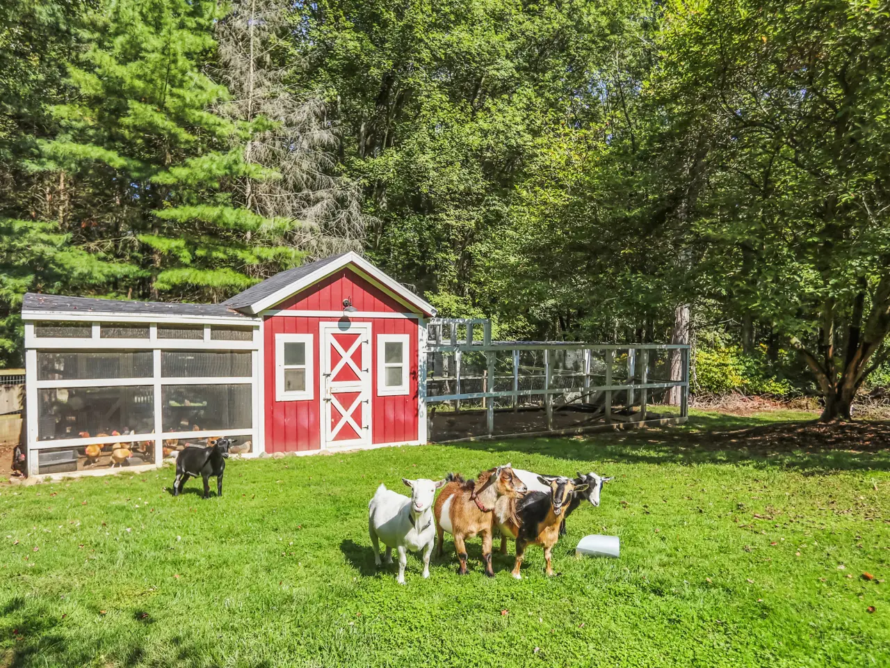 • Chandeliered hen house & goat barn