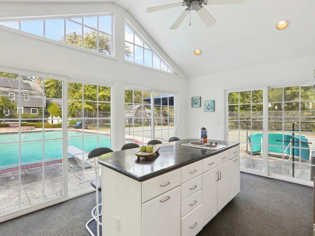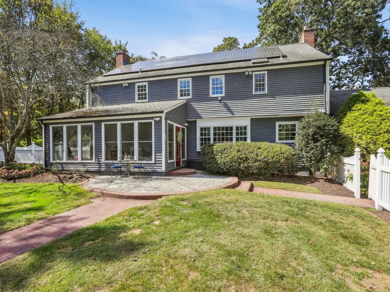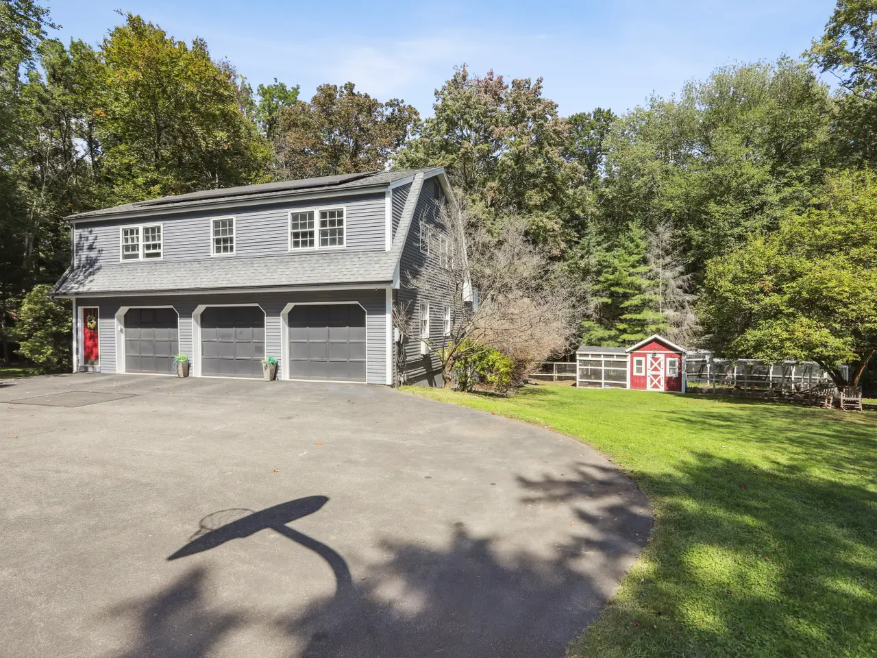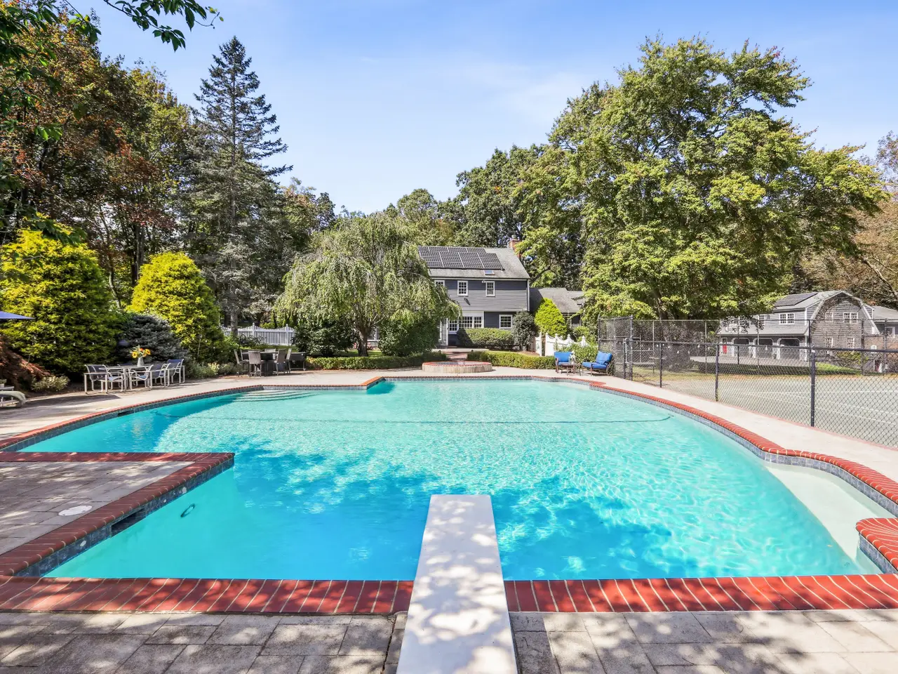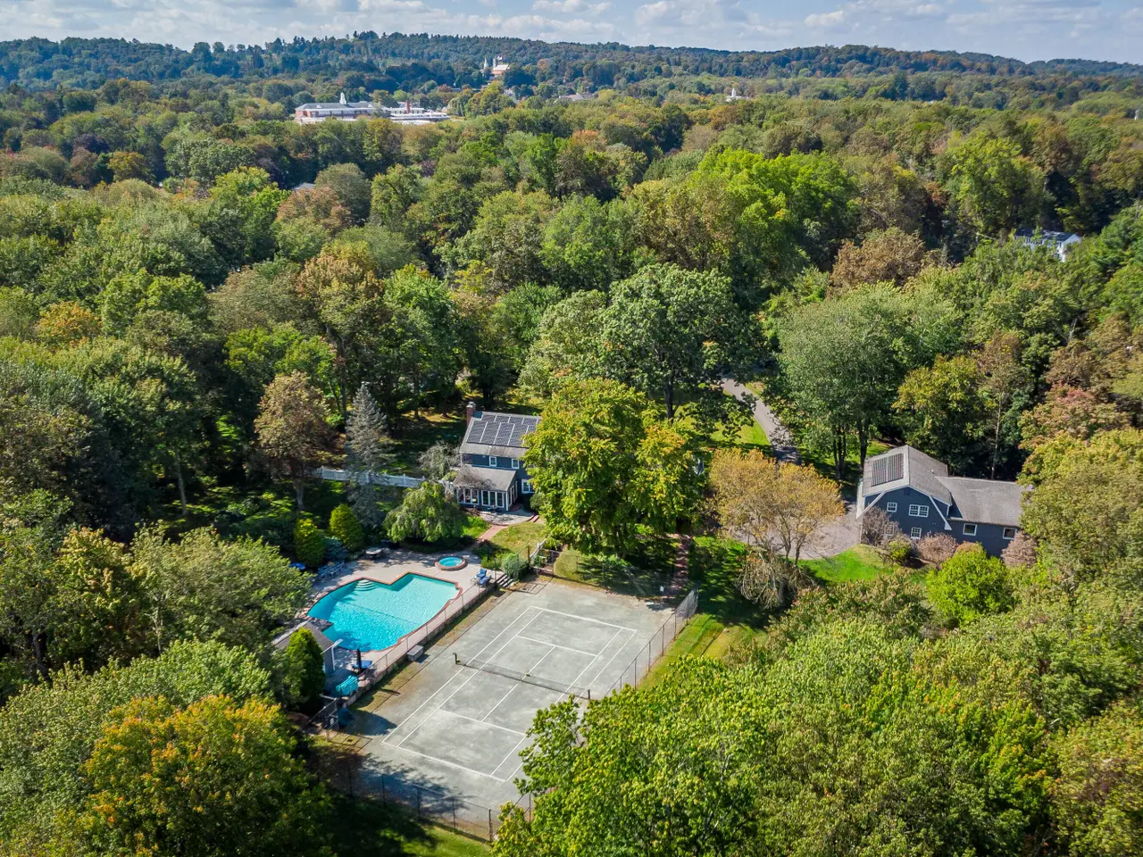 A Rare In-Town Estate set on nearly 5 sweeping acres in the heart of Newtown, this gracious homestead offers refined living and everyday enjoyment in an unrivaled location just a short stroll to schools, shopping, restaurants, Cyrenius Booth Library & Newtown's infamous Labor Day Parade plus Halloween & Christmas on Main celebrations. The main residence offers comfortable living at its best with purposeful & relaxed rooms & coveted features. Both the stunning gourmet kitchen with its granite counters, Stainless Steel appl incl the gas cooktop, wall ovens, butlers pantry & built-in hutch with beaded glass & interior lighting, stone fully heated flooring & the incredible Primary Bth showcase high-end luxe cabinetry/fixtures by Klaffs. An inviting Living & Dining Rm lead to the Family Room retreat where you can enjoy an evening fireside. If working from home is necessary, look no further as here you will find a gracious sized private light filled Study/Home Office adorned with a convenient wet bar. When the day is done, take a breath, relax in the all-Season Sun Room while enjoying the glorious views of the naturalistic outdoor gardens and pool. The 2nd level offers 5 Bdrms to slumber. Comfort is elevated w radiant heated floors in the Primary Bathroom & kitchen. At 28 Grand Place, outdoor living is unrivaled with an impressive heated saltwater pool & spa, a cabana with island seating/kitchenette/full bath with changing room, a regulation har-tru tennis court, firepit, patio areas for lounging & dining surrounded by expansive lawns/gardens that border over 100 acres of town meadows. The property is enclosed with an electric dog fence and there is an underground irrigation system to keep the grounds looking pristine. Just steps from the main house, a detached three-car garage opens up to reveal a beautifully designed guest apartment complete with a spacious media/rec room, kitchenette, bedroom and full bath - the perfect setup for hosting friends and family or creating a private retreat. Whether you're showcasing your vintage car collection, storing your favorite recreational gear- bikes, mopeds, skis, golf cart-or simply in need of extra space, there's room for it all. When it's time to switch gears from poolside relaxation, head indoors to your very own half-size indoor basketball court (converts to a volleyball court-net included) with a private half bath. Rain or shine, play a pickup game, practice your free throws (or practice gymnastics on the included gym mats), turn the space into a calming yoga sanctuary. This one-of-a-kind property doesn't stop there. Additional highlights include Solar panels offering incredible energy efficiency and annual savings and Tesla EV charging station for modern convenience. In addition, you'll find a whimsical, chandeliered hen house and goat barn for your backyard hobby farm dreams. City water, sewer, natural gas, and an automatic full house generator for both the main house and guest house provide peace of mind year-round. On the lower level of the main house, various unfinished areas have been put to good use & include a billiards room, dedicated fitness areas for boxing/cardio/yoga & free weights to support your wellness goals-no gym membership needed! All this set on one of the most desirable in-town street-a quiet, U-shaped road no less, this home offers the feel of a private country retreat while being just a short stroll from the heart of Newtown with its charming shops, restaurants & timeless small-town pleasures. With flexible living spaces, refined amenities, and unforgettable character, this is more than a home- it's a lifestyle. Whether you're entertaining, unwinding, or simply enjoying the everyday, this extraordinary property allows you to live your best life without ever needing to leave.