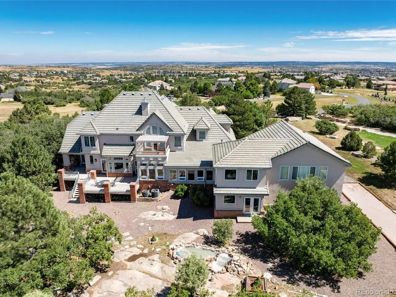 AN EXTRAORDINARY OPPORTUNITY IN CASTLE ROCK'S PREMIER COMMUNITY Rarely do properties become available on the Ridge at the prestigious Diamond Ridge Estates community, it is difficult to leave such commanding views of the Rocky Mountains. When they do go on the market, the first number is more likely to be 3, 4, or even 5. The panoramic views of the front range to Pikes Peak and beyond from the privacy of this setting that incorporates a serene waterfall, a pond, a bocce ball court, and your own putting green are extremely rare. This home is one of a kind. It meets the needs of every family, large, small, or even extended, with its separate wing and flowing spaces, private multi-use rooms, the possibility of a main floor primary suite, and garage spaces for five cars. Every amenity will be at your fingertips in this private community that incorporates a 90-plus-acre Nature Preserve with private trails, a community pool, tennis, and a clubhouse. Its easy access to I-25, dining, shopping, and the major office parks and sports facilities make owning this home a rare opportunity.