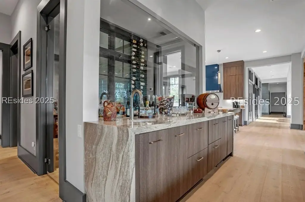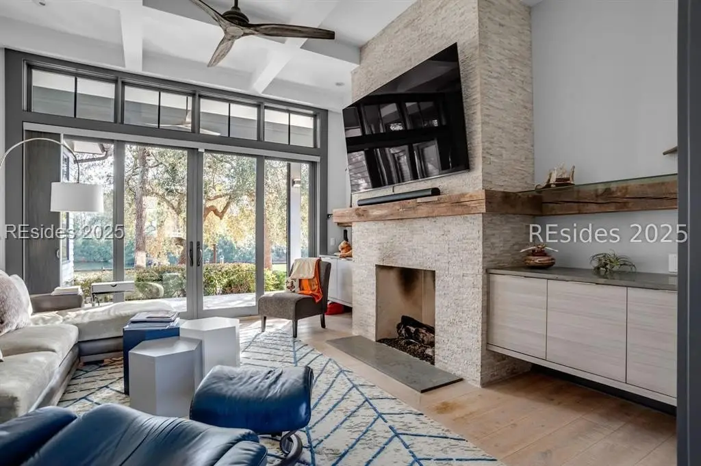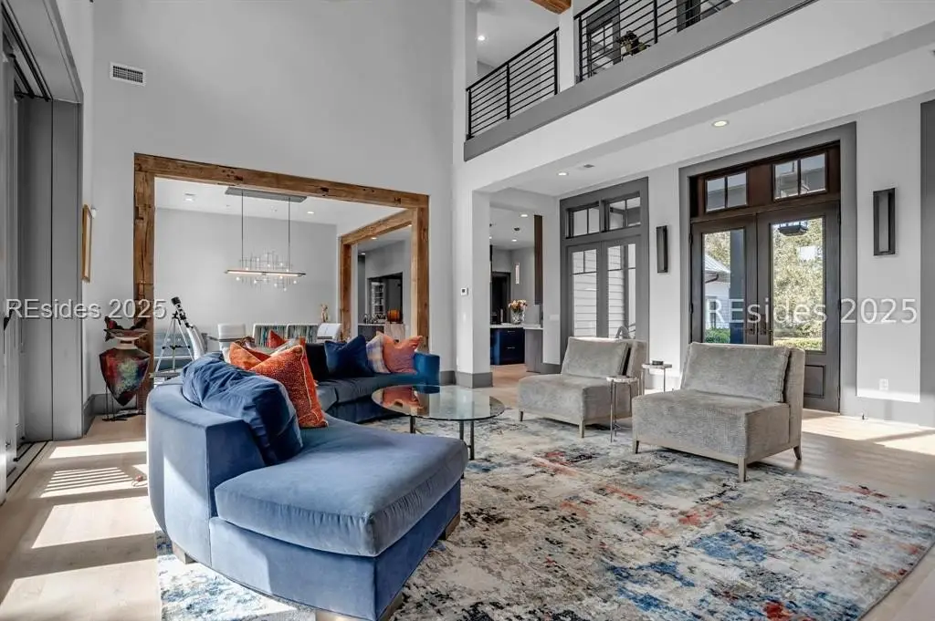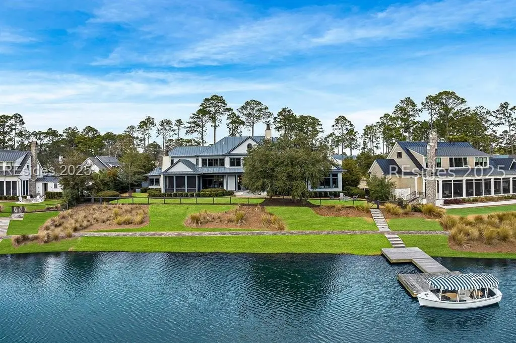 On the beautiful inland waterway in River Road, 85 Waterfowl offers unbelievable space with 4 bedrooms and 4 full/2 half baths, including large primary wing with attached office/exercise room/bonus bedroom. With majestic water views from the wrap-around porch, fenced backyard and private dock, the home is perfect for entertaining with large chef's kitchen plus auxiliary kitchen, separate bar and wine cellar, multiple indoor gathering spaces, and huge screened-in porch. Filled with custom details and steps from all the Palmetto Bluff amenities, including member-only pool, fitness center, and trails, this is the ideal Lowcountry luxury home.