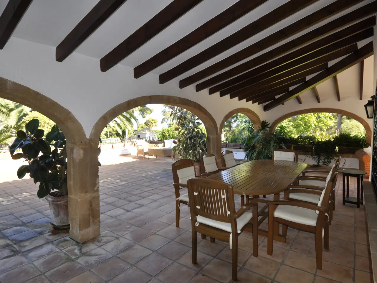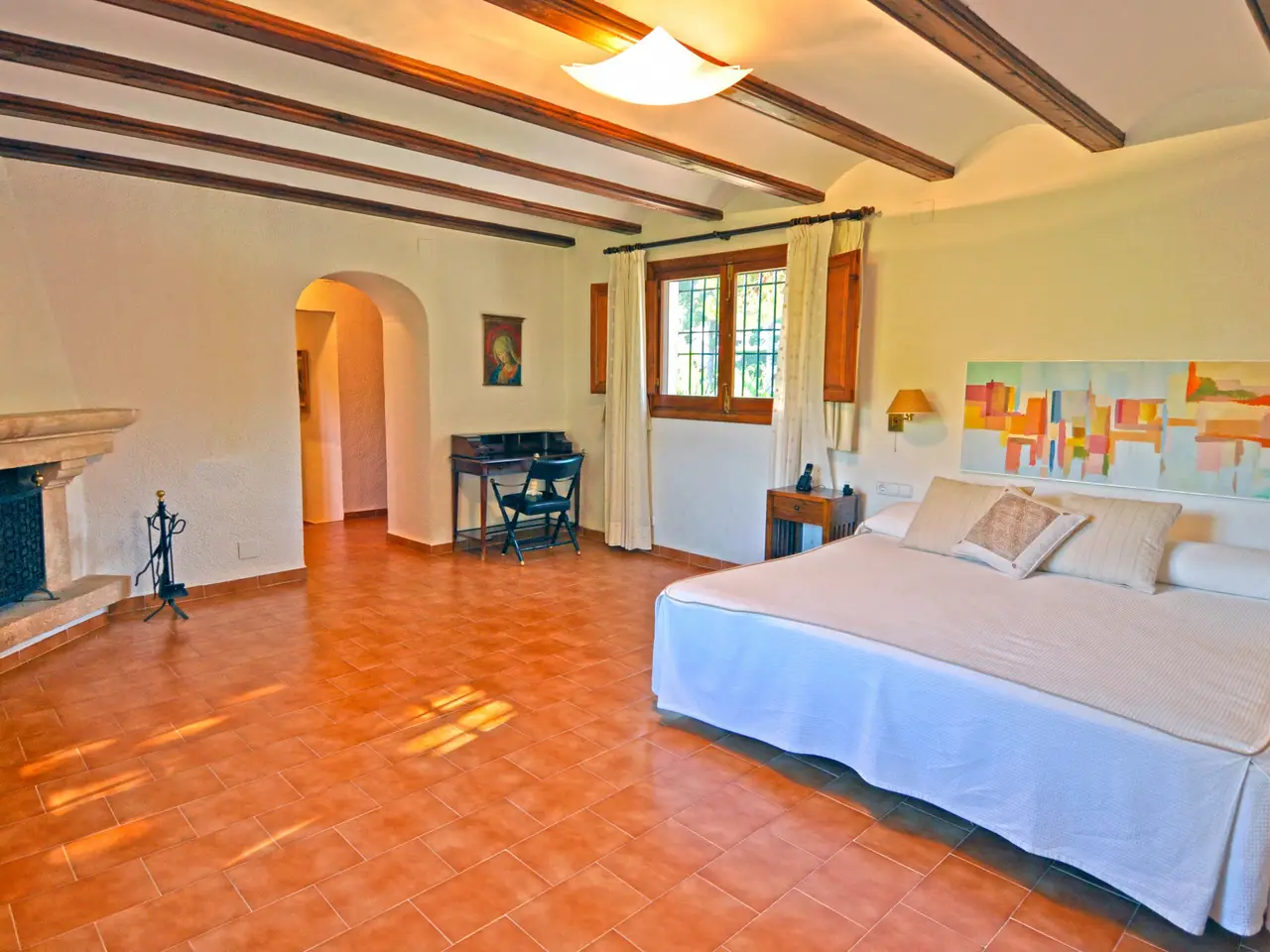 This elegant Mediterranean style villa is located in the renowned area of Tosalet in Jávea (Alicante), very close to the beach and all types of services. This property, full of charm, enjoys plenty of privacy, very spacious areas and a magnificent garden, while it also comes with a comfortable layout over two floors. The main floor consists of an ample lounge with a fireplace made of coarse stone (typical of the region) and with direct access to the outdoor covered terrace with views of the garden and swimming pool, a charming living room, a fully equipped, renovated kitchen with utility room, three double bedrooms with built-in wardrobes, two complete bathrooms and a bedroom for staff with a bathroom. The first floor is made up of the main bedroom with a dressing room, fireplace and a spacious bathroom, another double bedroom with wardrobes, an ample games room with a bathroom and a terrace with clear views of the garden and partial views of the Mediterranean sea. This floor has an independent access. The outside area has a covered terrace with a bathroom beside the swimming pool, surrounded by a garden with a wide range of Mediterranean vegetation. The house is fully equipped with heating, air conditioning in the main bedroom and the games room, a paddle court, a double garage, covered parking spot and alarm system. The property is ideal for a large family in an exclusive and safe area.