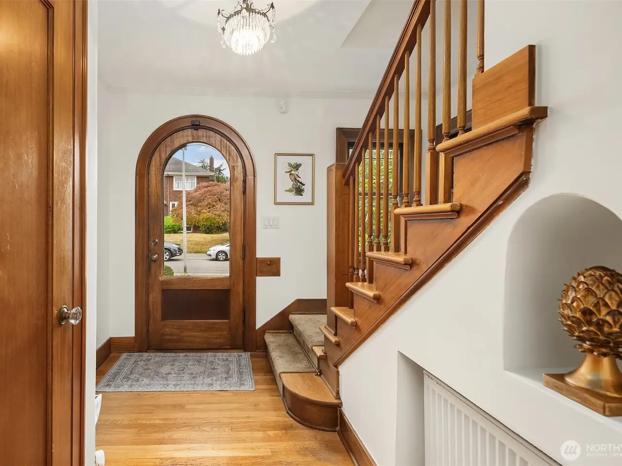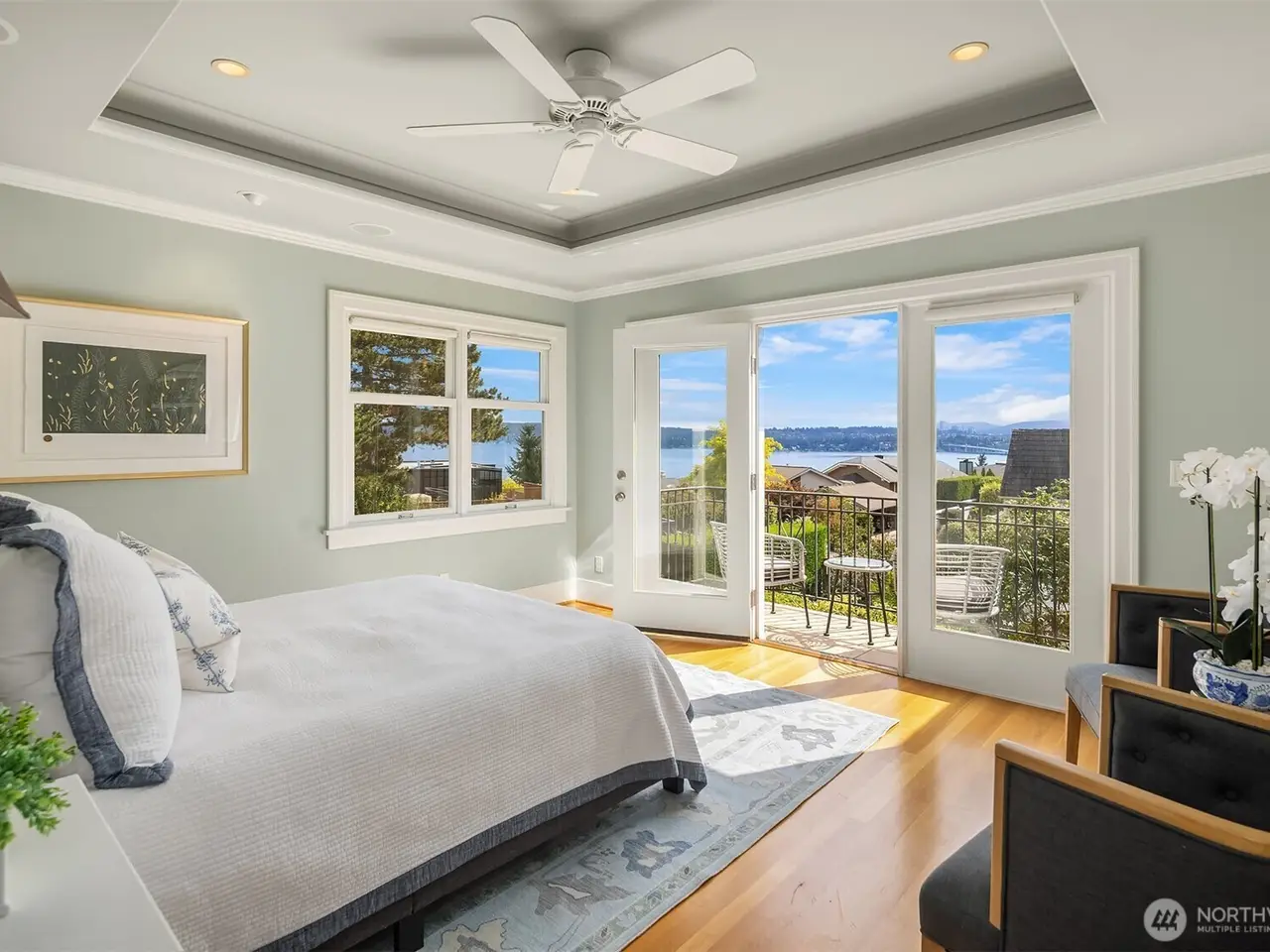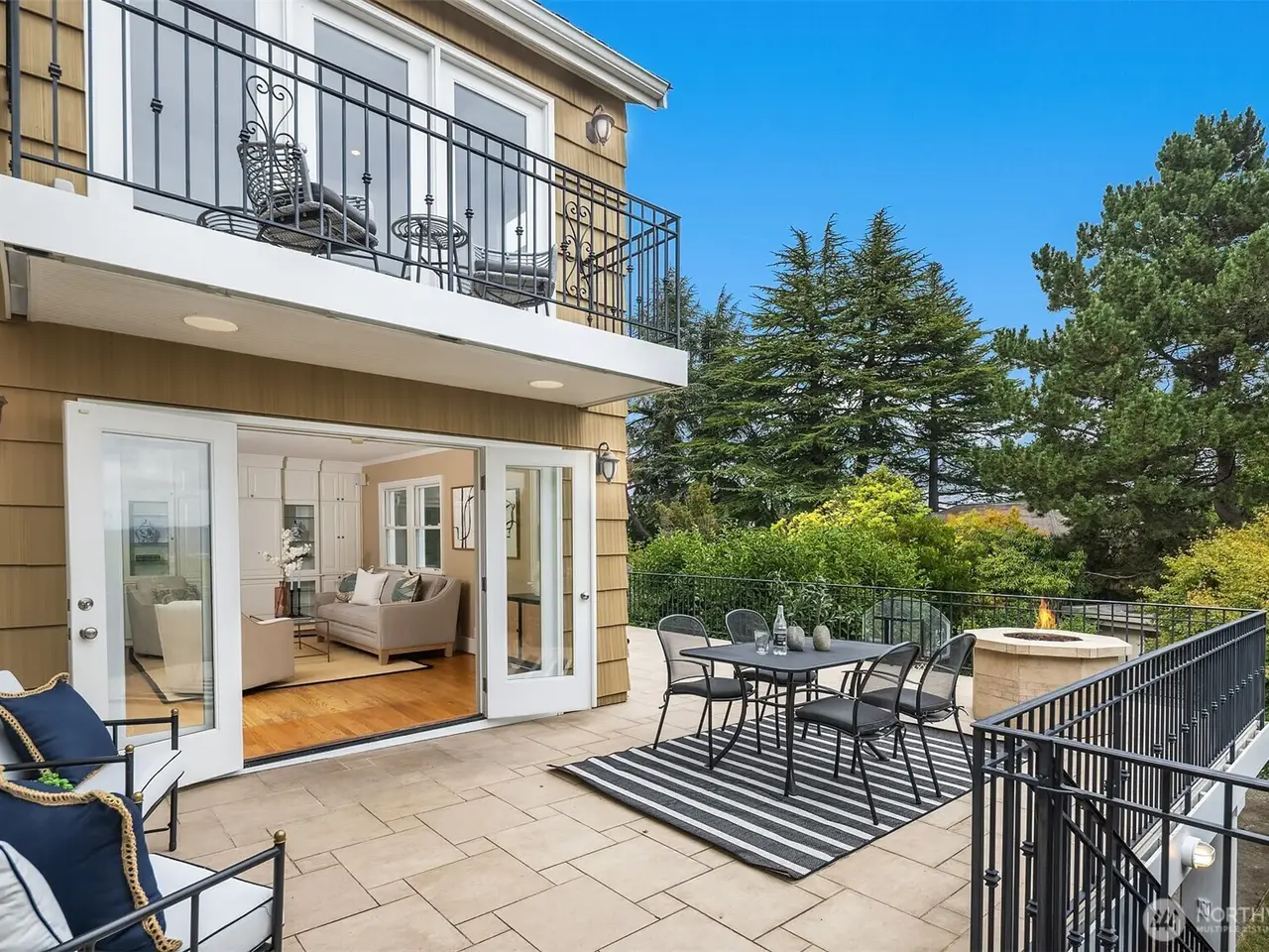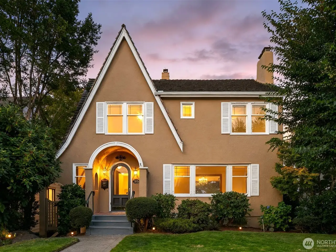Exquisite Laurelhurst Tudor, beautifully remodeled and brimming with timeless charm. Light-filled living room with elegant fireplace flows to formal dining and gourmet kitchen with bar seating, high-end finishes and seamless family room connection. French doors open to expansive deck with built-in firepit and multiple seating areas, ideal for entertaining. Upstairs offers 4 spacious bedrooms and 2 baths, including a luxurious primary retreat with private deck, walk-in closet, spa-like bath with soaking tub and steam shower, plus breathtaking views of Lake Washington. Lower-level features large rec room with fireplace, ¾ bath, laundry and storage. Sited on a coveted street offering a two-car garage, plus covered parking!