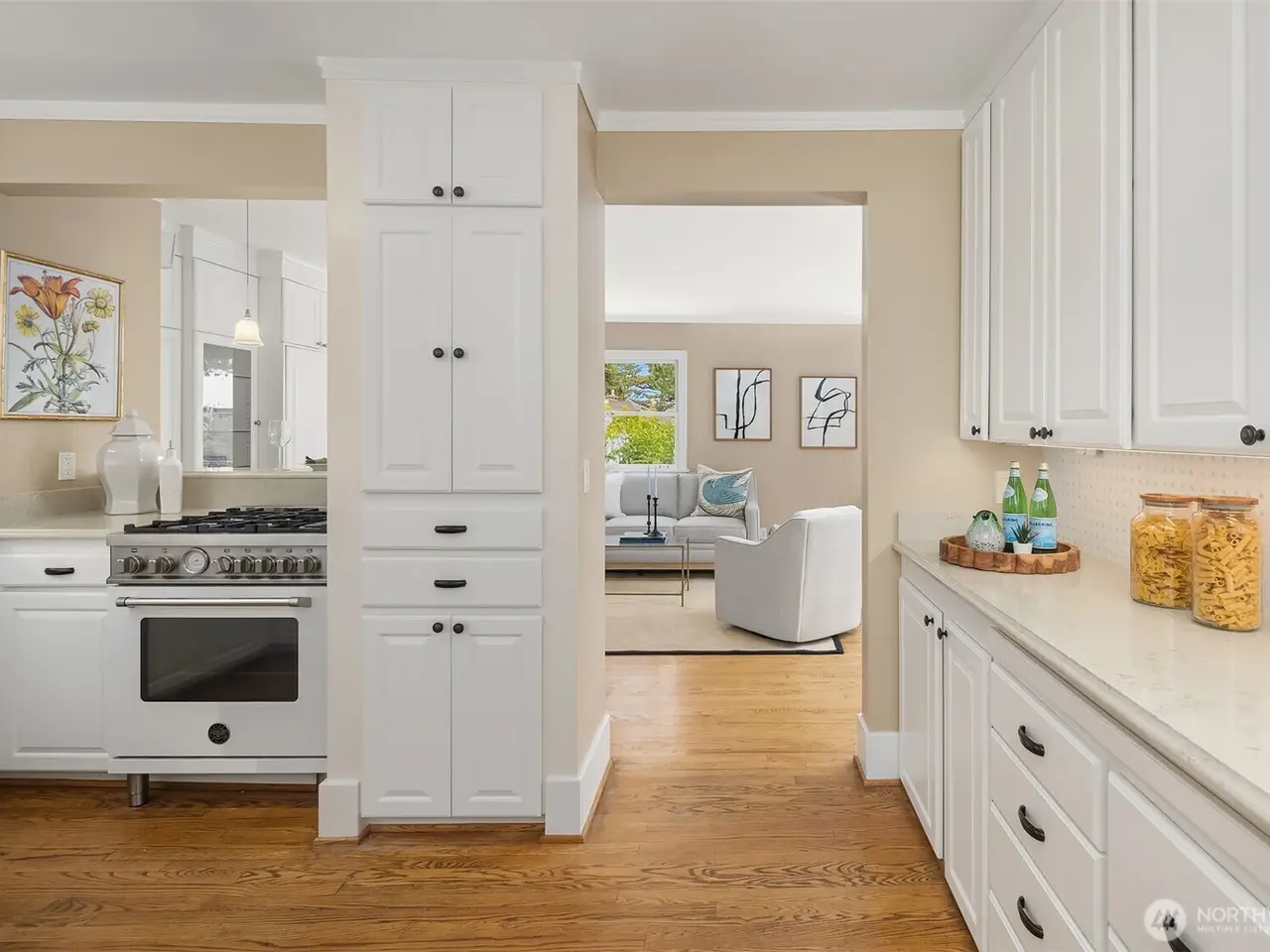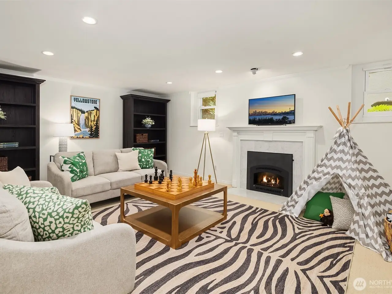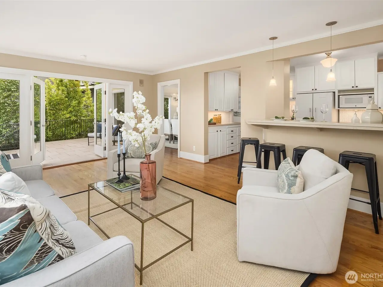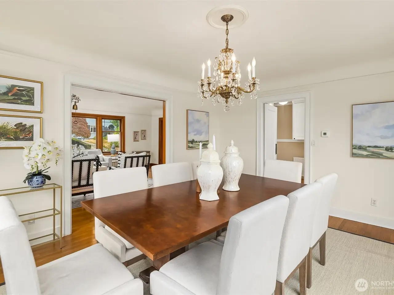 Exquisite Laurelhurst Tudor, beautifully remodeled and brimming with timeless charm. Light-filled living room with elegant fireplace flows to formal dining and gourmet kitchen with bar seating, high-end finishes and seamless family room connection. French doors open to expansive deck with built-in firepit and multiple seating areas, ideal for entertaining. Upstairs offers 4 spacious bedrooms and 2 baths, including a luxurious primary retreat with private deck, walk-in closet, spa-like bath with soaking tub and steam shower, plus breathtaking views of Lake Washington. Lower-level features large rec room with fireplace, ¾ bath, laundry and storage. Sited on a coveted street offering a two-car garage, plus covered parking!