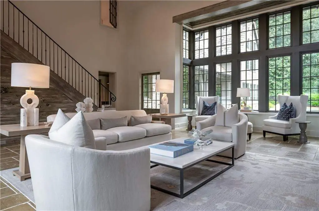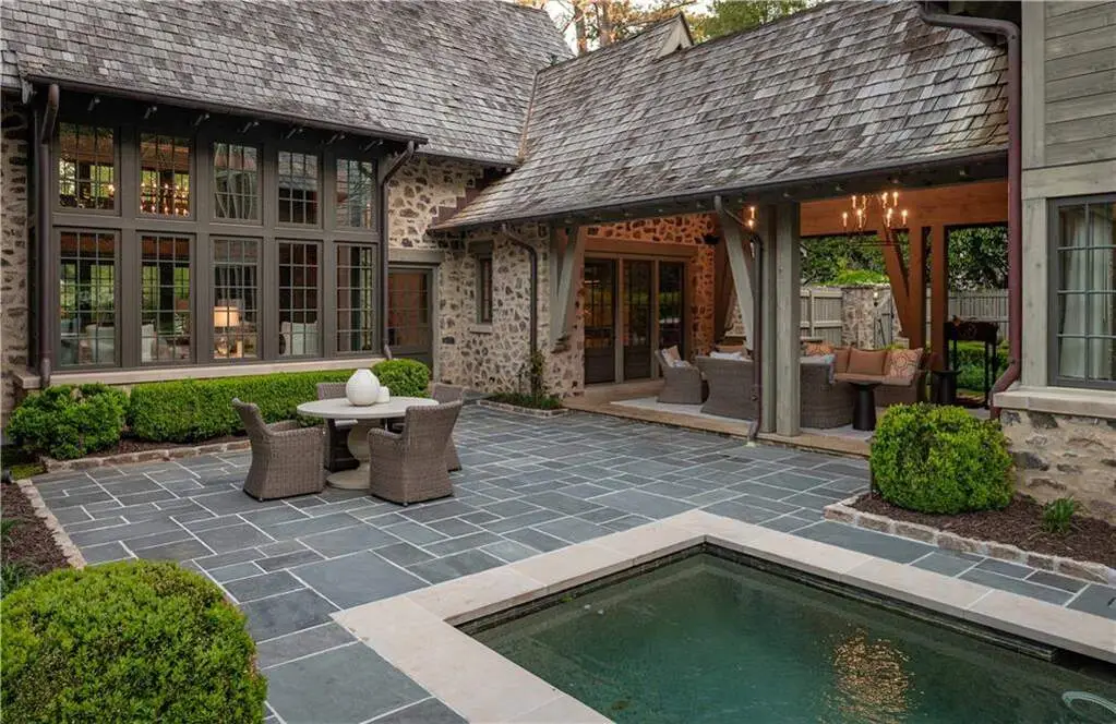 An English-inspired masterpiece thoughtfully designed by architect Bobby McAlpine and Builder Shaba Derazi brings a feeling of historic charm to Buckhead. Truly no details have been left untouched in the oak floors, pecky cypress accents & limestone fireplaces. Light filled entrance foyer leads to breathtaking living room and dining room. Chef's kitchen that opens to the keeping room offers stunning wood details, oversized island and Wolf/Subzero appliances. Sought after primary suite on main hosts dual dressing areas and spa-like primary bath as well as adjoining study. The primary bath offers dual vanities, dual shower and dual water closets as well as heated floors. The manicured grounds are reminiscent of the English countryside with pool, level backyard and lush garden area on over an acre of land. The property also consists of a free-standing cottage used as a pool house as well as a detached two-car garage with finished space above as a guest suite. The property has geo-thermal heating and air systems and private well water serving the pool, irrigation system and home. Truly a special home on a coveted Buckhead street!