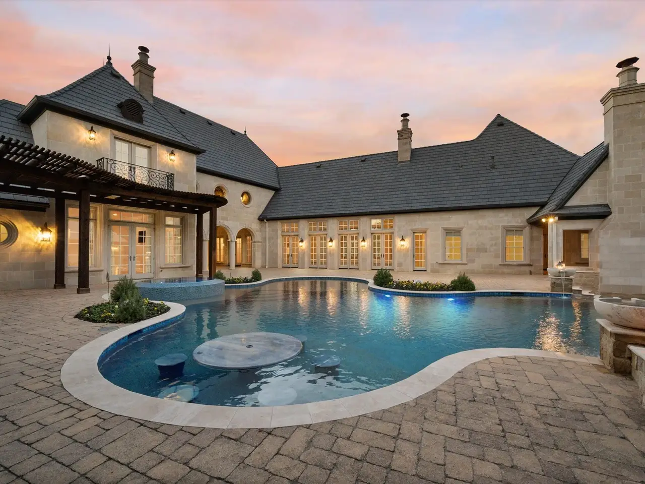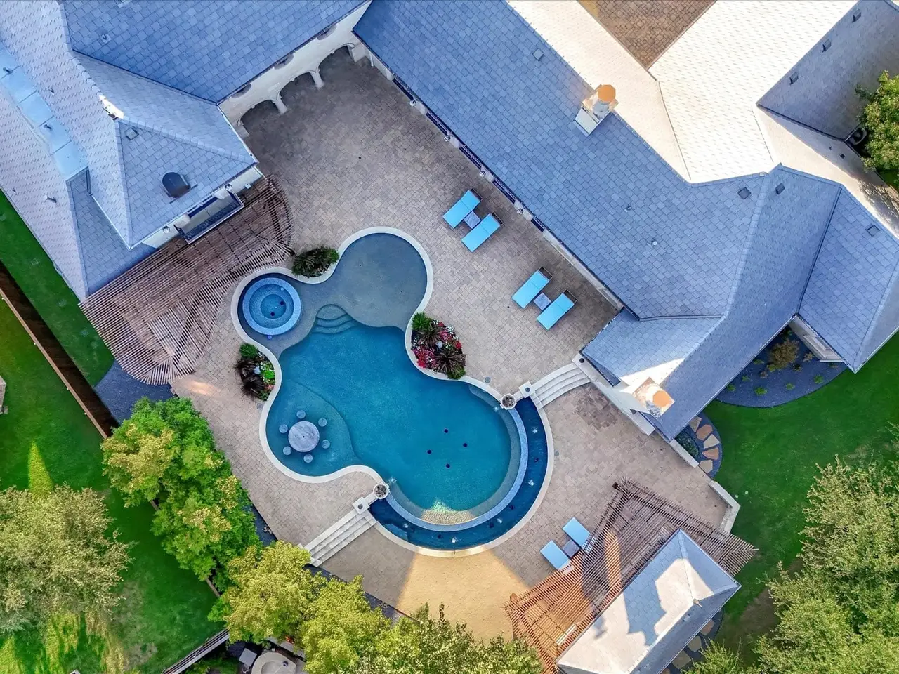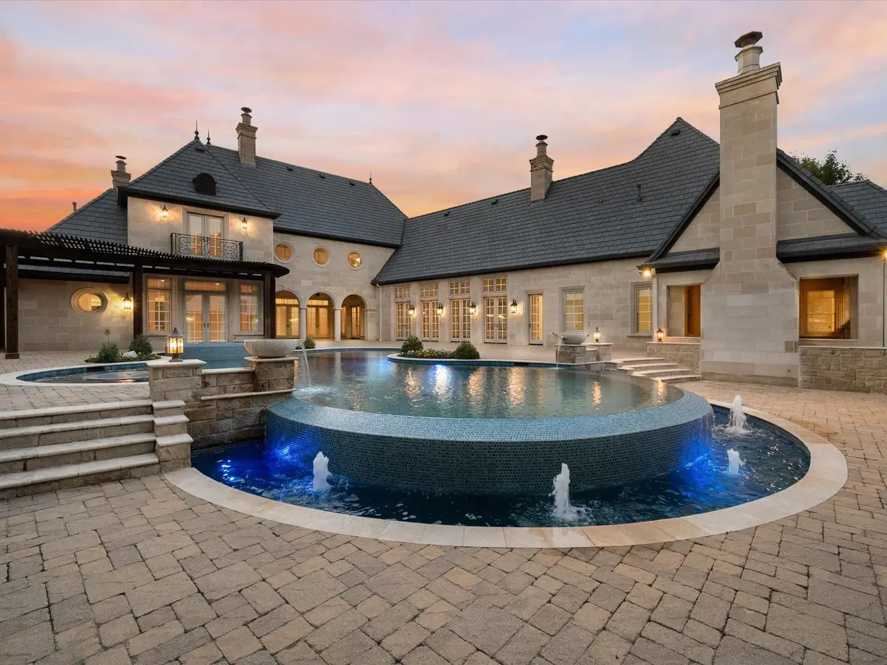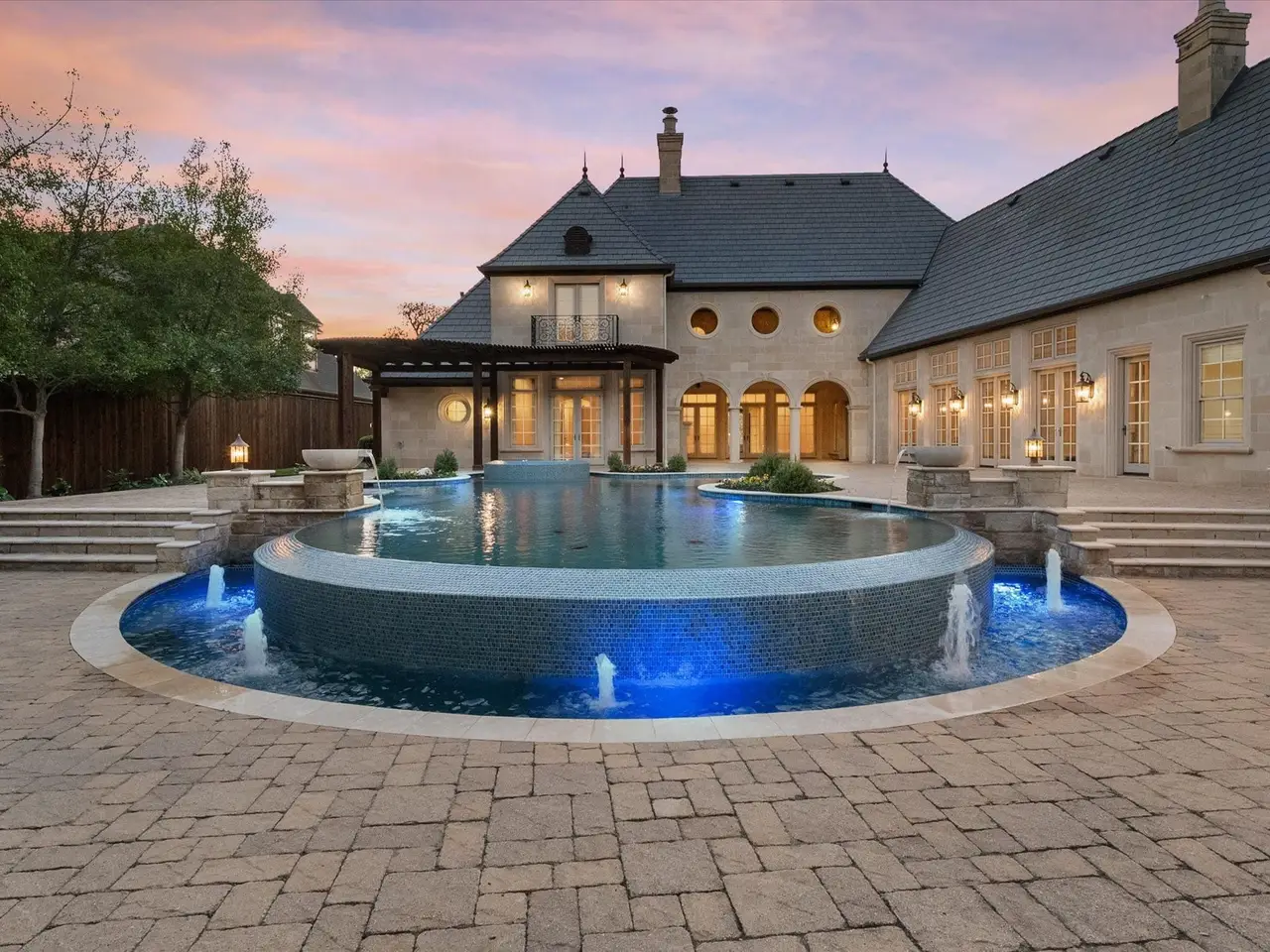 Nestled on nearly three-quarters of an acre in Mansfield's prestigious Strawberry Fields, this stunning estate spans an impressive 8,585 square feet. It features 5 bedrooms, 7 full baths, and 2 half baths, showcasing unparalleled luxury and thoughtful design. As you step inside, you're greeted by an elegant and grand ambiance. The home offers two master suites, each serving as a private retreat. The downstairs master suite includes French doors that open to the pool area for seamless indoor-outdoor living. It also features a coffee bar, dual closets, dual sinks, a walk-in shower, and a luxurious jetted tub. Upstairs, the second master suite boasts a spectacular bathroom and breathtaking views of the outdoor spaces. This estate includes two versatile offices, one equipped with a fireplace and a tornado shelter, and the other with built-ins and a full bath, offering the potential to serve as a sixth bedroom. Throughout the home, the exquisite finishes and meticulous craftsmanship elevate every corner. The kitchen is a chef's dream, equipped with a 5-burner gas cooktop, a new built-in refrigerator, microwave, dishwasher, and an expansive walk-in pantry. The living area is designed for both comfort and entertainment, with large glass doors that seamlessly merge indoor and outdoor spaces. The outdoor area is a true paradise, perfect for entertaining or relaxing. It includes a custom negative-edge pool with fountain features, a tiled spa, an in-pool granite table with seating, and a spacious sun deck. The cabana and two patios, each with a fireplaceone also equipped with an outdoor kitchenenhance the space's versatility and charm. Other amenities include an elevator, a game room, updated HVAC units, fresh paint, exterior coach lights, and a new custom Davinci RoofScape roof. The estate offers ample parking with a 3-car garage featuring a fully floored attic and a separate 1-car garage with HVAC. The gated driveway provides added security and plenty of parking space.