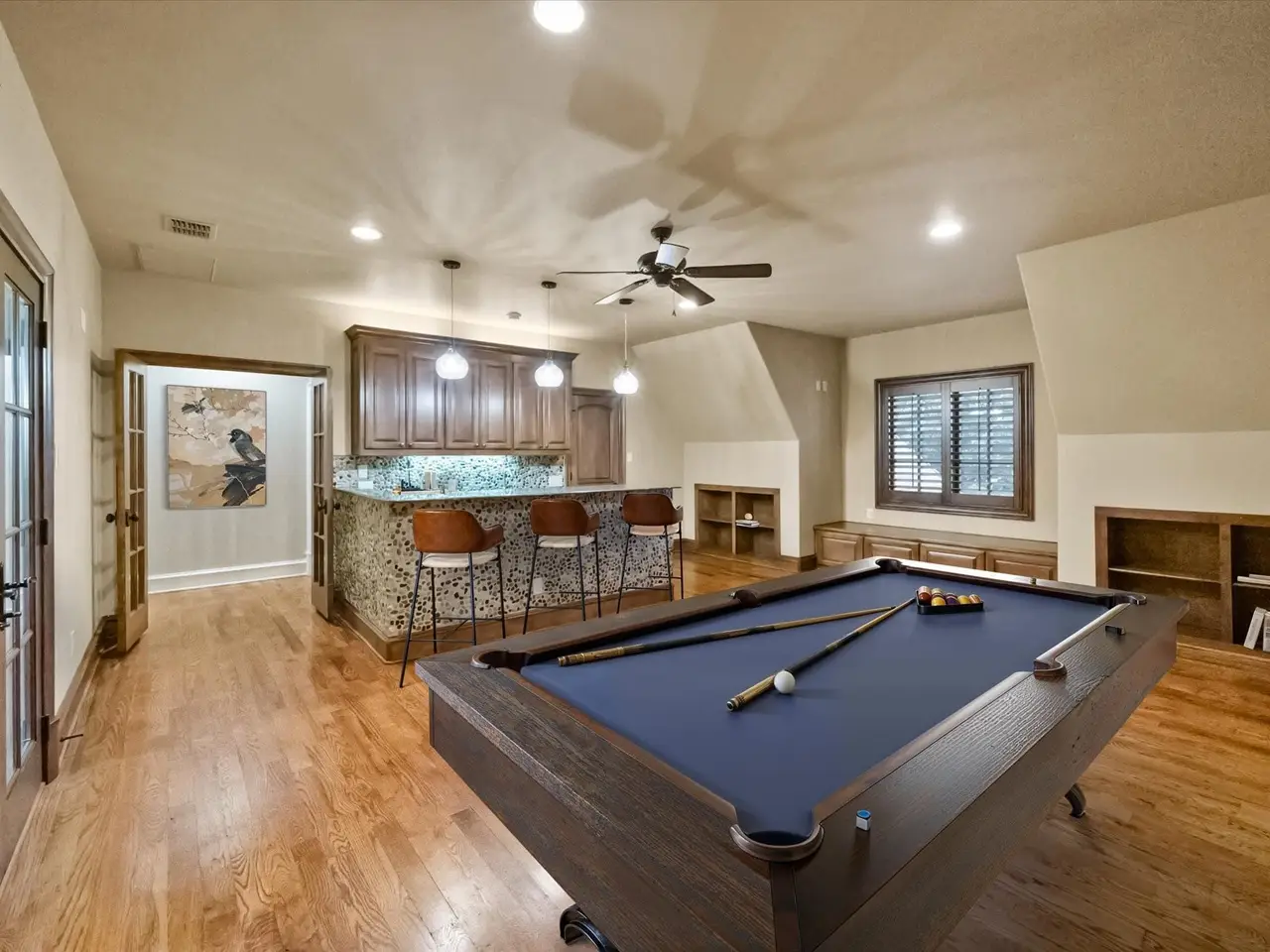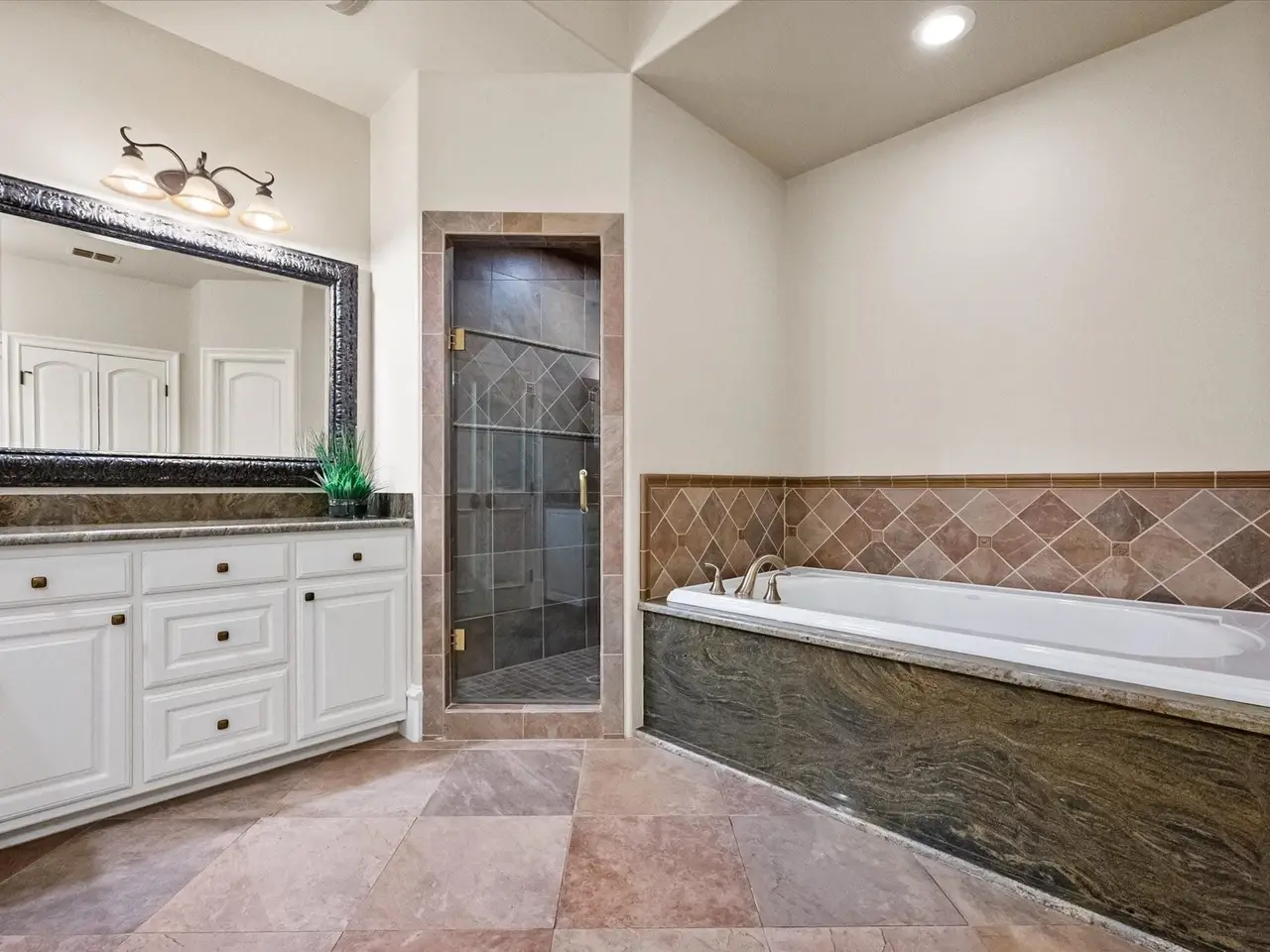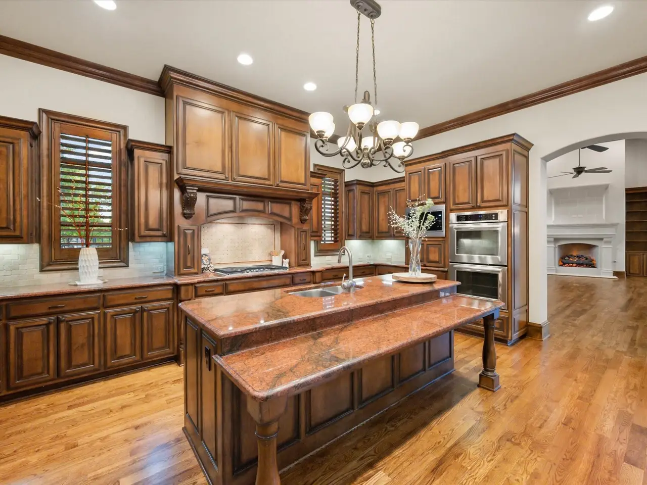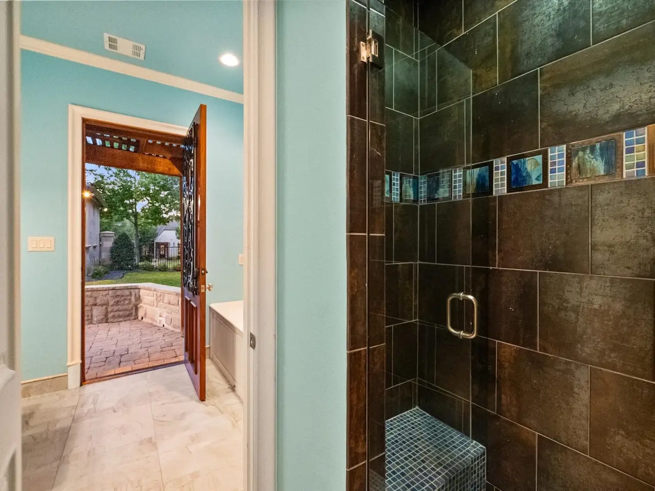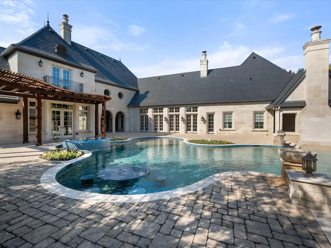 Nestled on nearly three-quarters of an acre in Mansfield's prestigious Strawberry Fields, this stunning estate spans an impressive 8,585 square feet. It features 5 bedrooms, 7 full baths, and 2 half baths, showcasing unparalleled luxury and thoughtful design. As you step inside, you're greeted by an elegant and grand ambiance. The home offers two master suites, each serving as a private retreat. The downstairs master suite includes French doors that open to the pool area for seamless indoor-outdoor living. It also features a coffee bar, dual closets, dual sinks, a walk-in shower, and a luxurious jetted tub. Upstairs, the second master suite boasts a spectacular bathroom and breathtaking views of the outdoor spaces. This estate includes two versatile offices, one equipped with a fireplace and a tornado shelter, and the other with built-ins and a full bath, offering the potential to serve as a sixth bedroom. Throughout the home, the exquisite finishes and meticulous craftsmanship elevate every corner. The kitchen is a chef's dream, equipped with a 5-burner gas cooktop, a new built-in refrigerator, microwave, dishwasher, and an expansive walk-in pantry. The living area is designed for both comfort and entertainment, with large glass doors that seamlessly merge indoor and outdoor spaces. The outdoor area is a true paradise, perfect for entertaining or relaxing. It includes a custom negative-edge pool with fountain features, a tiled spa, an in-pool granite table with seating, and a spacious sun deck. The cabana and two patios, each with a fireplaceone also equipped with an outdoor kitchenenhance the space's versatility and charm. Other amenities include an elevator, a game room, updated HVAC units, fresh paint, exterior coach lights, and a new custom Davinci RoofScape roof. The estate offers ample parking with a 3-car garage featuring a fully floored attic and a separate 1-car garage with HVAC. The gated driveway provides added security and plenty of parking space.