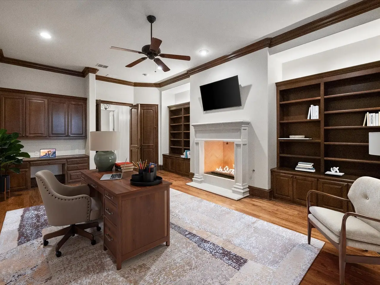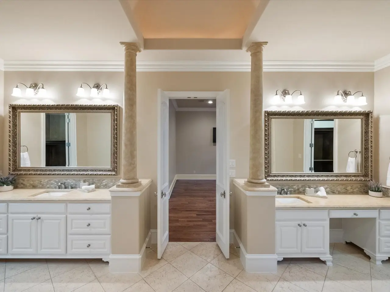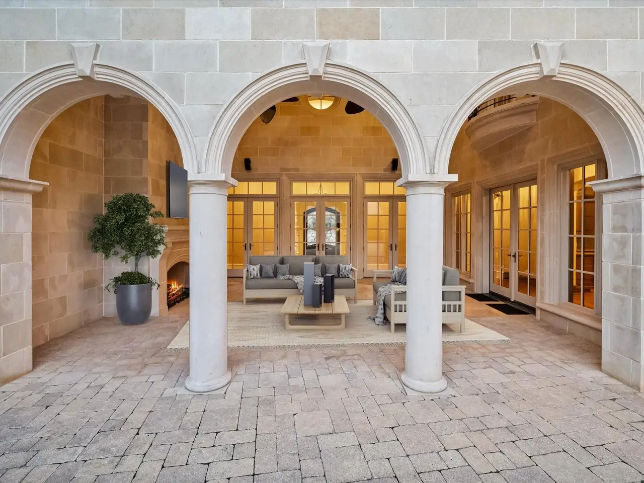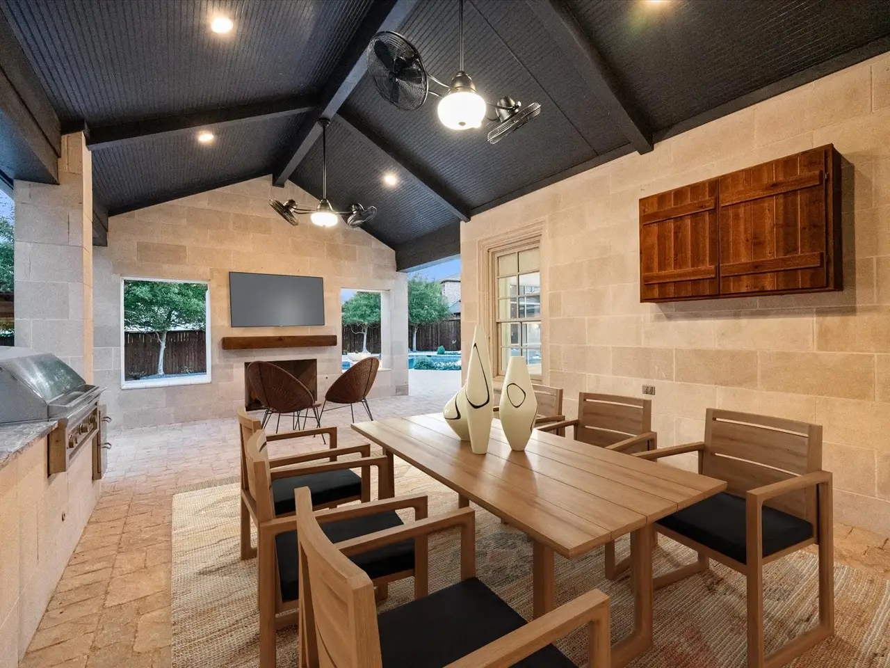 Nestled on nearly three-quarters of an acre in Mansfield's prestigious Strawberry Fields, this stunning estate spans an impressive 8,585 square feet. It features 5 bedrooms, 7 full baths, and 2 half baths, showcasing unparalleled luxury and thoughtful design. As you step inside, you're greeted by an elegant and grand ambiance. The home offers two master suites, each serving as a private retreat. The downstairs master suite includes French doors that open to the pool area for seamless indoor-outdoor living. It also features a coffee bar, dual closets, dual sinks, a walk-in shower, and a luxurious jetted tub. Upstairs, the second master suite boasts a spectacular bathroom and breathtaking views of the outdoor spaces. This estate includes two versatile offices, one equipped with a fireplace and a tornado shelter, and the other with built-ins and a full bath, offering the potential to serve as a sixth bedroom. Throughout the home, the exquisite finishes and meticulous craftsmanship elevate every corner. The kitchen is a chef's dream, equipped with a 5-burner gas cooktop, a new built-in refrigerator, microwave, dishwasher, and an expansive walk-in pantry. The living area is designed for both comfort and entertainment, with large glass doors that seamlessly merge indoor and outdoor spaces. The outdoor area is a true paradise, perfect for entertaining or relaxing. It includes a custom negative-edge pool with fountain features, a tiled spa, an in-pool granite table with seating, and a spacious sun deck. The cabana and two patios, each with a fireplaceone also equipped with an outdoor kitchenenhance the space's versatility and charm. Other amenities include an elevator, a game room, updated HVAC units, fresh paint, exterior coach lights, and a new custom Davinci RoofScape roof. The estate offers ample parking with a 3-car garage featuring a fully floored attic and a separate 1-car garage with HVAC. The gated driveway provides added security and plenty of parking space.