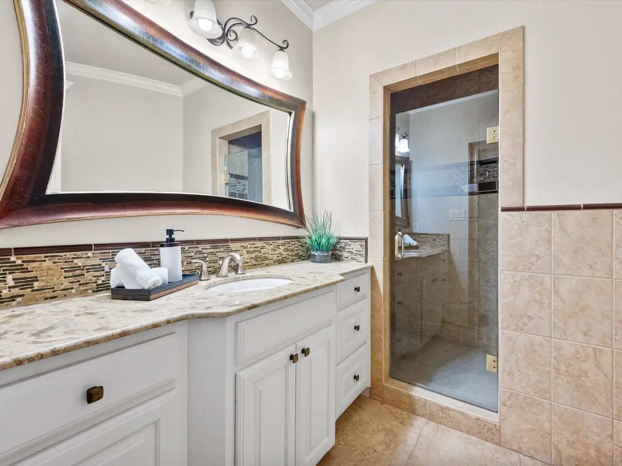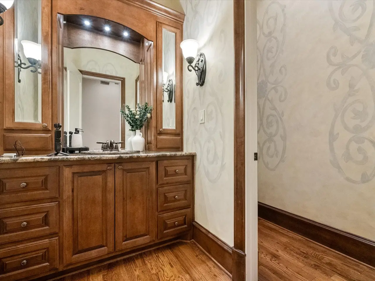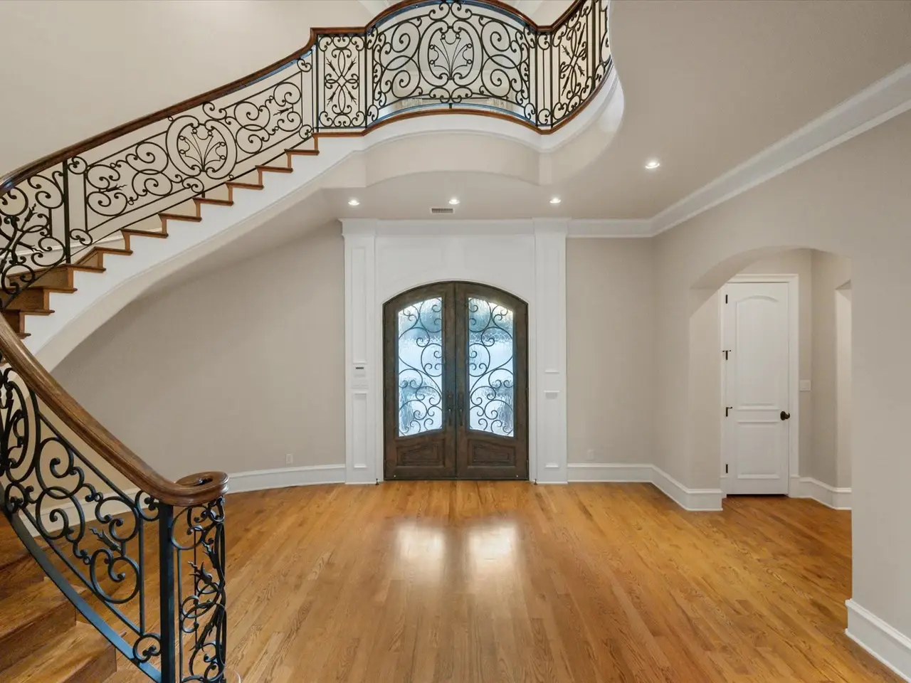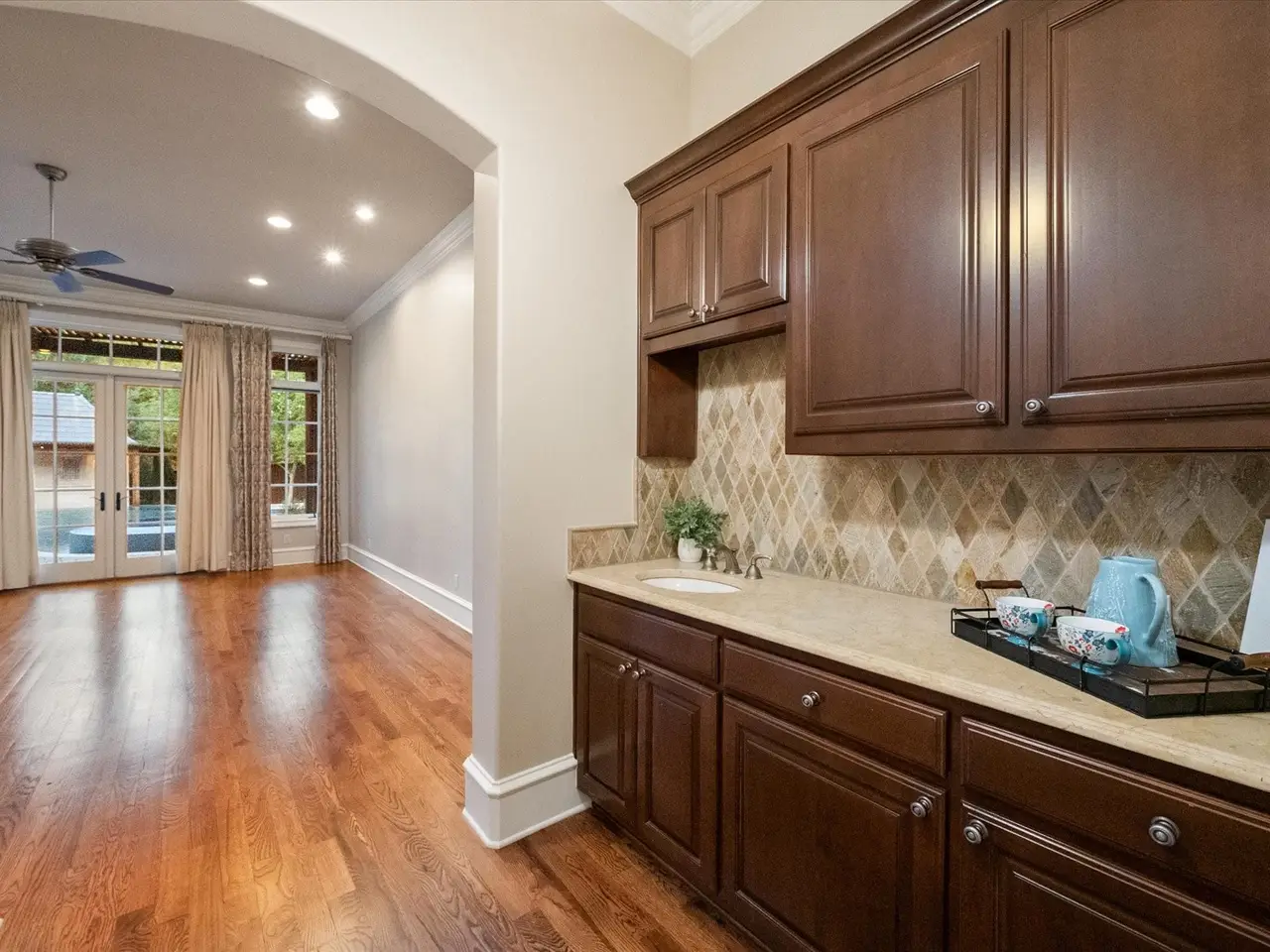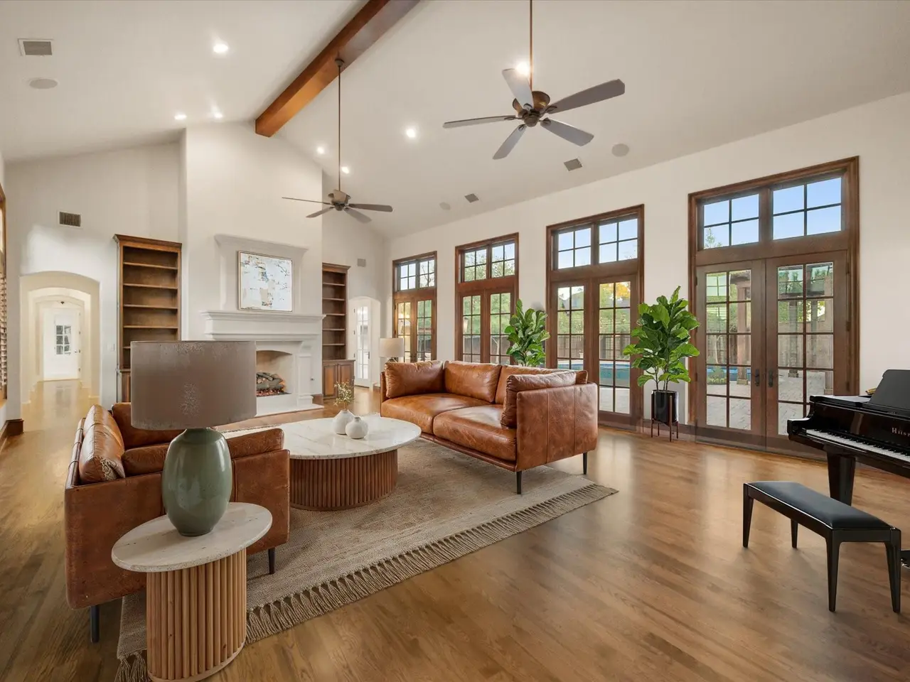 Nestled on nearly three-quarters of an acre in Mansfield's prestigious Strawberry Fields, this stunning estate spans an impressive 8,585 square feet. It features 5 bedrooms, 7 full baths, and 2 half baths, showcasing unparalleled luxury and thoughtful design. As you step inside, you're greeted by an elegant and grand ambiance. The home offers two master suites, each serving as a private retreat. The downstairs master suite includes French doors that open to the pool area for seamless indoor-outdoor living. It also features a coffee bar, dual closets, dual sinks, a walk-in shower, and a luxurious jetted tub. Upstairs, the second master suite boasts a spectacular bathroom and breathtaking views of the outdoor spaces. This estate includes two versatile offices, one equipped with a fireplace and a tornado shelter, and the other with built-ins and a full bath, offering the potential to serve as a sixth bedroom. Throughout the home, the exquisite finishes and meticulous craftsmanship elevate every corner. The kitchen is a chef's dream, equipped with a 5-burner gas cooktop, a new built-in refrigerator, microwave, dishwasher, and an expansive walk-in pantry. The living area is designed for both comfort and entertainment, with large glass doors that seamlessly merge indoor and outdoor spaces. The outdoor area is a true paradise, perfect for entertaining or relaxing. It includes a custom negative-edge pool with fountain features, a tiled spa, an in-pool granite table with seating, and a spacious sun deck. The cabana and two patios, each with a fireplaceone also equipped with an outdoor kitchenenhance the space's versatility and charm. Other amenities include an elevator, a game room, updated HVAC units, fresh paint, exterior coach lights, and a new custom Davinci RoofScape roof. The estate offers ample parking with a 3-car garage featuring a fully floored attic and a separate 1-car garage with HVAC. The gated driveway provides added security and plenty of parking space.