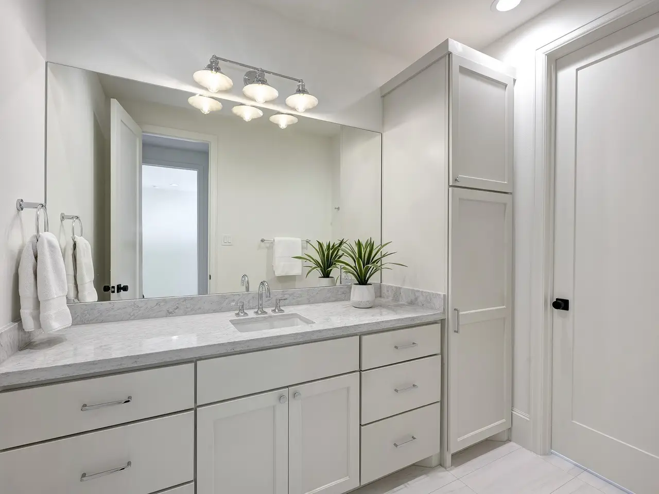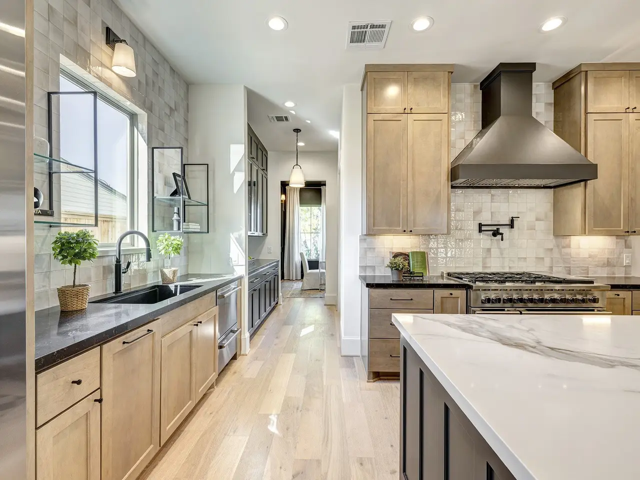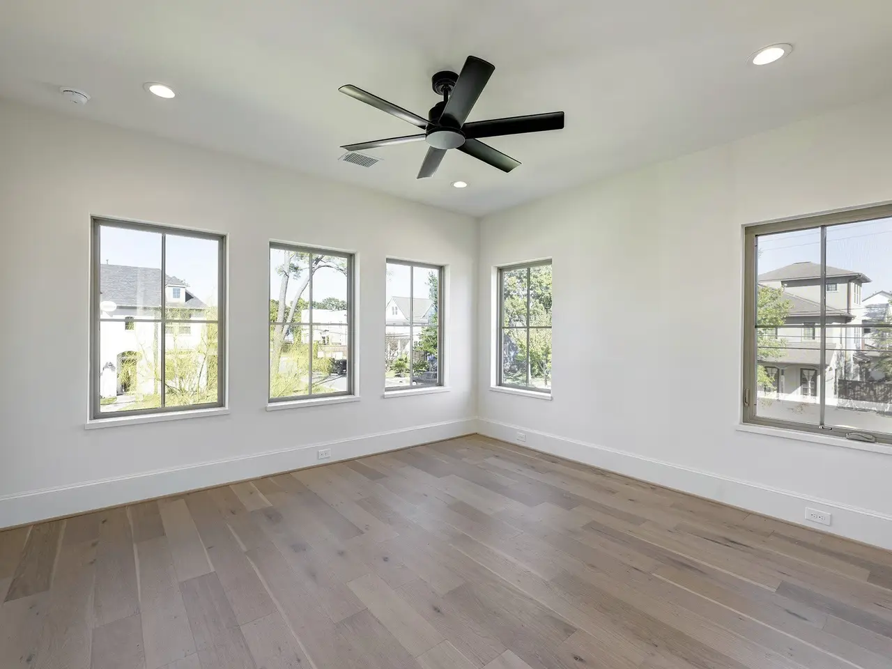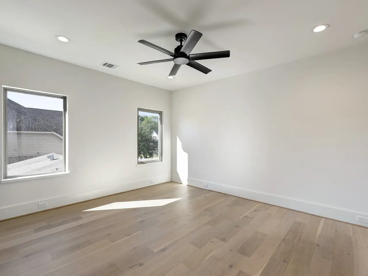 Recent construction in Oak Forest by prestigious Rob Ryan Custom Homes (2024 HCAD). Gorgeous 4-5 bedroom, 4 bathroom home with generous, open floor plan and large, corner lot. Beautiful white oak wood floors, natural light filled rooms and elegant designer finishes throughout. Flexible floor plan with 1st floor office or 5th bedroom guest suite. Chef’s kitchen complete with 48” Fisher & Paykel gas range, quartz countertops & custom cabinetry. Second floor offers a second living space or family room and 4 bedrooms including the luxurious primary suite with dream closet. Giant, fully fenced backyard with room for a pool and gated private driveway. All info per Seller.