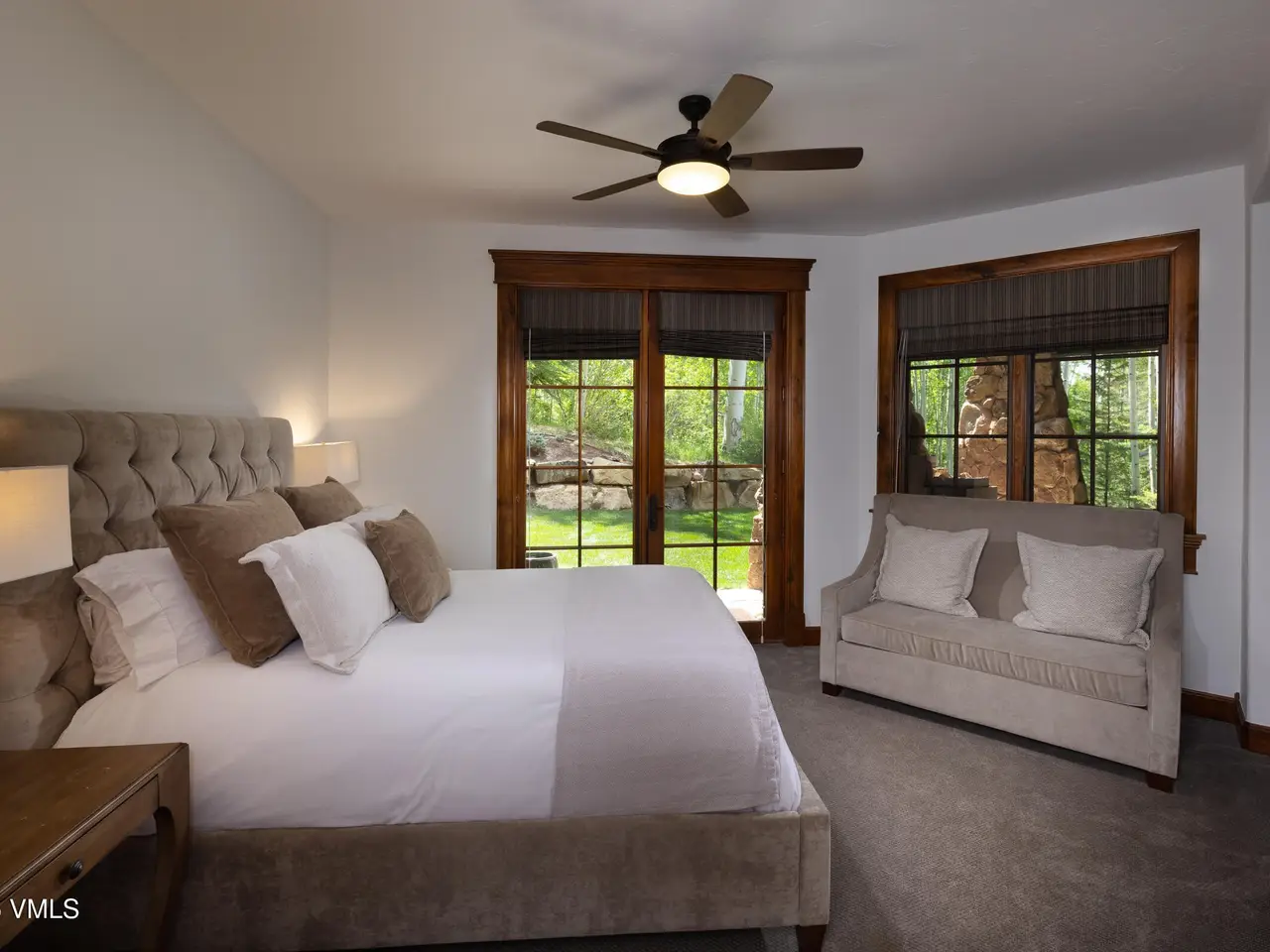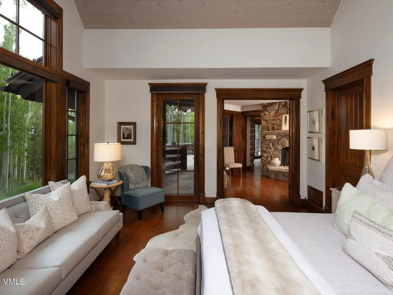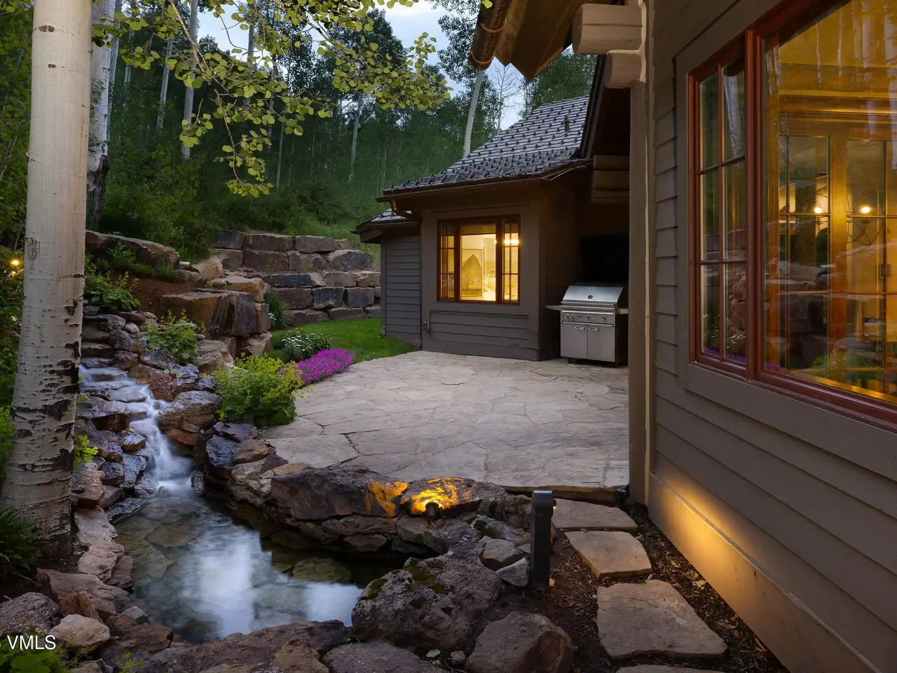 This beautifully appointed single-family home in the exclusive gated community of Mountain Star is truly a mountain retreat. Nestled in a private setting, directly adjacent to the USFS, this log home features stunning landscaping complete with a double water feature, creating a serene and inviting atmosphere. The interior welcomes you with an expansive open floor plan, filtered mountain views, and rustic elements like vaulted ceilings with log beams and a stone wood burning fireplace. The cozy dining room area is perfect for intimate meals, while the adjacent kitchen is a chef's dream, equipped with a Viking professional stove, granite countertops, an island for prepping meals, bar seating for entertaining, a charming breakfast nook, all set on beautiful hardwood flooring. The space opens to a deck surrounded by aspens, featuring outdoor furniture, a gas grill, and a built-in TV. The main level includes a private office with a fireplace, leading to the primary bedroom with deck access, a walk-in closet, and a luxurious bath with a soaking tub and steam shower. Upstairs, two large bedrooms with ensuite bathrooms offer comfort; one with custom bunk beds and bookshelves, the other with a daybed and spacious bath. The lower-level of the home is designed for entertainment; it includes a large family room with a natural stone gas fireplace, wine closet, pool table, and a built-in kitchenette with custom cabinetry and shelving. This level provides direct access to the grassy yard and patio from the fitness/gym room where a large hot tub and an outdoor gas fireplace create a tranquil retreat amidst the woods. Additionally, the lower-level houses two guest bedrooms that share a full bathroom. The home also features a two-car garage with custom storage and a partially heated driveway for added convenience; DaVinci roof. This beautiful residence, minutes from the main resorts, is being sold furnished.
