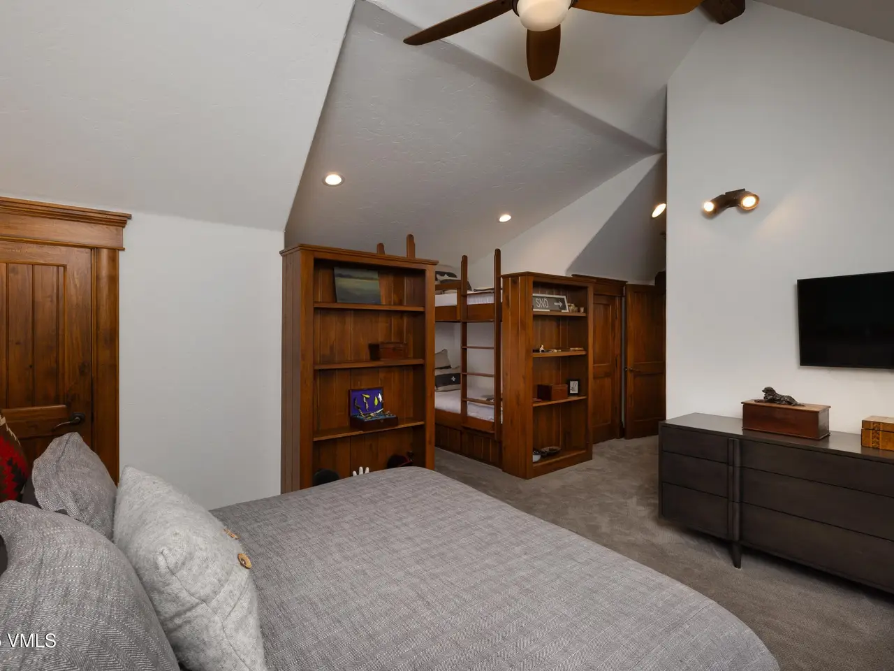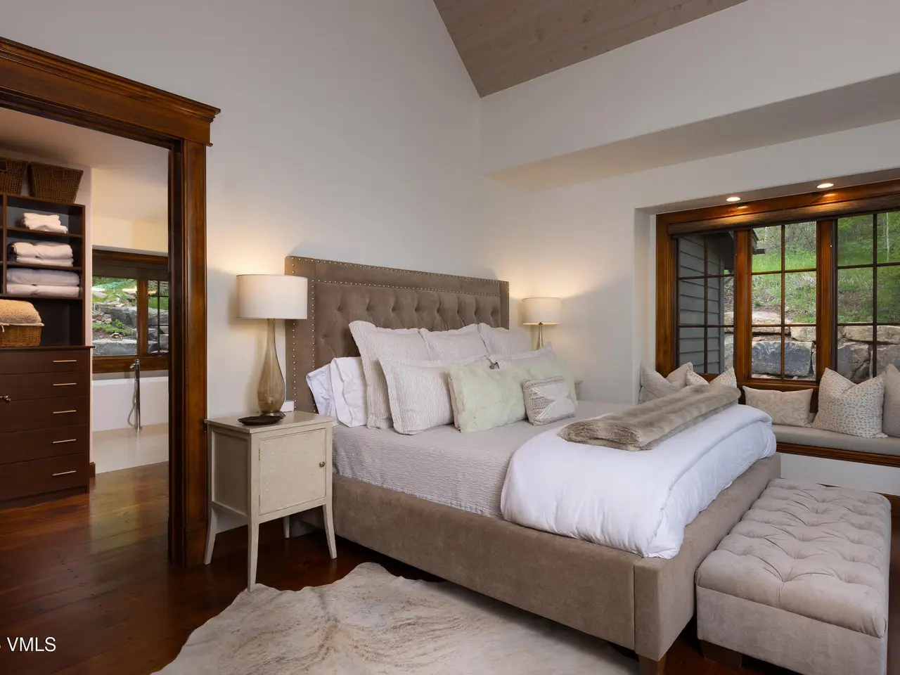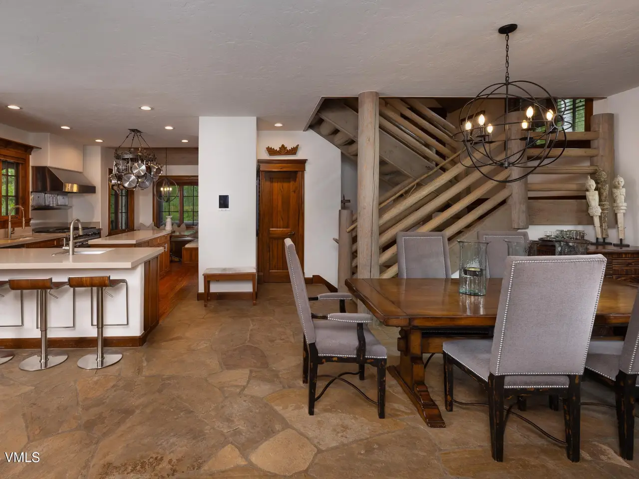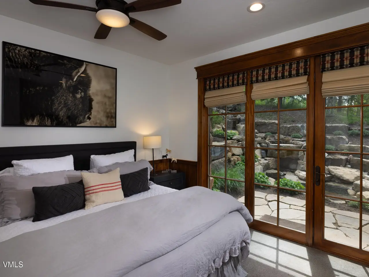 This beautifully appointed single-family home in the exclusive gated community of Mountain Star is truly a mountain retreat. Nestled in a private setting, directly adjacent to the USFS, this log home features stunning landscaping complete with a double water feature, creating a serene and inviting atmosphere. The interior welcomes you with an expansive open floor plan, filtered mountain views, and rustic elements like vaulted ceilings with log beams and a stone wood burning fireplace. The cozy dining room area is perfect for intimate meals, while the adjacent kitchen is a chef's dream, equipped with a Viking professional stove, granite countertops, an island for prepping meals, bar seating for entertaining, a charming breakfast nook, all set on beautiful hardwood flooring. The space opens to a deck surrounded by aspens, featuring outdoor furniture, a gas grill, and a built-in TV. The main level includes a private office with a fireplace, leading to the primary bedroom with deck access, a walk-in closet, and a luxurious bath with a soaking tub and steam shower. Upstairs, two large bedrooms with ensuite bathrooms offer comfort; one with custom bunk beds and bookshelves, the other with a daybed and spacious bath. The lower-level of the home is designed for entertainment; it includes a large family room with a natural stone gas fireplace, wine closet, pool table, and a built-in kitchenette with custom cabinetry and shelving. This level provides direct access to the grassy yard and patio from the fitness/gym room where a large hot tub and an outdoor gas fireplace create a tranquil retreat amidst the woods. Additionally, the lower-level houses two guest bedrooms that share a full bathroom. The home also features a two-car garage with custom storage and a partially heated driveway for added convenience; DaVinci roof. This beautiful residence, minutes from the main resorts, is being sold furnished.
