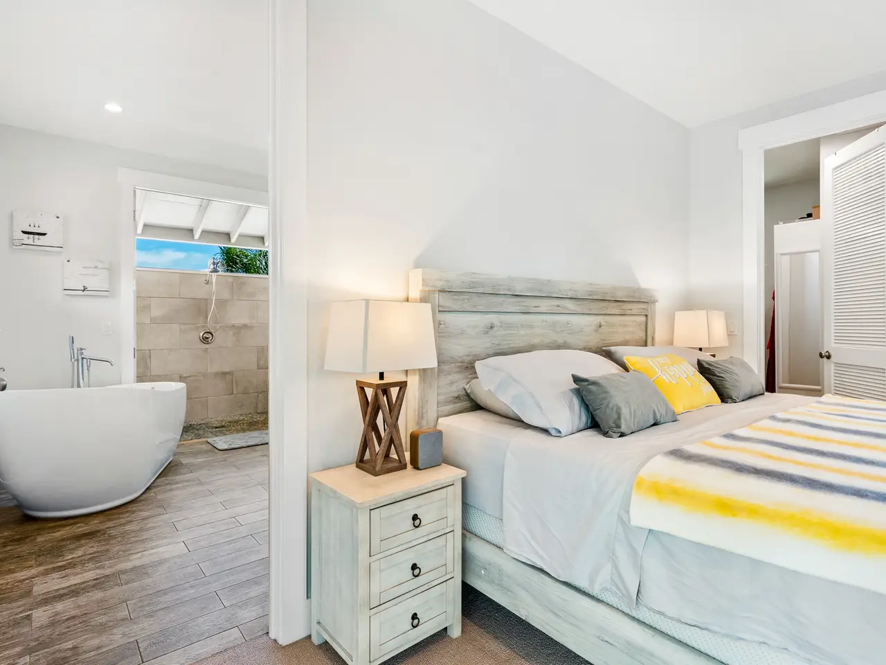 It’s a Wonderful World in Poipu On Kaua’i’s sun-drenched South Shore, just moments from world-renowned Poipu Beach, a rare offering awaits — not just a home, but a way of life. This beautifully maintained, like-new 3 bed / 3.5 bath, 1,865 sq ft residence invites effortless indoor-outdoor living. Nestled in lush tropical foliage, it welcomes you with a feeling of calm, comfort, and space to breathe. Step inside and you’ll feel it — the stillness, the soft light, and the natural flow designed for ease and enjoyment. Soaring 9' ceilings and 8' doors elevate the experience, while every room opens to the breeze — soft tradewinds whispering through open, inviting spaces. In the private primary suite, life turns lyrical — complete with a luxurious outdoor shower for starlit evenings and moonlit reflections. Routine becomes ritual. Fully furnished and thoughtfully equipped: split A/C systems, surround sound, in-wall speakers, and an 85” video screen. Energy-smart with 8.8 KW solar panels, 12 KW inverter, and 42 KW battery system. Yard irrigation included via Poipu Beach Estates. This home qualifies for vacation rental income within the coveted Visitor Destination Area (VDA). A fully permitted plan set for an 800 sq ft ADU is available — ideal for a guest house, studio, or second residence. Whether for full-time living, vacation, or investment, this home meets you with possibility. This is not just a home — it’s a lifestyle. A sanctuary. An investment in joy. Welcome to your next chapter in Poipu.