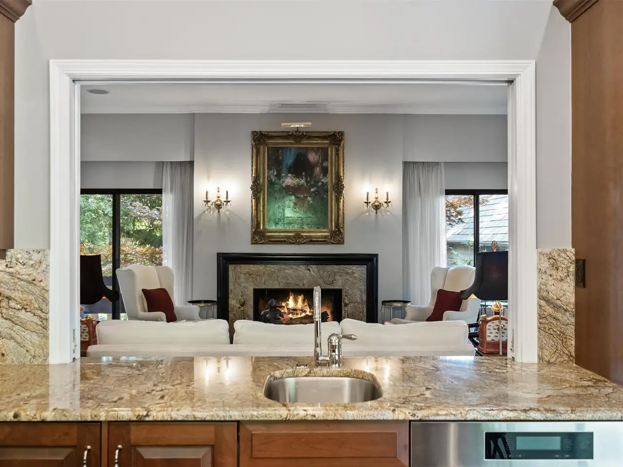 • Onyx fireplace in den