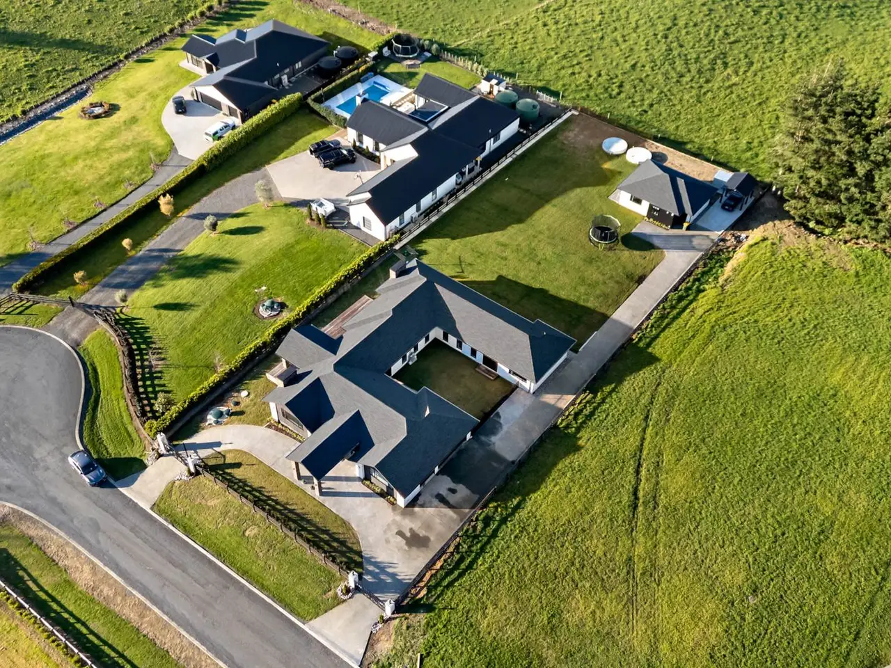 EXTENDED FAMILY, GUESTS OR RENTAL INCOME OPTION Two sets of electric gates and a drive-through portico herald arrival at this excellently designed, recently completed approx 355 square metre (over framing) residence and its secondary approx 65 square metre (over framing) 2 bedroom self-contained unit at the end of the continued concrete driveway. Residing on 2605 square metres with a desirable north-facing aspect, this single level, solid brick with shingle roof home, designed by HQ Designs, was constructed by Mika Builders Limited completed in 2025 (CCC date).Boasting 2.7 ceilings, raked in the expansive open plan living area, 2.4m doors, ducted air conditioning and ceiling fans, fibre optic internet, alarm and camera systems, sensor lighting in the hall and a smart vent system are all included here. Impressive double doors open to a welcoming foyer with resin chandelier and entry into the formal lounge and open plan family living. Both these areas spill out to separate decks and gardens via sliding and stacker doors. An abundance of windows floods the living area with light while a gas fire adds a cosy ambience and comfort. The adjoining dining room flows out to elegant covered outdoor entertaining and far-reaching views from the fabulous Kwila deck with Schist stone pillars. Sleek and shiny, the adjacent show-stopping kitchen demands a standing ovation with exquisite stone benchtops and matching exposed quartz splashback, stone sink, Blum cabinetry, Hansgrohe tapware, Fisher & Paykel 900mm stove with gas burners and butler’s pantry which cleverly incorporates induction hob and adjoining the laundry and opens out to a drying area. Off the hall on the way to the bedrooms, a media room is a welcome addition and the perfect place to relax and unwind. Complete with flame effect electric fireplace and sliding stacker doors to outdoors, the master bedroom boasts walk-in wardrobe, fully tiled double vanity ensuite with bath and separate shower with rain head. Bedrooms two and three both have built-in robes and are joined via a common study nook. They share a fully tiled bathroom. Alongside, the fourth bedroom features walk-in robe and its own fully tiled ensuite with rain head shower. The hallway incorporates generous storage provision. Accessed off the foyer, the multi-functional triple lock up garage has marine carpet, loft storage and separate work from home office space. Outdoors there’s flat lawn area – great play space for kids and plenty of room for the vegie garden and whatever else. Currently attracting $600 of rental income or ideal for extended family living, the ancillary unit with heat pump and HRV, 2.7 metre ceilings and separate power meter, comprises an open plan kitchen with induction cooktop, engineered stone bench and waterfall edge, an adjoining living and dining area, two bedrooms with built-in robes, a bathroom, and lovely rural views. This home is separate and spacious. Conveniently located less than 500 metres from Karaka Primary School and in close proximity to the motorway on-ramp and community services, this home effortlessly combines ultra-stylish family living with luxurious comfort and convenience. Inspection is sure to impress! Near new home completed in 2025 (CCC date)Stunning approx 355m2 (over framing) residence. Second approx 65m2 2 bedroom unit (over framing)2605m2 property. Single level home with north-facing aspect2 sets of entry gates & portico. Split driveway to ancillary unit. Impressive 2.7m ceilings, 2.4m tall doors. Sensor hall lighting. Ducted air conditioning + ceiling fans. Fibre optic internet. Alarm & camera systems. Smart vent system. Abundant storage provision. Feature lighting. Imposing double door entry to tiled foyer with resin chandelier. Formal lounge, sliding stacker doors to private deck. Media room/rumpus. Sunlit open-plan family living/dining. Sliding stackers to north deck. Scenic large covered Kwila decked. Elegant entertaining & leisure. Breathtaking large kitchen. State of the Art design & equipment+ matching butler’s pantry incorporating laundry. Outdoor access. Chic master bedroom, deluxe ensuite, walk-in robe, garden access. Bedrooms 2 & 3 built-in robes, shared study area & tiled bathroom. Bedroom 4 with walk-in robe & fully tiled ensuite. Linen presses. Triple lock-up garage. Marine carpet. Loft storage. Home office space. Ancillary unit with separate power meter. HRV & heat pump. Open plan kitchen, living & dining area. 2 bedrooms + built-in robes. Expansive grassy play area. 2 x 25,000 concrete tanks & filtration. Less than 500m to Karaka Primary School & ACG Strathallan bus routes8.5kms to Karaka shops & community facilities. 10kms to Pukekohe Township5.5kms to north & south motorway on-ramp. 33kms to Auckland Airport Auction: 177 King Street, Pukekohe (Branch Office) on Thursday 11 September 2025 at 2:00PM (unless sold prior)