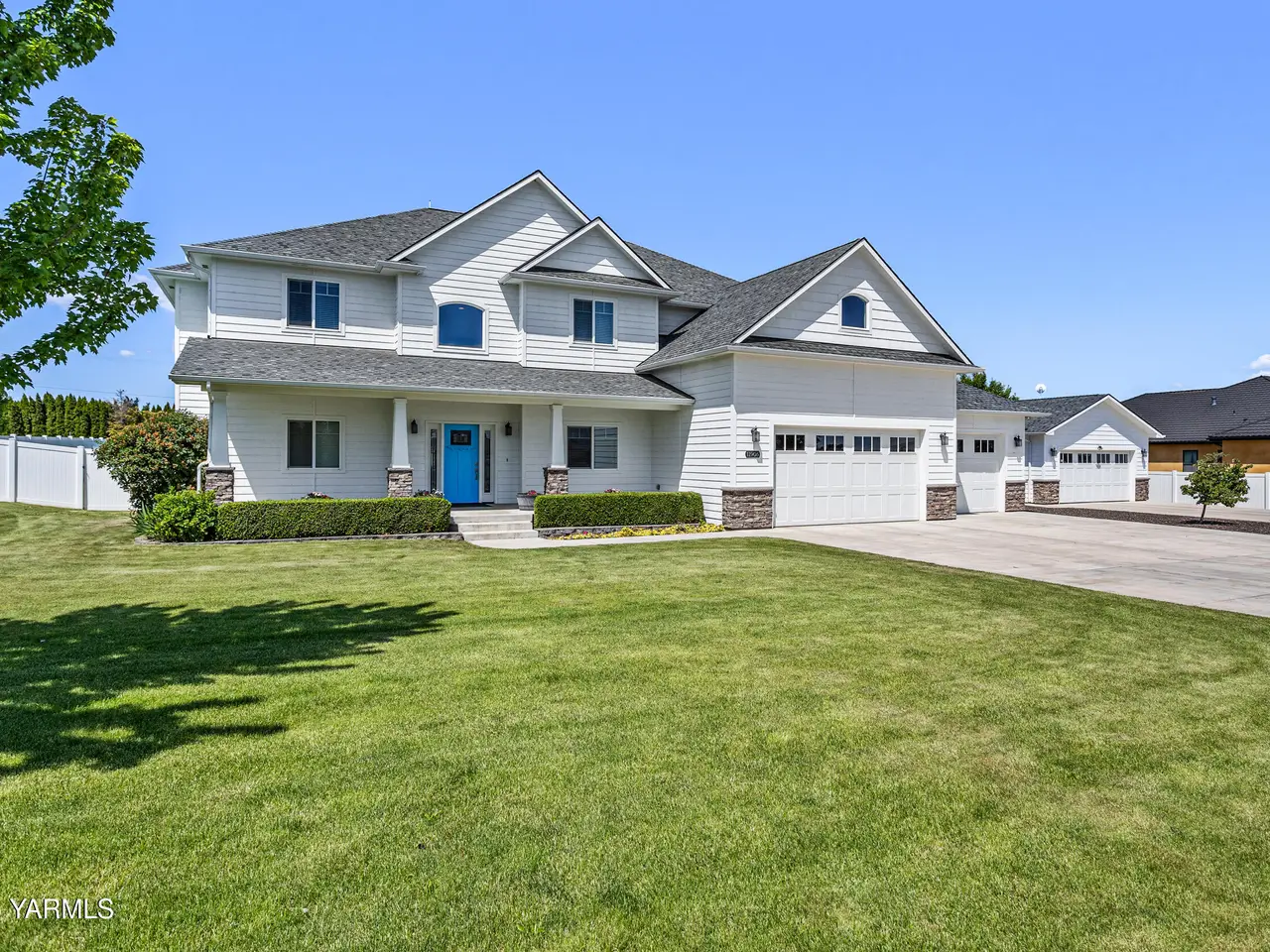Modern families need flexible, multigenerational living options--and this custom-built home by Smith Construction in West Valley delivers. With 4028 sq. ft., 5 bedrooms, and 3.5 bathrooms, this spacious home is designed for comfort and functionality. A detached 864 sq. ft. ADU offers 1 bedrooms, 1.5 baths, an open kitchen/living area, and its own 2-car garage--perfect for an aging parent, adult child, or guest.The main house features a bright open living area with a gas fireplace and soaring 20-foot vaulted ceilings. Durable LVP flooring runs through common spaces, with carpeted bedrooms and tiled bathrooms. Granite countertops shine throughout. The kitchen boasts a new built-in microwave/oven, cooktop with second oven, center island, desk, and a Butler's Pantry.The oversized primary suite includes space for seating, heated tile floors, a jacuzzi tub, walk-in shower, and skylights. Upstairs, a private en-suite bedroom is ideal for guests. Additional highlights: central vacuum, media system, arched walls, and a 3-car garage with boat space. Enjoy Cascade Mountain views from the covered back porch. The fenced yard includes mature trees, a shed, timed irrigation, and gas BBQ hookup. Community Well and Yakima-Tieton Irrigation.