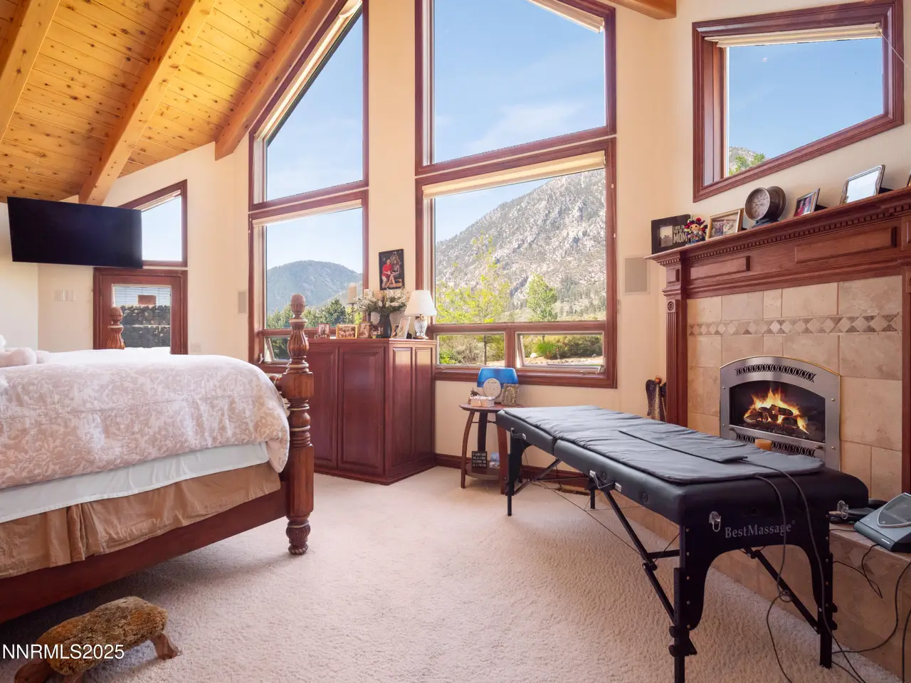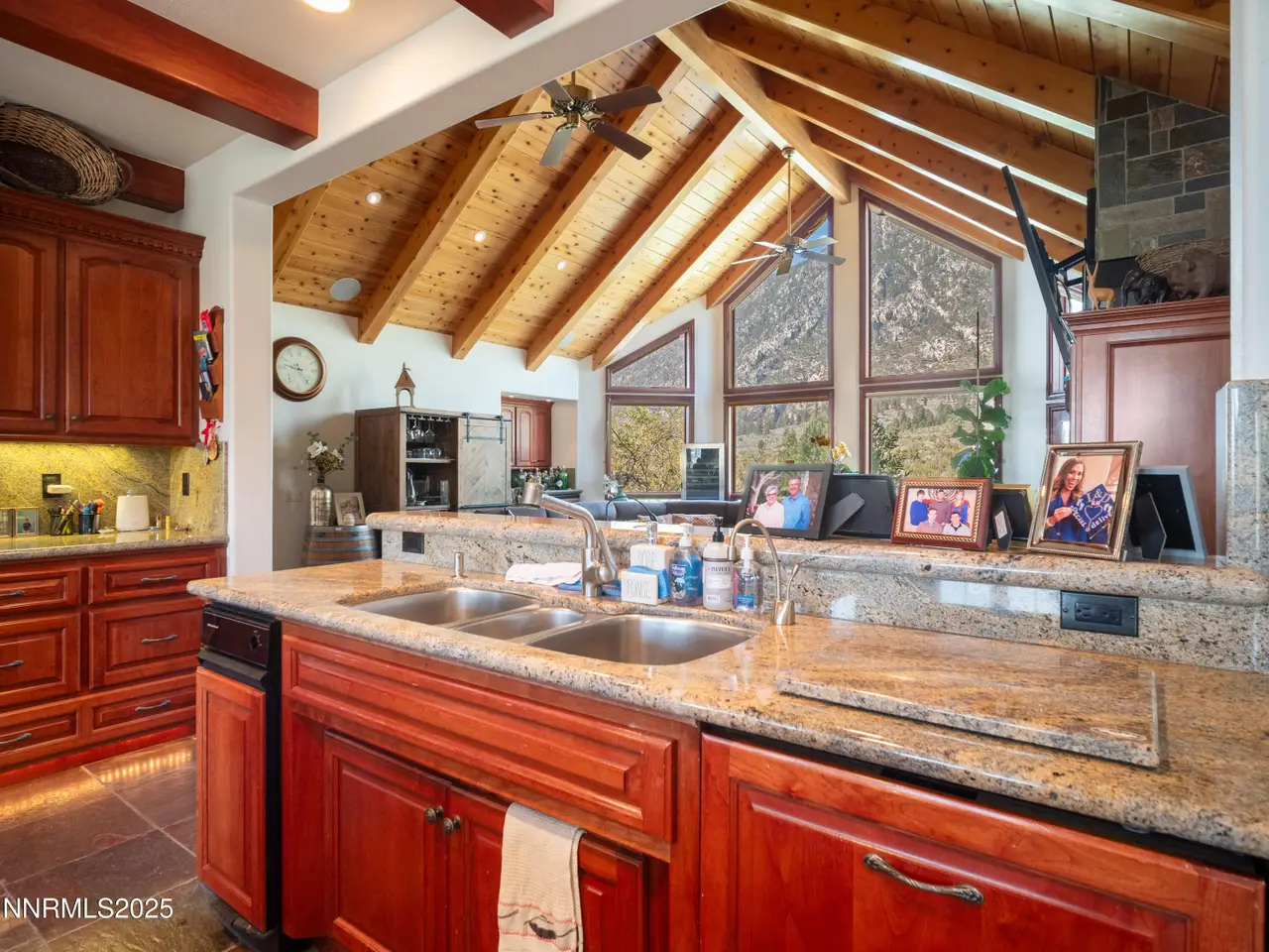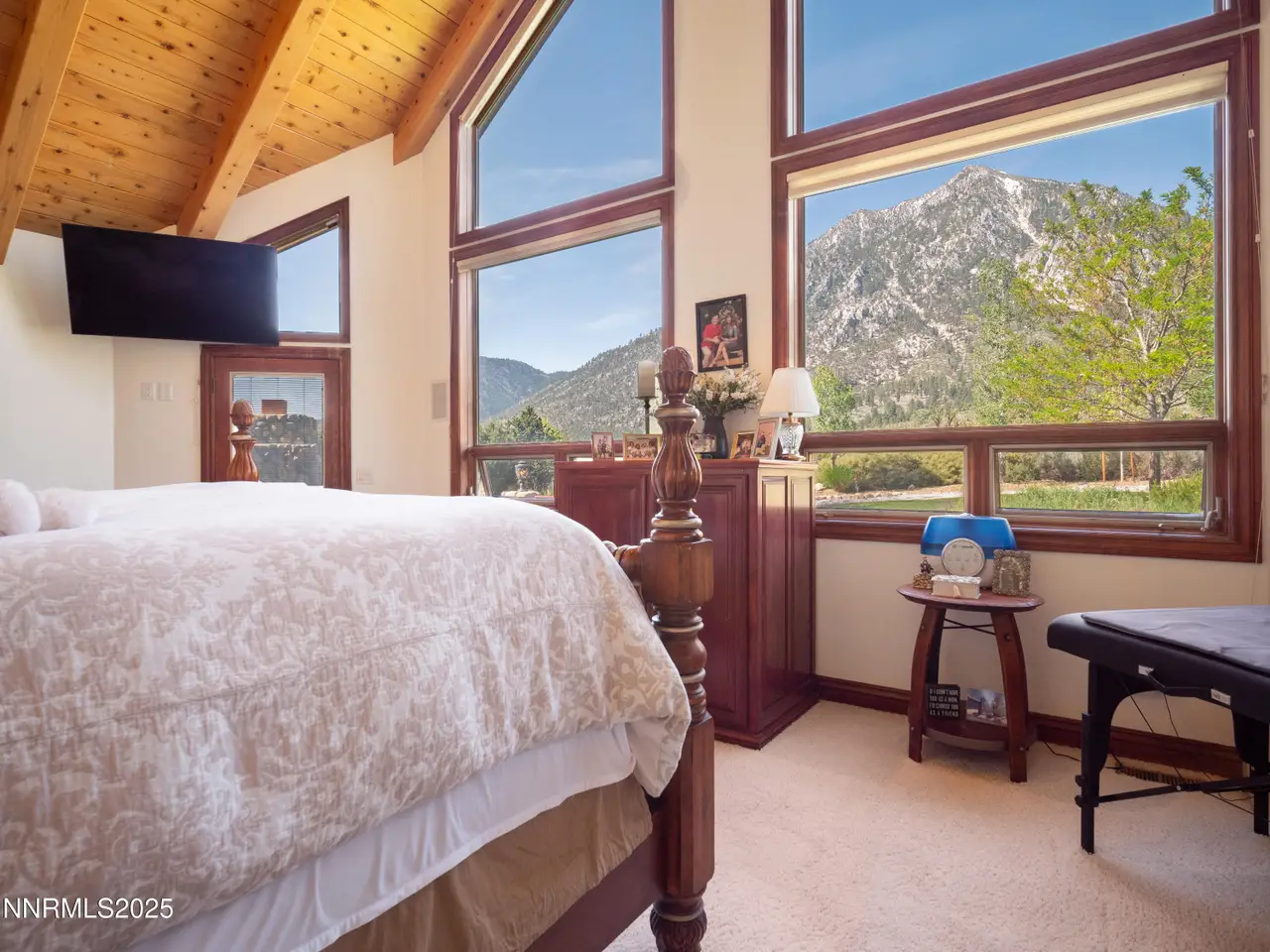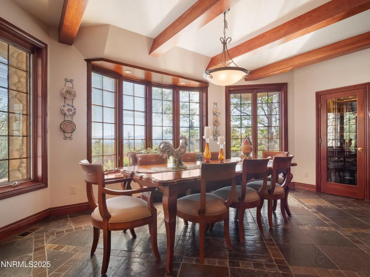 • Cedar tongue-and-groove cathedral ceilings with exposed beams