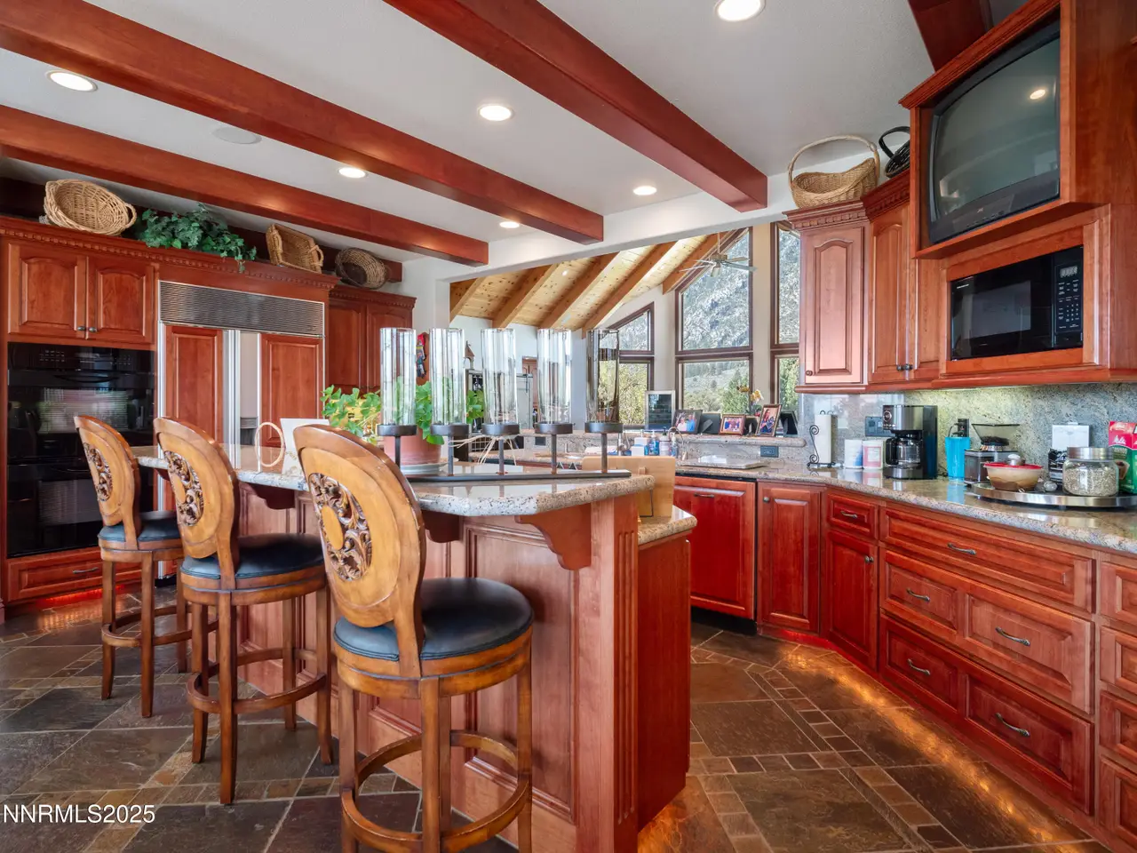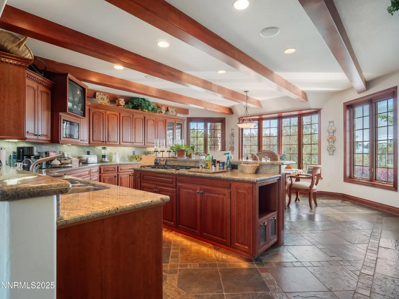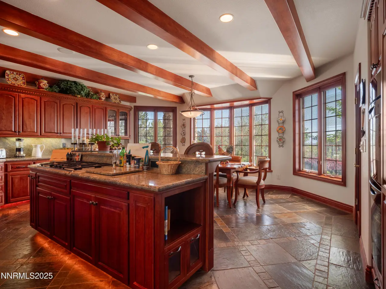 • Gourmet kitchen with custom cabinetry and granite slab countertops