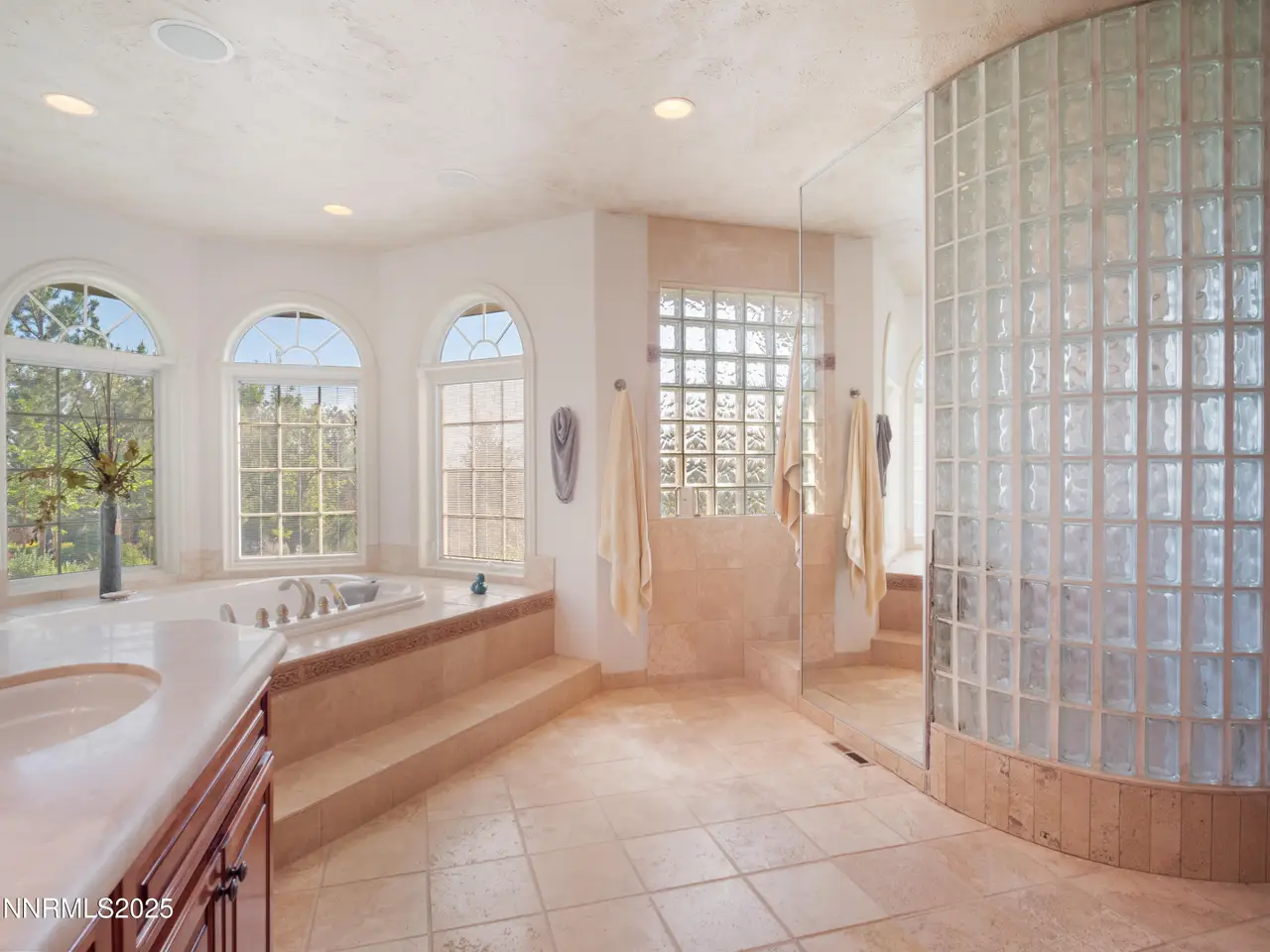 Custom estate nestled on two gated, private professionally-landscaped acres adjacent to dedicated open space with unobstructed panoramic views of Jobs Peak and the valley below. Thoughtfully designed personal home of a locally renowned custom home builder with no expense spared and no detail overlooked. This home is an architectural masterpiece with a split floorplan that seamlessly blends luxury, privacy, comfort, and smart technology featuring exquisite materials such as travertine, slate, marble, cherry and mahogany throughout. Luxury Pella low-E windows with integrated blinds, solid wood doors and trim, soaring vaulted ceilings and five fireplaces throughout the home - four gas fireplaces inside and a commanding wood-burning fireplace on the expansive rear patio. The gourmet Kitchen boasts custom cherry cabinetry, slate flooring, granite slab countertops, and top-of-the-line appliances including Sub-Zero refrigerator, Bosch dishwasher, and Dacor gas cooktop. It also features double ovens, built-in microwave, trash compactor, large kitchen island, walk-in pantry, and under-cabinet and toekick lighting. The luxurious great room is crowned by beautiful cedar tongue-and-groove cathedral ceilings with exposed beams, an Extraordinaire gas fireplaces with floor-to-ceiling slate hearth, a full wet bar, warm Brazilian cherry floors and breathtaking mountain views. The primary suite is a private sanctuary with vaulted cedar ceilings and beams, personal fireplace with travertine hearth and cherry mantle, spacious walk-in closet and a spa-like bathroom featuring heated travertine flooring, jetted two-person tub, skylit double-height ceilings, walk-in shower with 8 shower heads, double vanity with travertine slab countertops, and touchless toekick lighting. The office is perfect for remote work with custom mahogany built-in cabinetry, gas fireplace with granite hearth and solid wood and glass double entry doors. The roughly 1,300sf finished basement with half bath is perfect for a "man-cave" "she-shed" workshop, personal gym or private wine cellar. The meticulously maintained grounds offer luxurious outdoor living with a private rear paver patio with breathtaking views of Jobs Peak, a built-in Viking barbecue, wood-burning fireplace, 10,000+ sq/ft paver stone driveway, 24-ft lighted flagpole, full automatic irrigation system, lush lawn, mature trees, and walking trails. Additional features of the home include: whole-home Generac generator, 3-car oversized garage with brand new double acrylic painted floor (Aug 2024), 3 storage racks, Lift Master openers, and 2 EV charging stations, iPhone-controlled smart thermostat, integrated stereo system inside and out, Smart video-gated driveway entry, central vacuum, monitored security and smoke detection systems, Dual-zone high-efficiency gas furnaces (new in Feb 2024), two high-efficiency water heaters (new in Nov 2023), Dual-zone A/C, recirculating hot water, water softener, water softener, and new tile roof (Sept 2023)