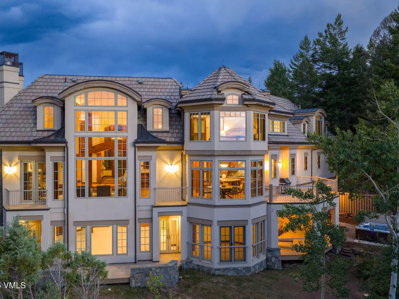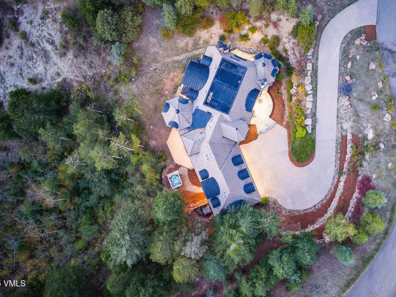 Discover this stunning home set on 2 acres, offering privacy and tranquility. The spacious interior features vaulted ceilings and large windows that provide breathtaking views. The main floor boasts a beautiful office, convenient for working from home, and a chef's dream kitchen complete with a butler's pantry with a double wall oven, ideal for entertaining. Step outside to a spacious deck off the kitchen, perfect for outdoor gatherings. Upstairs, you'll find two luxurious master suites, along with another home office and a versatile loft area. The lower level offers a large recreational room with a wet bar, ample storage closets, and a walk-out patio for relaxing or hosting guests. Additional highlights downstairs include three ensuite bedrooms with outdoor access and a relaxing hot tub, making this home an ideal mountain retreat. Cordillera Divide is a charming neighborhood. Homeowners appreciate the closer accessibility to the Valley that the Divide's location provides. They enjoy the walkability and the easy access to Granada Glen fishing pond and picnic area. Open to Cordillera property owners, the challenging Dave Pelz Short Course is located on the Divide. One of two signature Pelz designs in the world, it is created to improve your short game. Several popular hiking trails are located in the Divide, including Mirador and Camino del Norte. The Divide's arid mountain landscape with pinon and sage add to the picturesque surroundings.