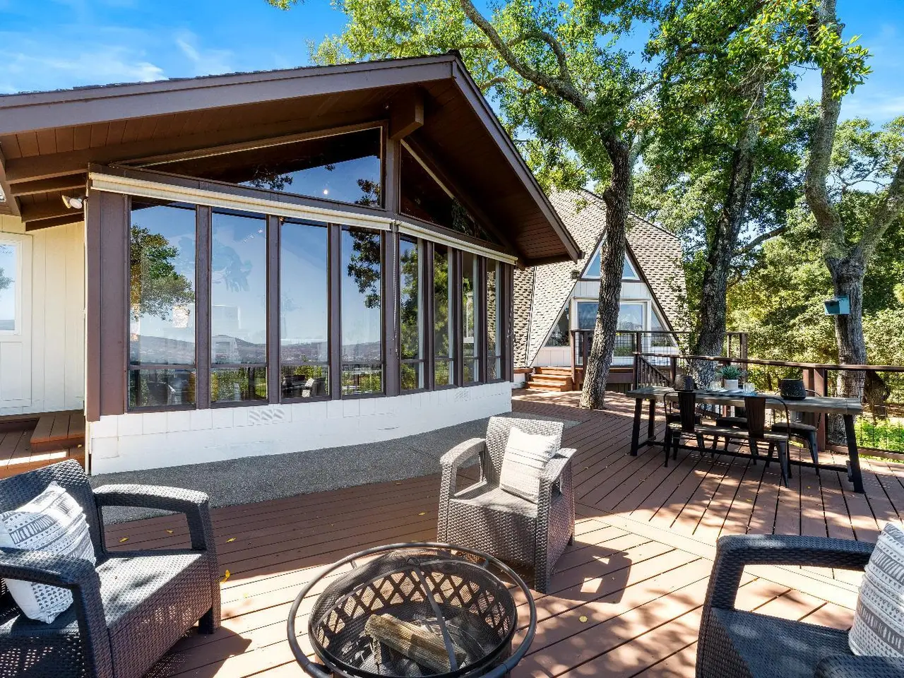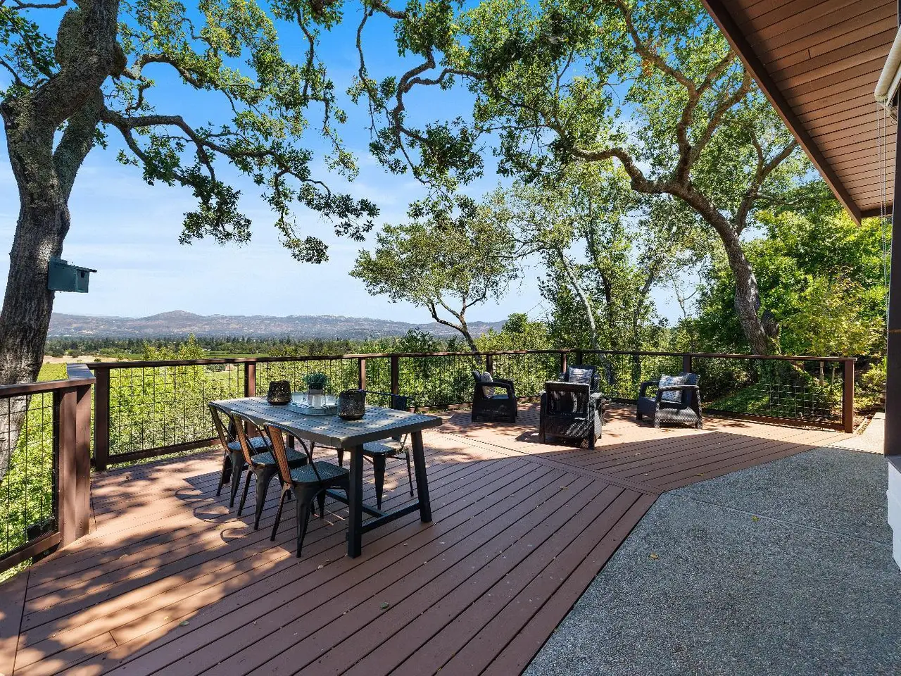 Nestled on a tranquil private street, just a minute outside city limits, this three bedroom, four bathroom home spans 3,000 square feet across three levels, offering the perfect blend of intimate ambiance and serenity. Enjoy captivating views of the Oak Knoll AVA vineyards from the expansive, updated wrap-around deck, a true centerpiece for indoor-outdoor living. Inside, discover vaulted ceilings, spacious living areas, and a unique additional space that includes an upper-level loft. With redwood and oak trees enveloping the property, you can unwind peacefully under stars as you take in the view. The detached two-level garage and city water adds practicality, while the four updated bathrooms promise convenience and style. 3051 Redwood Road is an incredible option for those seeking a beautiful and private lifestyle in Napa County. Don't miss your chance!