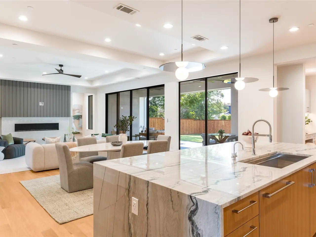 Built by DGM Builders, a family-owned Dallas firm led by second-generation general contractor Dani Golan, this stunning new construction residence is where architectural precision meets everyday comfort. Spanning over 6,700 square feet, this modern home is thoughtfully designed for both elegance and livability. The floor plan features 6 bedrooms, 6 full baths, and 2 powder baths, including the primary suite as well as the guest suite on the main level. The primary suite offers a private retreat with a sitting area, coffee bar with beverage refrigerator, large walk-in wardrobe, and spa-like bath with soaking tub and dual vanities. At the heart of the home is the chef's kitchen, complete with an oversized island, Sub-Zero and Wolf appliances, and a large walk-in pantry. The formal dining room is great for hosting dinner parties, adjacent to the butler's pantry with sink, Sub-Zero beverage refrigerator, and ice maker. A nearby study, two powder baths, a well-appointed laundry room with extra storage, dedicated playroom, desk, and mud area, all designed for functional, stylish living complete the main level. Upstairs, you'll find four additional bedrooms, each with its own ensuite bath, alongside a game room with pocket doors, a cozy kids study, and a second laundry room for added convenience. Additional highlights include a three-car garage with tandem bay, dual tankless systems, generous storage, and designer-ready finishes. The outdoor living area with built-in kitchen extends the home's flow for year-round entertaining. Fireplace, phantom screens, and heaters are also highlighted in this outdoor space. Located in a desirable Dallas neighborhood and built with DGMs legacy of quality and integrity, this home offers rare scale, thoughtful design, and luxurious flexibility for modern living.