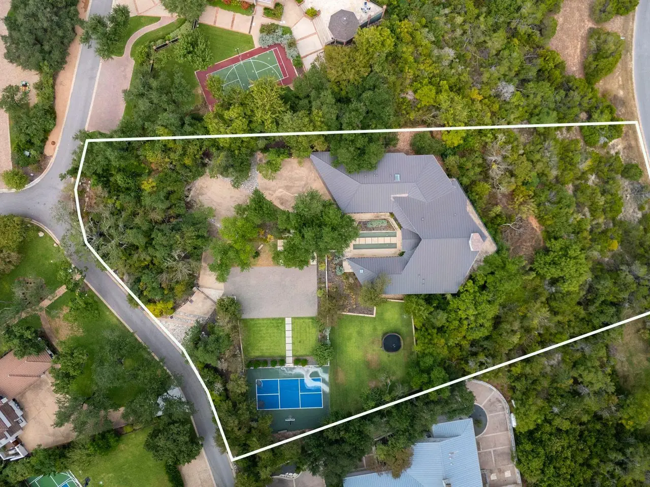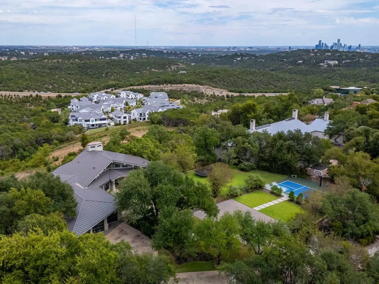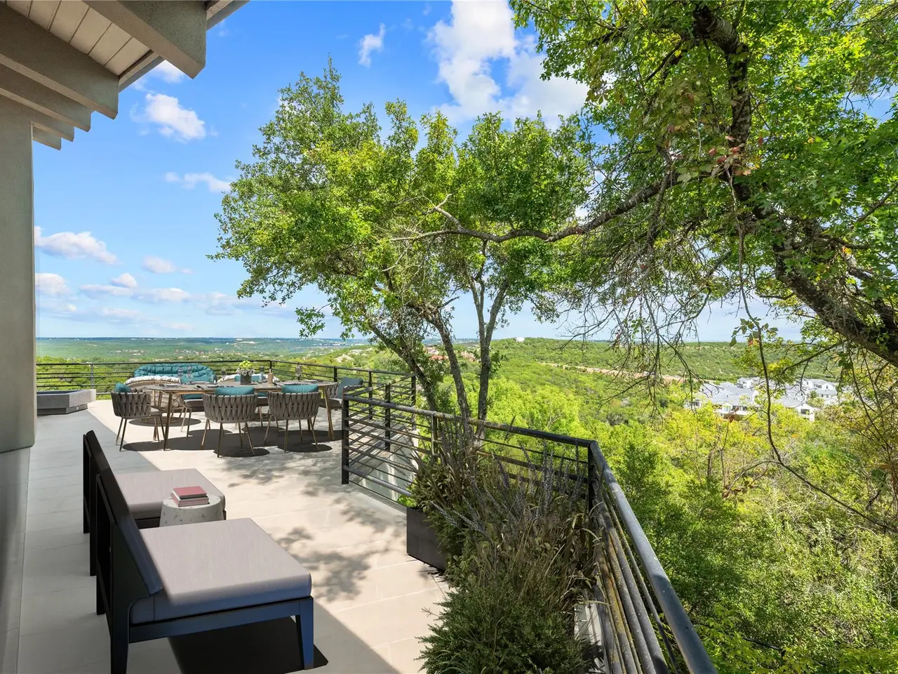 Situated in Rob Roy, one of Westlake's most coveted gated communities, 10 Hedge Lane boasts exceptional views, expansive terraces, and a 3-car garage. The single-level residence features 4 bedrooms and 4.5 bathrooms on a premier lot with a lush green yard and sports court. Glide over floating stones as you approach the striking glass doors that welcome you inside the residence. The interiors instantly impress with a vaulted ceiling, fireplace, and incredible panoramic views of the Hill Country and the Austin skyline in the distance. Natural light pours into the living room through abundant windows and sliding glass doors to the terrace. The living room flows into the immaculate gourmet kitchen with ample cabinetry, stainless steel appliances, and a wet bar. Escape to the privacy of the primary suite that features French doors to the terrace and beautiful vistas. The spacious primary bathroom offers dual sinks, a soaking tub, a glass-enclosed shower, a vanity room, and a massive walk-in closet. 3 additional guest suites, each with en-suite baths, provide comfort and privacy for family and visitors. A powder room, mudroom, and laundry room complete the home. Living in Rob Roy offers the perfect blend of privacy, prestige, and convenience in one of Austin's most sought-after gated communities. Nestled in the scenic hills of West Austin, residents enjoy expansive homesites with breathtaking Hill Country views, all while being just minutes from downtown, Lake Austin, and top-rated Eanes ISD schools. With 24-hour security, a tranquil atmosphere, and proximity to premier shopping, dining, and entertainment at Barton Creek and Westlake, Rob Roy provides a rare opportunity to enjoy both serene living and the vibrancy of Austin life. Tax and assessed values are estimates for illustration purposes only. All figures should be independently verified. Some images are virtually staged for visualization and may not reflect the actual appearance or condition of the property.