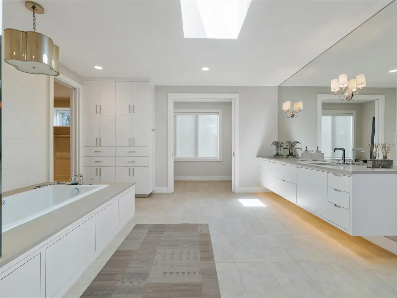• Soaking tub, glass-enclosed shower, and dual sinks