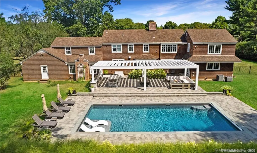 Rare offering on sought-after Tanner Marsh Road! This elegant home stuns from the street with its stone walls, circular driveway, and professionally landscaped grounds. Designed for entertaining, its rooms offer exceptional grace and flow. Three fireplaces, chef's kitchen with Viking appliances, first-floor guest suite with bath and private entrance - this home has it all! Master bedroom with tranquil sitting area, extravagant dressing room, and spa-like marble bath. Four more bedrooms, office, bath, and laundry upstairs. Then, step into the backyard to your own private oasis, an entertainer's dream. Heated in-ground saltwater pool surrounded by mature trees. Full outdoor kitchen with granite island, gas fire-pit, hot tub, and dining/lounge areas under new Azek pergola. Perfectly located near the scenic trails of East River Preserve and just minutes to I-95, the award-winning Guilford Green and Jacobs Beach, this rare gem is move-in ready and waiting to welcome you home.