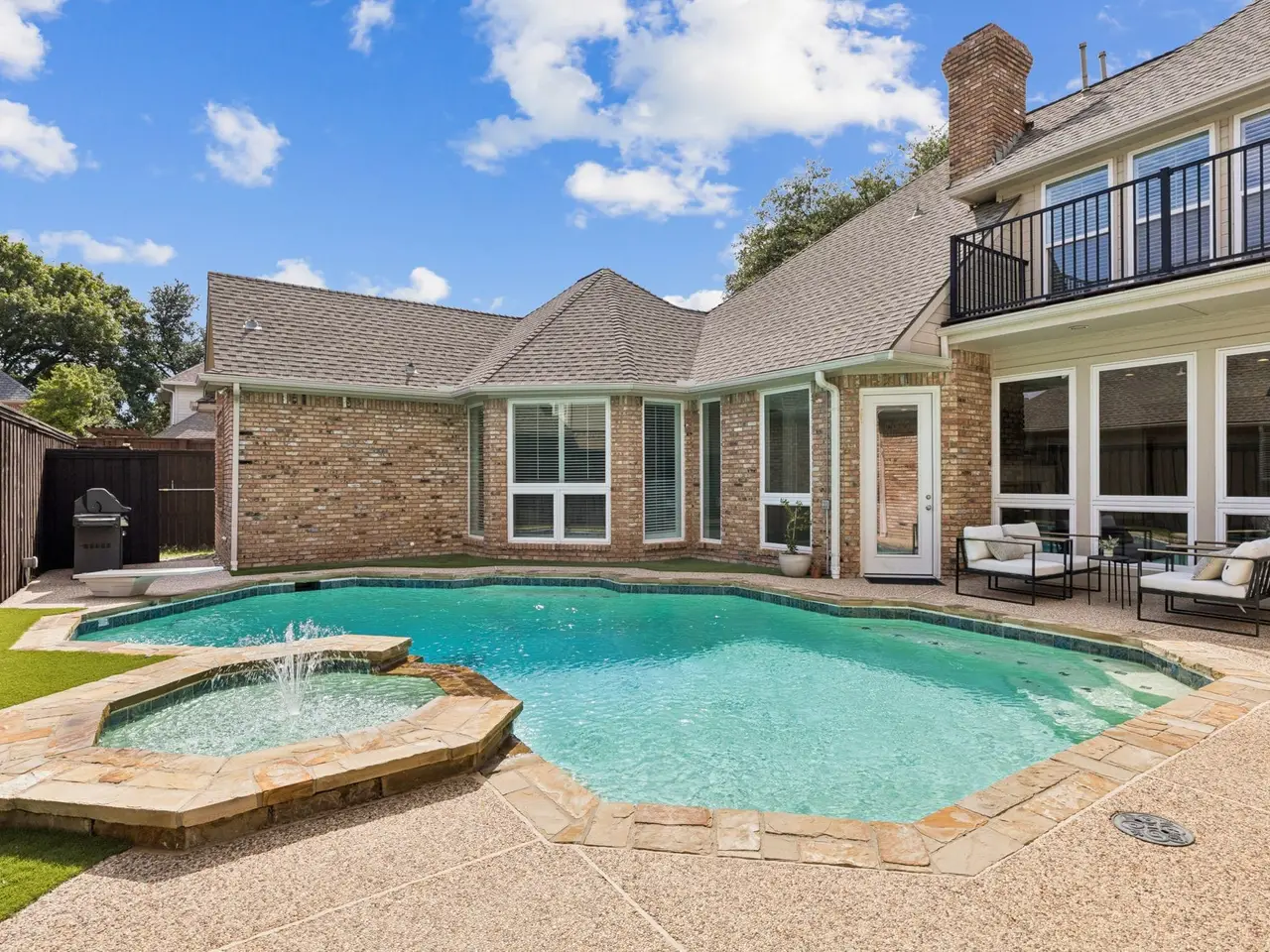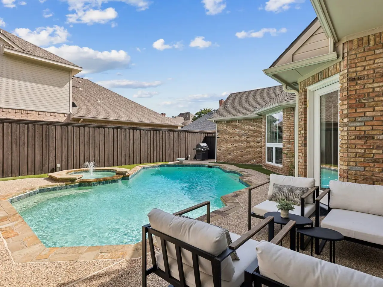 Nestled on a quiet, tree-lined street in sought-after Willow Bend West, this beautifully updated home combines modern design with timeless comfort in the heart of Plano ISDzoned to highly rated Centennial Elementary, Ponder Middle, and Plano West Senior High. The remodeled kitchen is a showpiece, featuring a waterfall quartz island with wood inlay, farmhouse sink, gas cooktop, double ovens, soft-close cabinetry, and stainless-steel KitchenAid appliances. Wide-plank wood floors extend throughout both levels, complementing an open and functional layout with four bedrooms, a private study, and a spacious game room. Enjoy the inviting backyard retreat with a diving pool surrounded by lush turf and a wood privacy fenceperfect for year-round entertaining. The updated wet bar offers quartz countertops, floating shelves, beverage drawers, and designer wallpaper. Additional highlights include plantation shutters, neutral interiors, and an epoxy-coated three-car garage. Both HVAC systems were replaced in 2023. Prime west Plano location just minutes from Legacy West, The Shops at Willow Bend, Trader Joes, Whole Foods, Equinox, and the Muehlenbeck Rec Center.