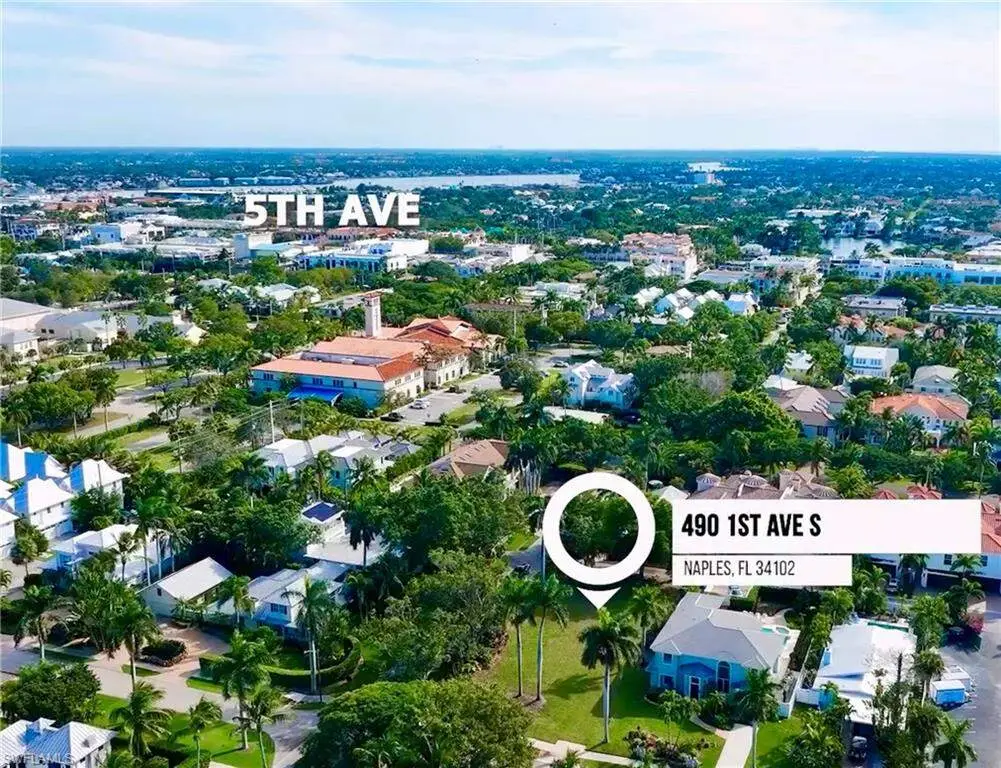 A rare opportunity in the heart of Old Naples. This premium .23-acre corner homesite sits at the sw corner of 1st Avenue South and 5th Street South, just 5 blocks from the beach and a short stroll to the world-class dining and boutique shopping of famed Fifth Avenue South. Located in sought after X500 flood plain, 490 1st Ave S offers long-term peace of mind, superior elevation, and build flexibility. No flood insurance required. Surrounded by mature banyan trees and lush palms, the property provides an inviting tropical landscape with excellent design potential. A private alley allows for rear-entry garage access, enhancing curb appeal while maximizing space for an impressive front facade and expansive outdoor living. Preliminary concept sketches by MHK Architecture illustrate a stunning 4,000+ sq ft custom home featuring 4 bedrooms, 4.5 baths, a private guest suite with elevator access, loft, additional laundry, spectacular pool, and oversized 2-car garage with alley access. Whether you envision timeless coastal architecture, West Indies charm, or a clean modern aesthetic, the design possibilities here are exceptional. Create your own piece of paradise in one of the most coveted walkable beach neighborhoods in Old Naples.