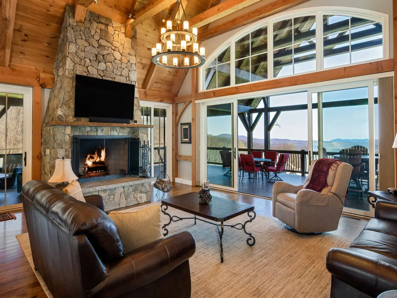 Rustic Luxury, Redefined: A Grand Highlands MasterpiecePerched atop over two acres of pristine mountaintop landscape, this 6,000+ sq. ft. post & beam residence is a rare work of art ? a home where timeless craftsmanship meets mountain grandeur. Constructed with Mill Creek Post & Beam's Eastern White Pine timbers, every beam and rafter exudes warmth, strength, and understated elegance, creating a home that is both welcoming and awe-inspiring.From sunrise over Bearwallow Mountain to sunset across Pinnacle Mountain, the long-range southern vistas stretch endlessly, unfolding over Hendersonville's celebrated apple country. Inside and out, the home invites you to savor every moment, whether it's curling up with a book and a cup of coffee, hosting lively gatherings with friends, or enjoying quiet, reflective sunsets with family.Designed for both grand entertaining and intimate living, the home features a private theatre, elevator, and oversized garage with carriage house. The expansive outdoor living areas ? anchored by a stone fireplace and seamless connection to the great room ? provide a stage for unforgettable evenings against a backdrop of infinite mountain panoramas.This is a residence crafted for a legacy, where every space reflects intention, luxury, and the natural beauty of the mountains. Rustic sophistication and mountain soul converge in spaces that flow effortlessly from indoors to outdoors, from lively gatherings to quiet retreats.Beyond the gates, Grand Highlands offers a mountain lifestyle like no other. Enjoy a 12,000 sq. ft. lodge featuring a sports pub, event space, game room, library, and craft studio, or gather outdoors on the terrace beside the community fire pit and garden. Hiking enthusiasts will appreciate the onsite trail system and nearby Bearwallow Mountain trailheads, making adventure as effortless as leisure.Centrally located between Hendersonville and Asheville, you are just 25 minutes from vibrant culture and entertainment and 25 minutes back to your peaceful mountaintop retreat. Here, every day balances serenity, excitement, and unparalleled mountain living.This isn't just a home ? it's a post & beam masterpiece, a canvas for memories, and a sanctuary for generations.Community Amenities: 12,000 sq. ft. Lodge, Sports Pub, Event Space, Game Room, Library, Craft Room, Expansive Outdoor Gathering Areas, Community Fire Pit, Community Garden, Onsite Trail System, Planned Activities / Events / Clubs. Walking distance to public Bearwallow Mountain trailheads.