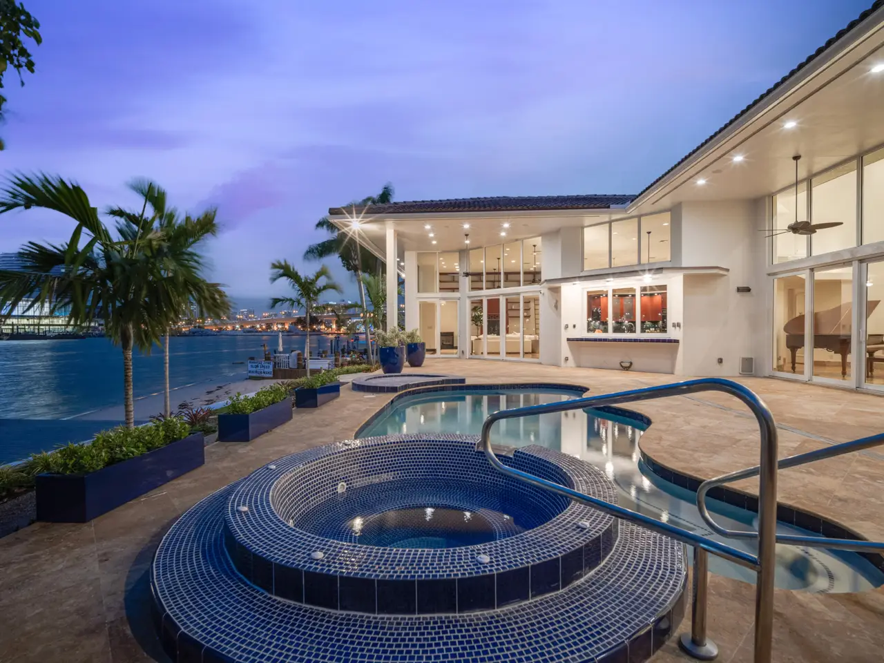 Welcome to 1925 Harbourview Drive, 100' on the Intracoastal, Water views from every room, located in the highly desirable Harbour Inlet Community. A very tranquil setting where elegance meets comfort. Featuring 3 bedrooms plus enclosed loft over master and 4 1/2 bathrooms, all set within 4300 SF of living space with cathedral ceilings in living room and family room. Masters wing on the first floor features two walk-in dressing rooms and two full bathrooms. Watch the Cruise Ships and Yachts go by from the comfort of your home, while enjoying the pool or by the dock. Whole house generator, Elevator, oversized 2 car garage plus golf cart carport, impact windows & doors throughout. Brand new landscaping, dock, garage doors, pool resurfaced and new exterior and interior paint.