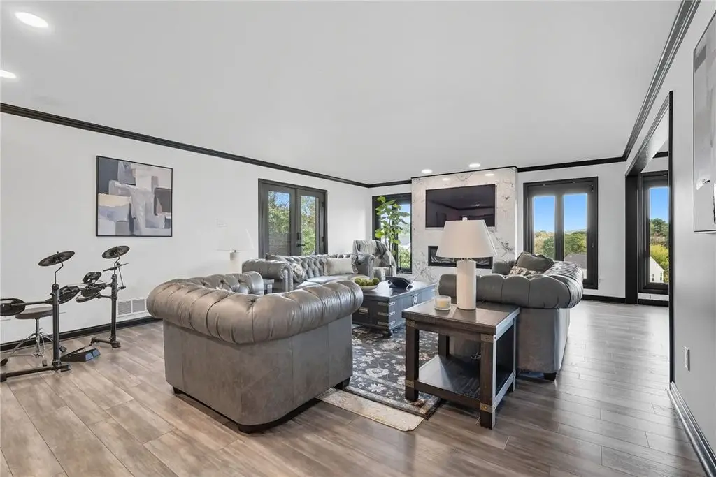 Nearly 2.5 Acres. Over 5,500 Sq Ft. AND You Are Your Own Neighborhood. This one-of-a-kind residence redefines luxury living. At its heart, the chef's kitchen stuns w/ a 10-ft leathered quartzite island - the centerpiece for gatherings! A heated 4-car garage accommodates every vehicle & hobby, while the expansive footprint offers flexible design opportunities - including the option to recreate the main level w/a primary suite. Retreat upstairs where the primary suite & a 2nd BR open directly to the rooftop patio, blending indoor comfort w/ outdoor serenity. The finished lower level was built for wellness & entertaining, complete with a sauna, steam shower, & endless recreation space.Outside, thoughtful landscaping already includes rows of Norway Spruce trees along the back of the property, destined to grow over 60 ft tall for the ultimate in year-round privacy. W/ nearly 2.5 acres of freedom, & smart technology throughout, this property is more than a home - it's a lifestyle without limits.