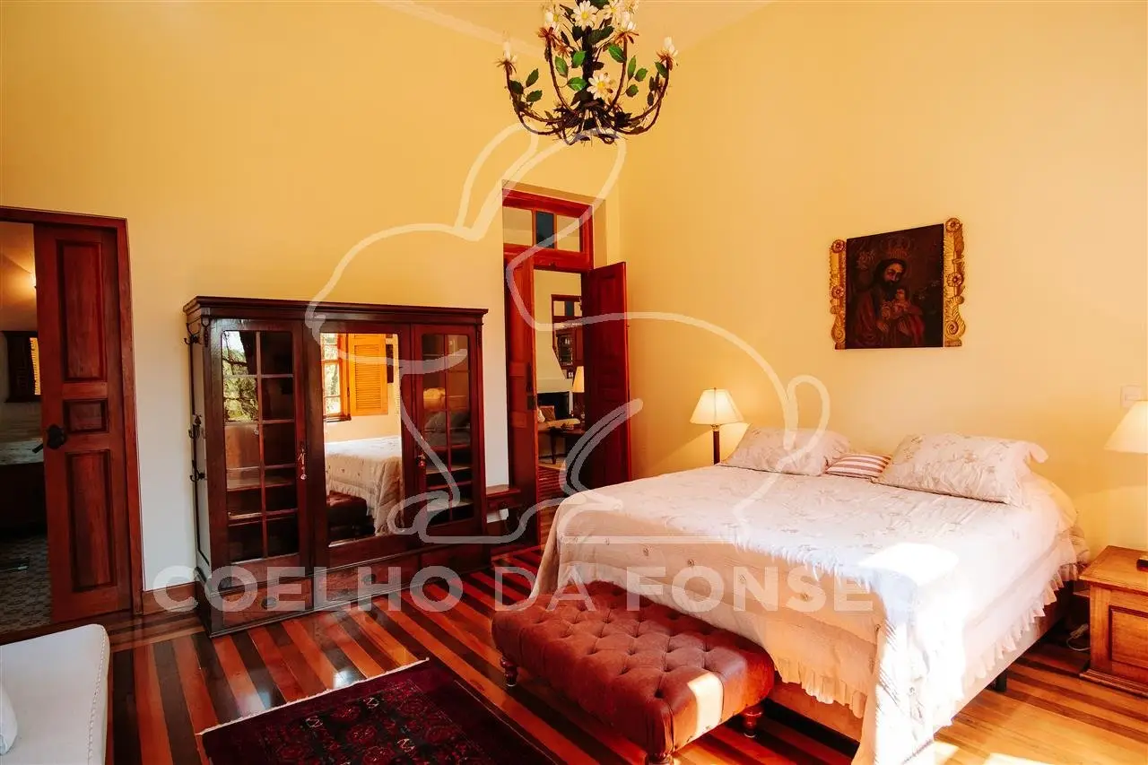 Farm from the period of the Brazilian Empire, it underwent a long period of restoration, it is 1 hour from São Paulo via the Rodovia dos Bandeirantes, asphalt door to door. The large house has 4 suites, 1 toilet, 3 living rooms, 2 terraces, 2 dining rooms, wine cellar, 4 garages, laundry, pet shop, food warehouse. Next to the house there is a support house with 2 suites, living room and kitchen. It has a glazed home office in the middle of the orchard, with a 360 degree view, which can be used as a gym. It also has the Bosque house with 3 suites, 2 living rooms, kitchen and laundry room, stove and wood-burning oven. It also has the chapel house and the inspector's house with 3 bedrooms, living room, kitchen and two terraces. It has a chapel, rural horse riding, hitching, trails, and the farm is close to an 18-hole golf course registered with the Brazilian Golf Confederation. It has security designed by experts. The farm can easily return to coffee production, cattle or other agricultural activity. The owner is willing to discuss the payment method. Rural property in the city of Bragança Paulista with 5,000 m² private/useful area, 600,000 m² total area. 8 bedroom(s), 7 suite(s), 4 parking space(s), 9 bathroom(s), swimming pool, caretaker's house, orchard, main house, lake.