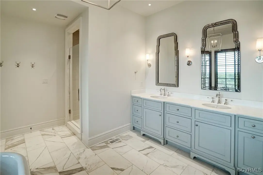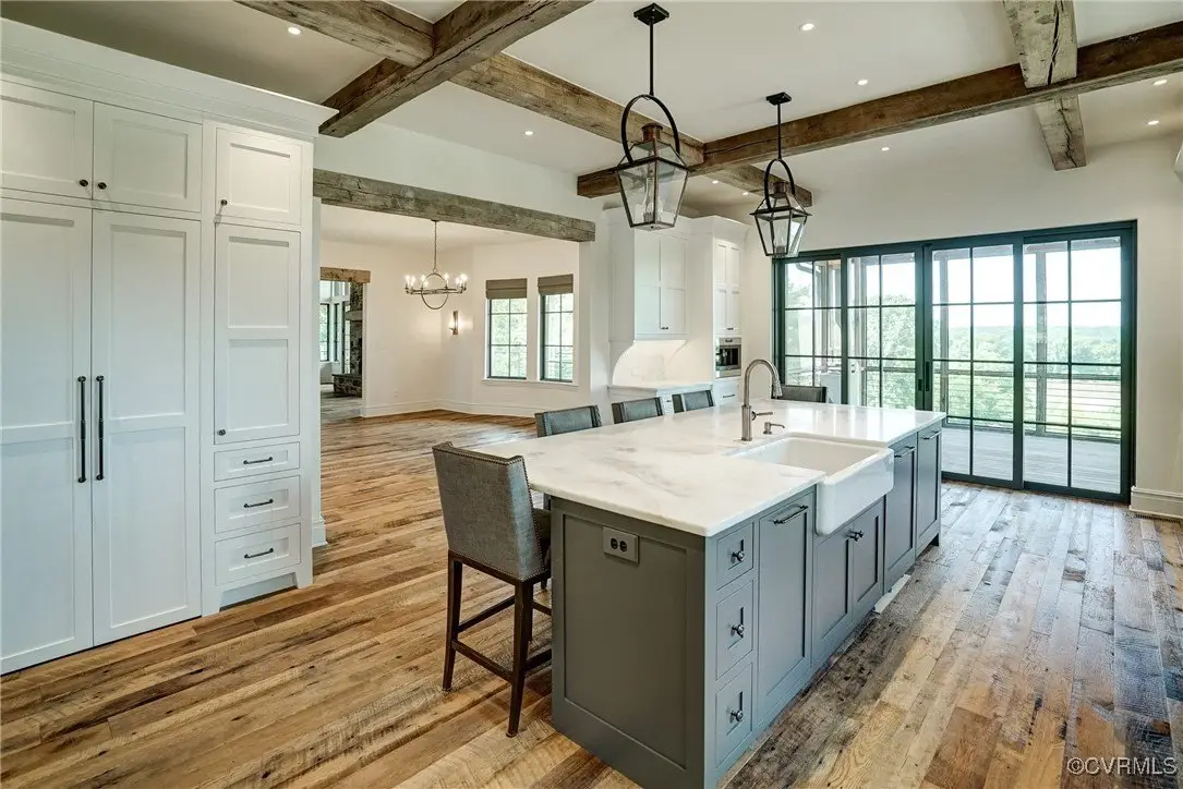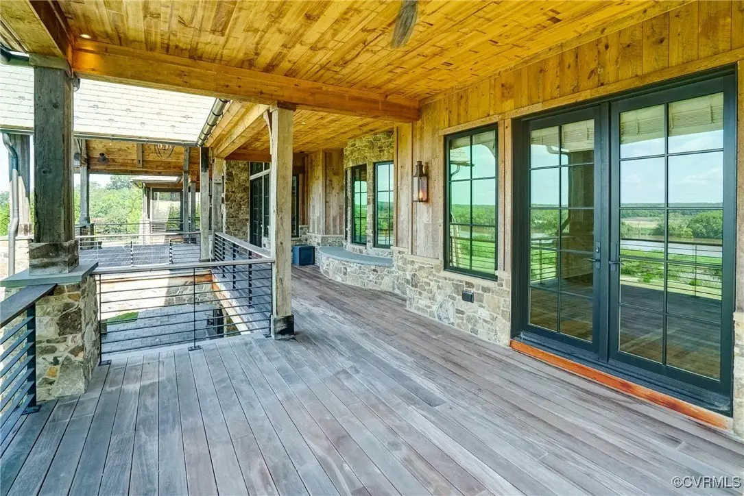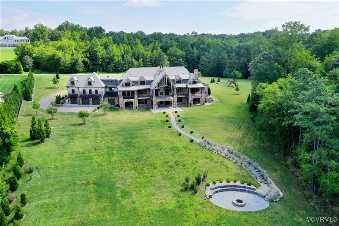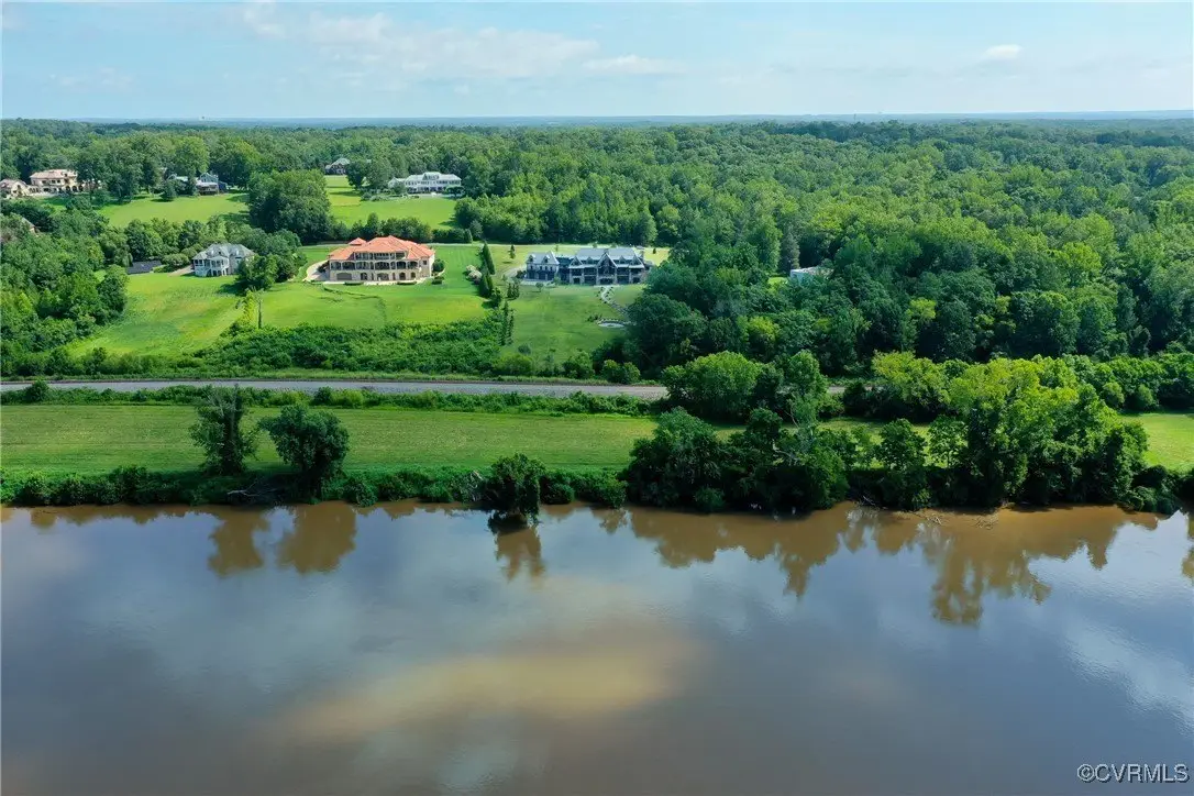 Exceptional James River views from this magnificent custom home built in 2020 by Dunkum Inc. and designed by Ensminger Architecture. Privately situated within the gated community of Pembroke on the James on the historic River Road byway close to Collegiate School, Benedictine Academy and Saint Gertrude High School. The home is appointed with DaVinci shingles, five fireplaces and a stone and brick exterior poised on a high bluff overlooking the James River. Ideally designed for a multi-generational family with private bedroom suites for everyone plus a river view private apartment with a fully equipped kitchen and living room. Key benefits include a three-car garage for the main level plus a three car garage in the basement level plus a tractor garage, an elevator, a security vault, a Lutron lighting system, Geothermal heating and cooling for energy efficiency, automatic generator, outdoor lighting, irrigation system and gas lanterns. The living room is stunning with its incredible views, cathedral beamed ceiling, floor-to-ceiling stone fireplace and built-in cabinets and bookcases. The dining room with river views is open to the living room and kitchen. The fabulous marble kitchen is accented with natural wood beams and is equipped with a Wolf range, steam oven, coffee system, Sub-Zero refrigerator and freezer, and Cove dishwasher. The kitchen connects to the screened porch with the La Cantina folding door system maximizing your connection to the outdoors. In addition, expand your entertaining to the rear IPE decking with a floor-to-ceiling wood-burning stone fireplace with vaulted porch ceiling. The luxurious primary suite has a stone fireplace, a pair of closets and a marble luxury bath. A first floor bedroom suite plus private study complete the first level. Upstairs you'll find two living areas plus two more family suites. The lower level boats a family room with bar and stone fireplace, a recreation room, media room, gym and office with full bath. James River access.