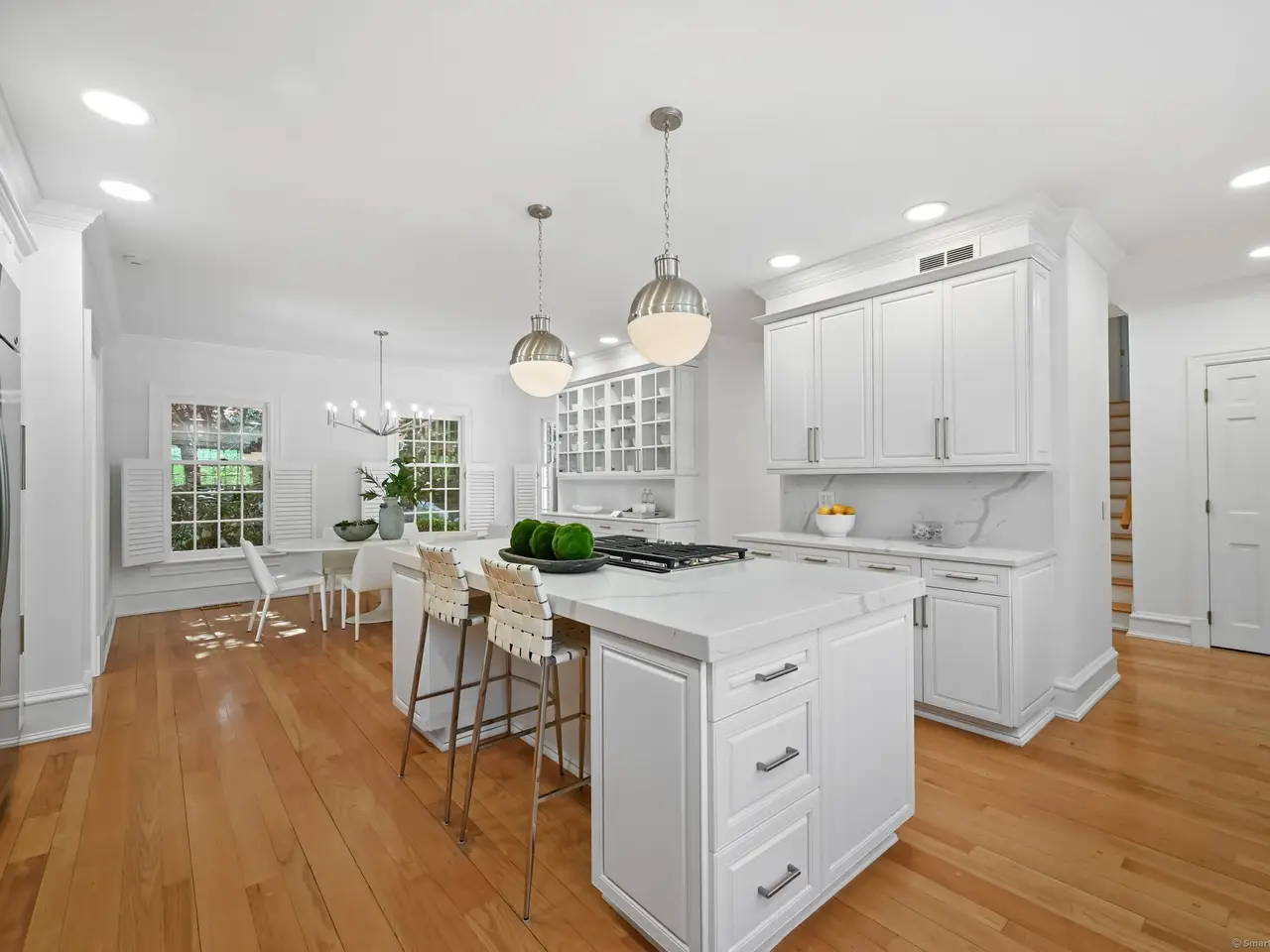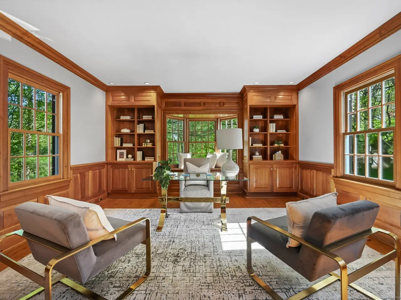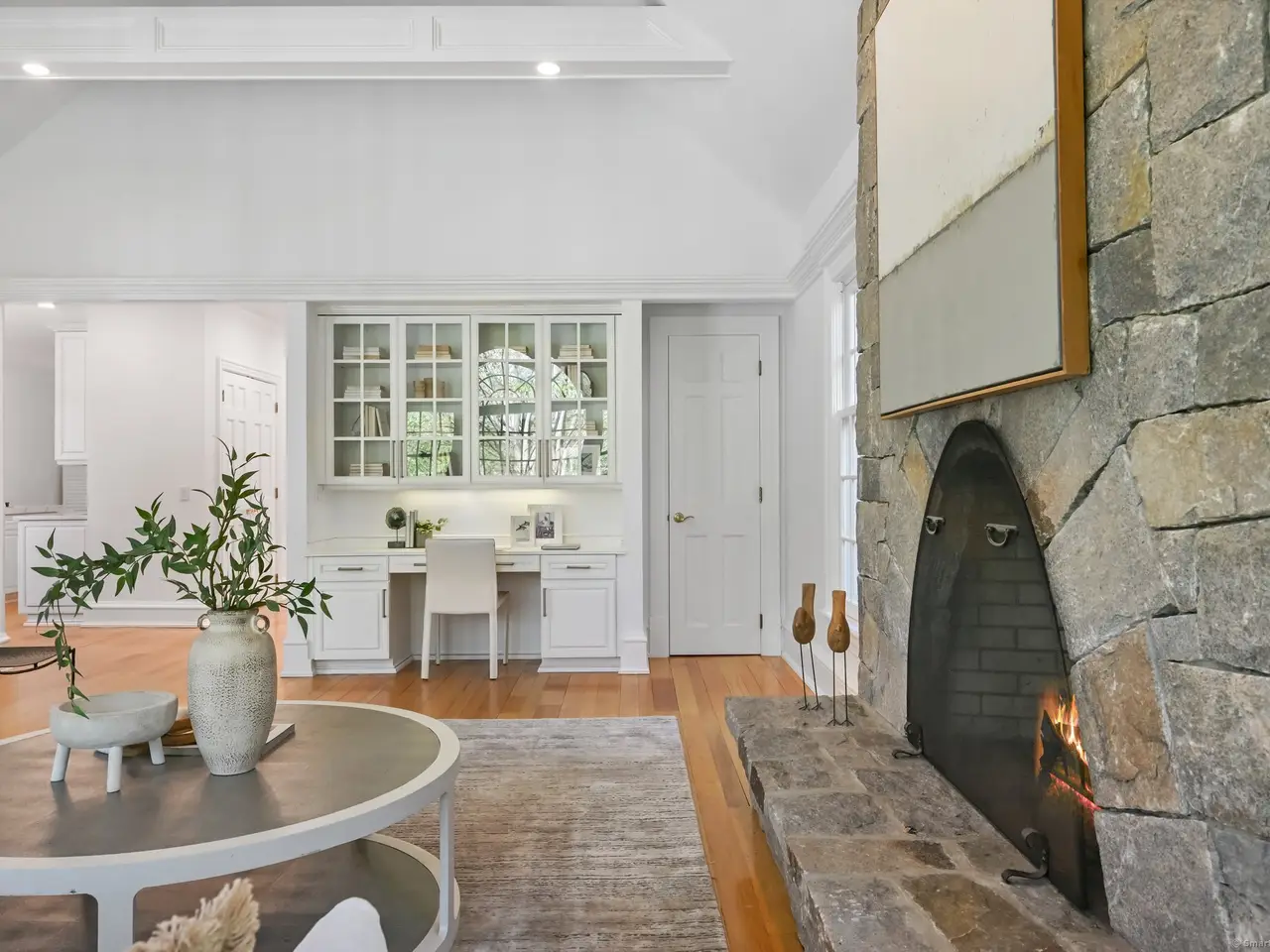Nestled at the end of a private lane and set on 4.4 beautifully landscaped acres, this stunning brick colonial-crafted by award-winning builder Kaali-Nagy-offers nearly 7,000 square feet of luxurious living space. A dramatic three-story entryway fills the home with natural light, leading into a formal living room with a fireplace and French doors. A richly paneled office tucked just behind the living room includes built-ins, a wet bar and a second fireplace, creating the perfect work-from-home retreat. Designed for entertaining, the sprawling dining room easily accommodates large gatherings and opens onto a spacious deck overlooking spectacular grounds filled with specimen trees and a designated play area. The newly renovated chef's kitchen features quartz countertops, top-tier appliances, a large island, and a sunlit eat-in area. The adjacent family room showcases a vaulted ceiling, a floor-to-ceiling fieldstone fireplace, and French doors that open to the tranquil exterior. Upstairs, the expansive primary suite boasts its own fireplace, a brand-new spa-like bathroom with a soaking tub, oversized walk-in shower, and dual walk-in closets. Four additional en-suite bedrooms, all with brands new bathrooms, provide ample space for family and guests. A vaulted-ceiling bonus room, a cozy game room, and a second office or exercise space offer flexibility for every lifestyle. An area off the bonus room could easily be transformed into an ideal au-pair or guest suite. Located within walking distance to St. Luke's School and less than 10 minutes to the heart of town with its charming shops and restaurants, this home offers the perfect blend of privacy, tranquility, luxury, and convenience. Truly a special opportunity to own an exceptional property. Pool Design in Documents.