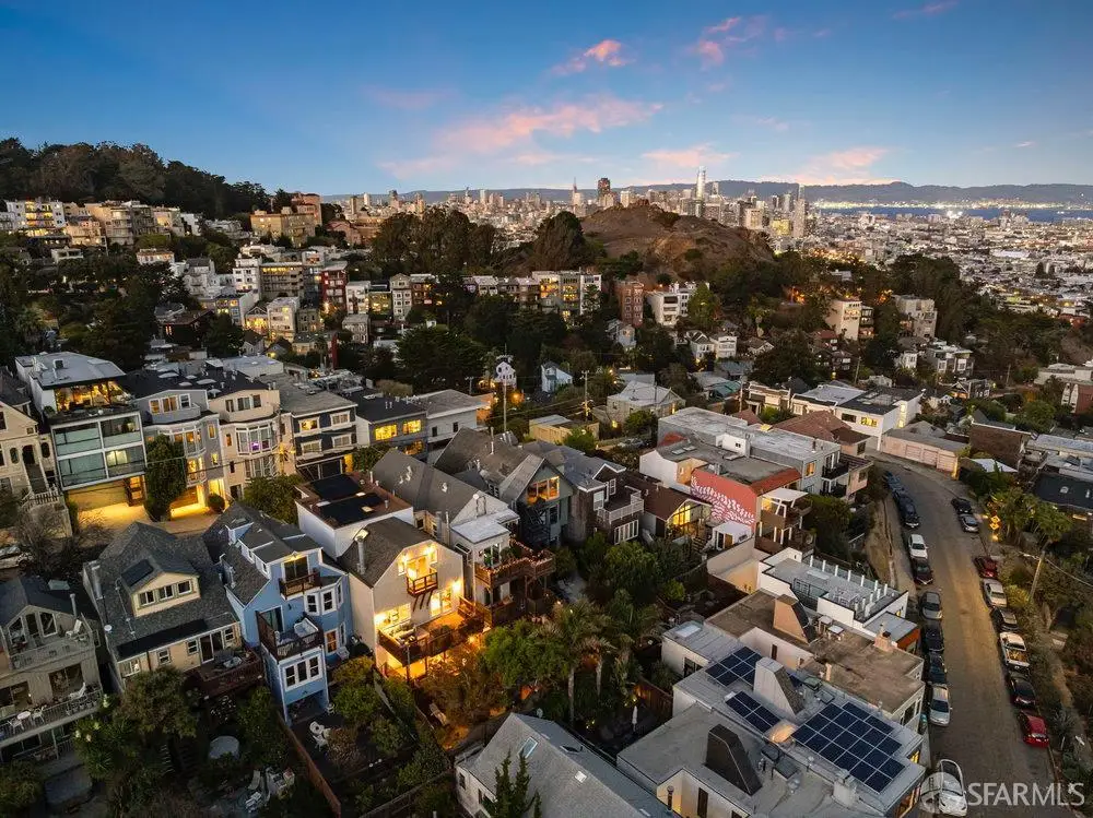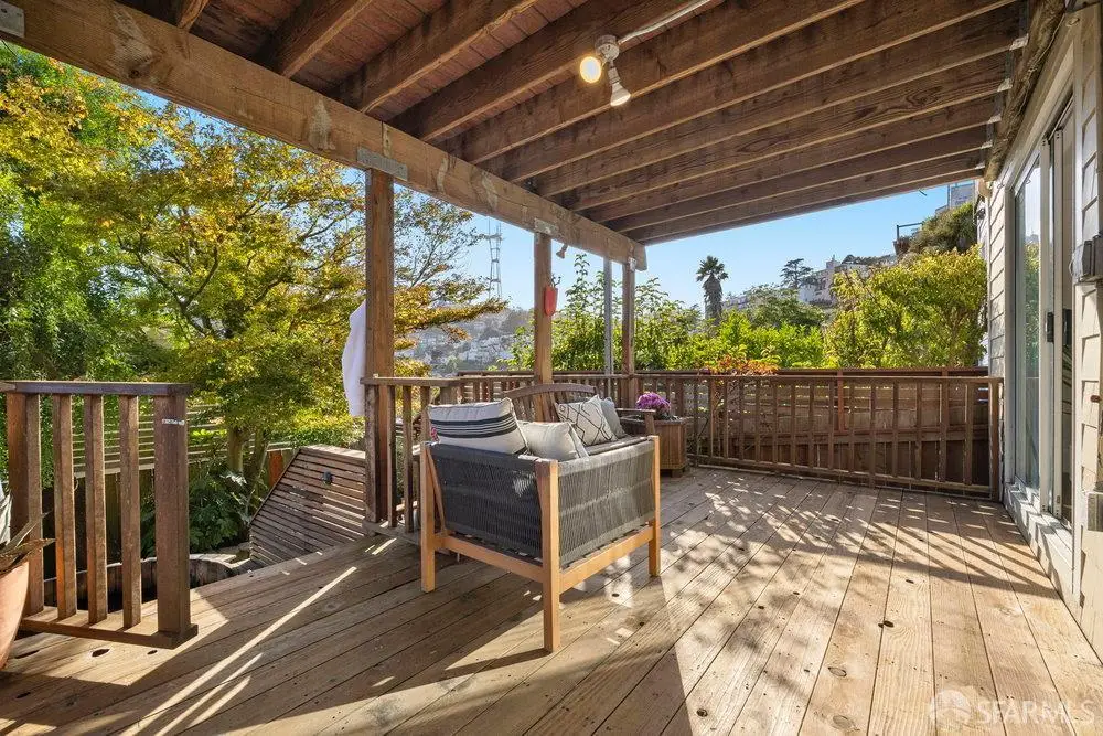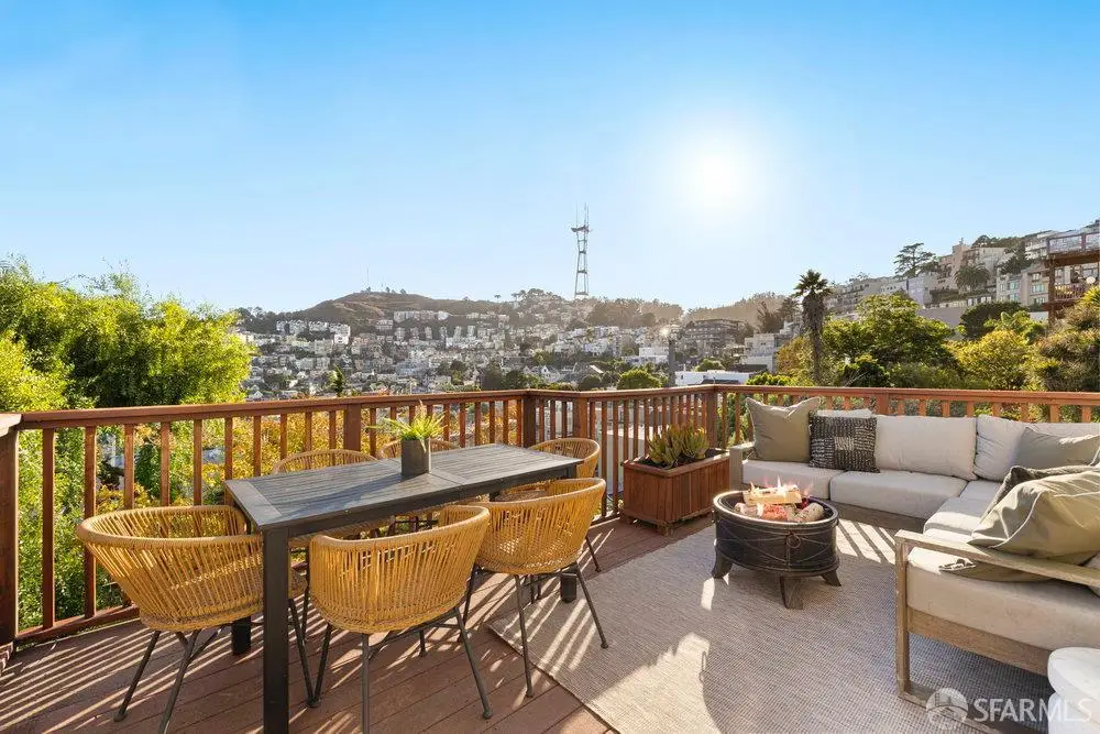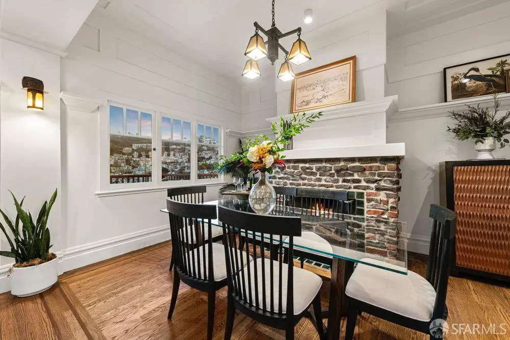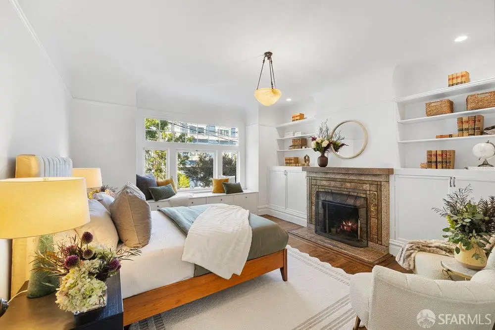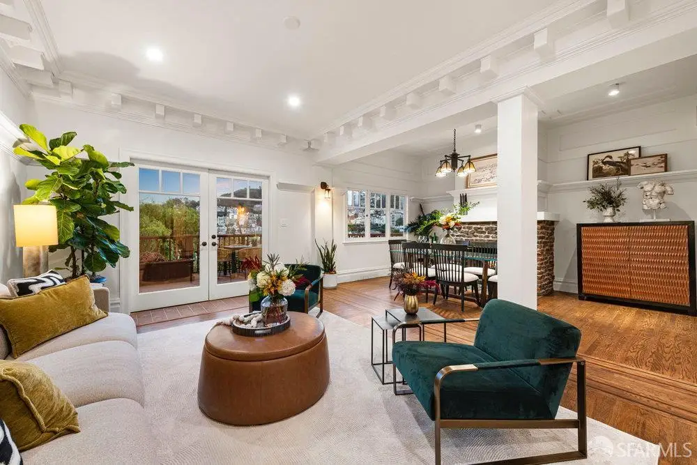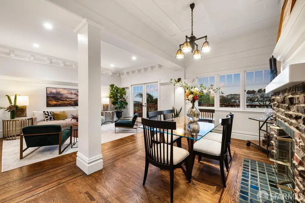 Showcasing a commanding Craftsman facade, this expansive three-level residence blends architectural presence w/versatile, refined living. Grand-scale rooms anchored by fireplaces create warmth & elegance, while gleaming hardwood floors flow throughout. The fully renovated kitchen features professional-grade Bosch appliances, & spa-inspired bathrooms boast Spanish tiles w/ Grohe & Duravit fixtures. The top level hosts two en suite bedrooms, each a private retreat plus a large laundry room. The main floor offers formal living & dining rooms, a flexible library/bedroom, & seamless indoor-outdoor connections: two expansive view decks, a primary suite balcony, & a lush garden patio w/a spa. The lower level, w/interior access & its own entrance, expands the home's adaptability, ideal for income potential, an au pair, or a private office. This space includes a media room, bedroom, full bath, kitchenette pre-plumbing, secondary laundry/mudroom, & storage. Energy-conscious upgrades include double-paned windows, LED lighting, & a solar system. With commanding curb appeal, sweeping views, outdoor living, and a layout designed for multigenerational/income-friendly use, this home offers a rare blend of scale, style, & flexibility in one of San Francisco's most coveted enclaves.